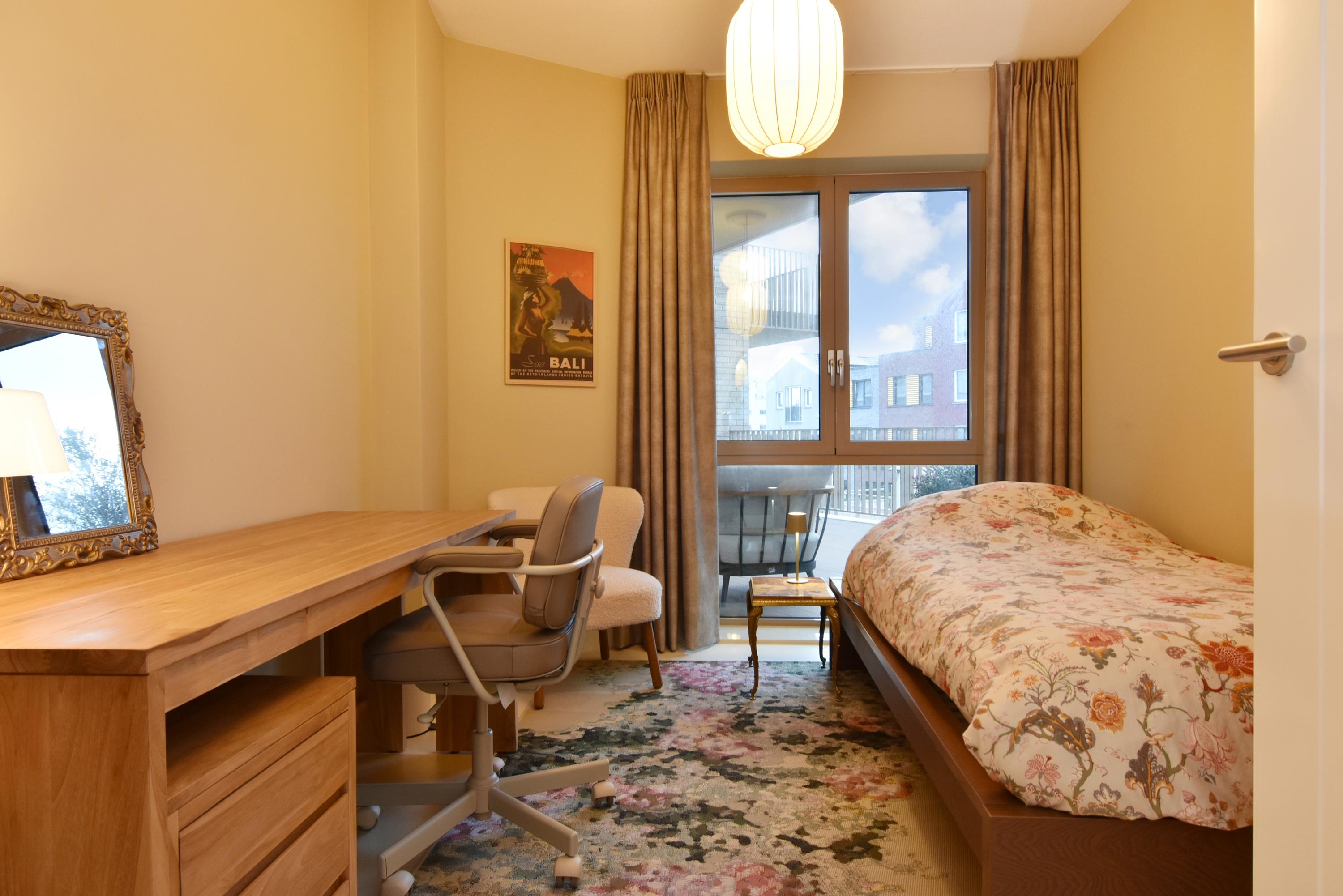 Two well-appointed bedrooms provide calm and comfort, while the bathroom follows the latest design trends with a walk-in shower, elegant vanity, and a freestanding bathtub. The apartment incorporates a fully integrated underfloor heating and cooling system, a heat recovery unit, and a heat pump, all contributing to outstanding energy efficiency with energy label A+++. Additional amenities include a custom cabinetry storage room, a separate toilet, a private parking space with a charging point in the secure garage, and an extra high private storage area. Walking distance to the Zuiderstrand, Westduinpark, vibrant harbourside restaurants, and boutiques on Frederik Hendriklaan further define the enduring allure of this Apartment Den Haag.