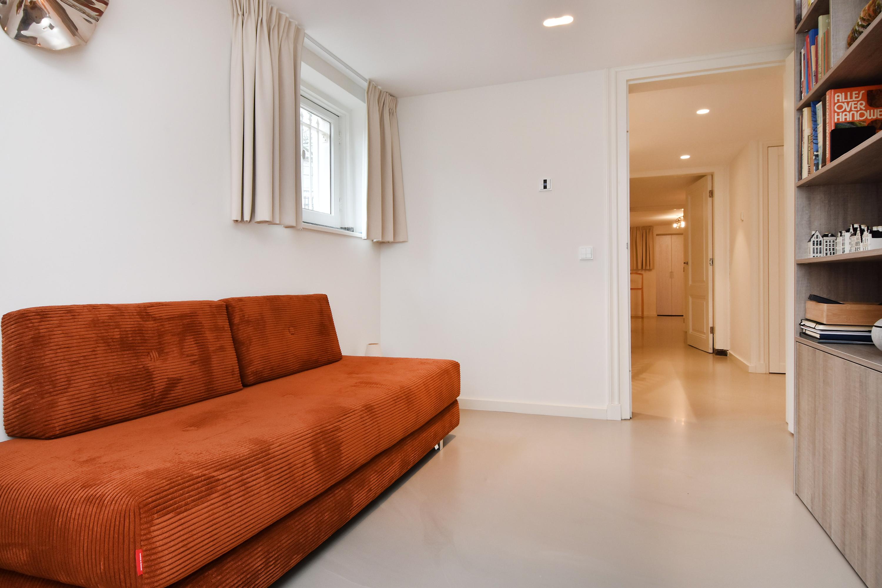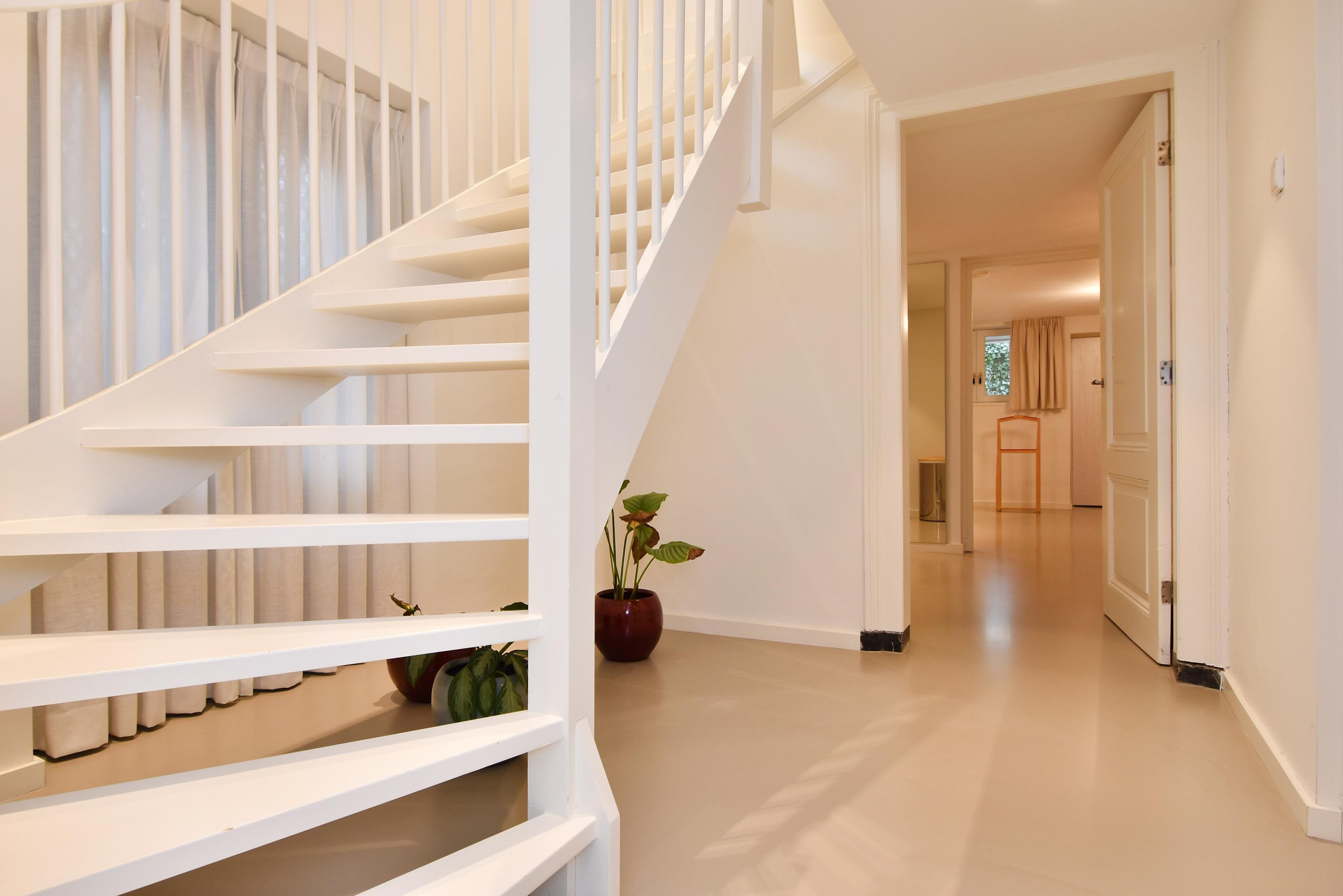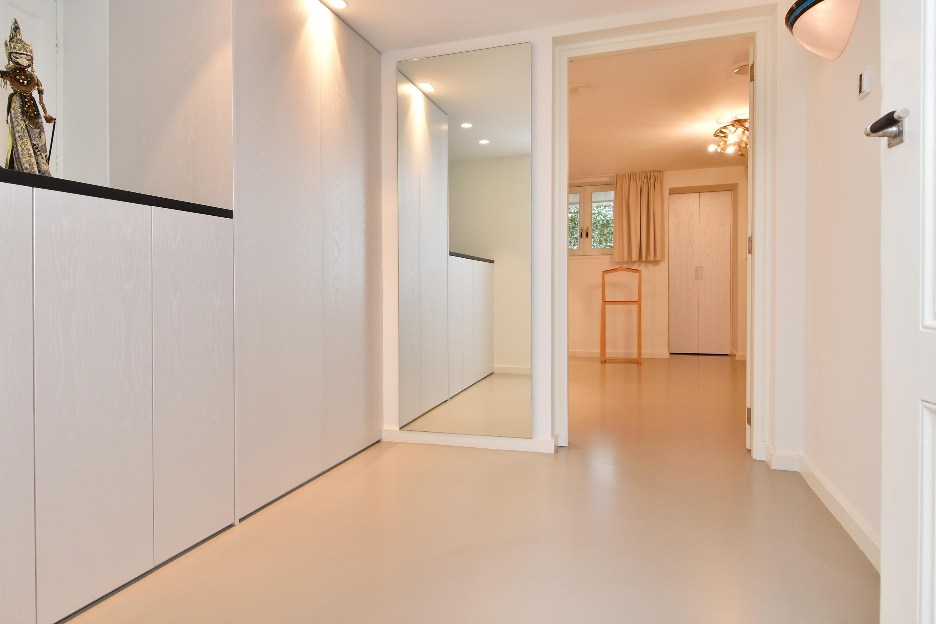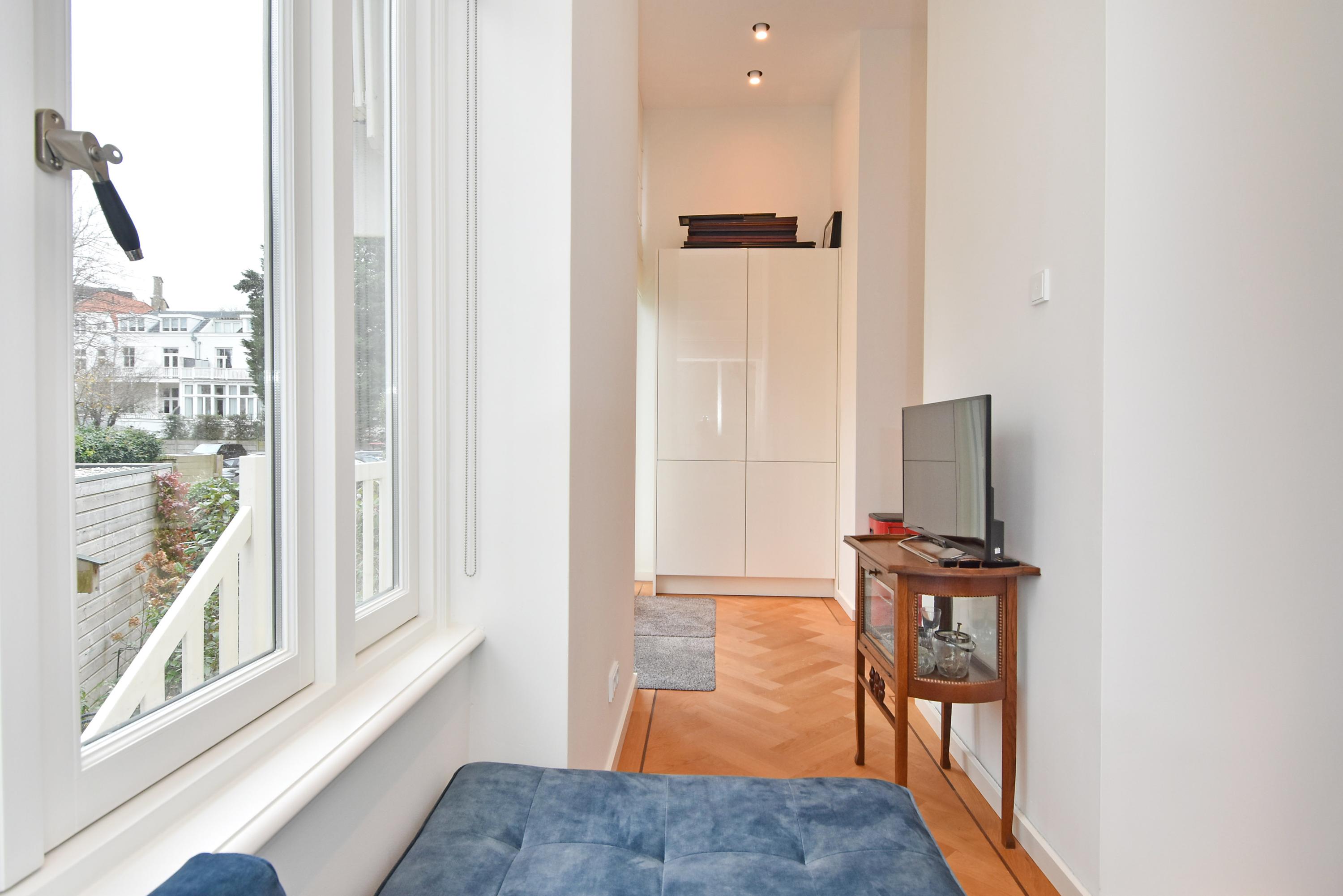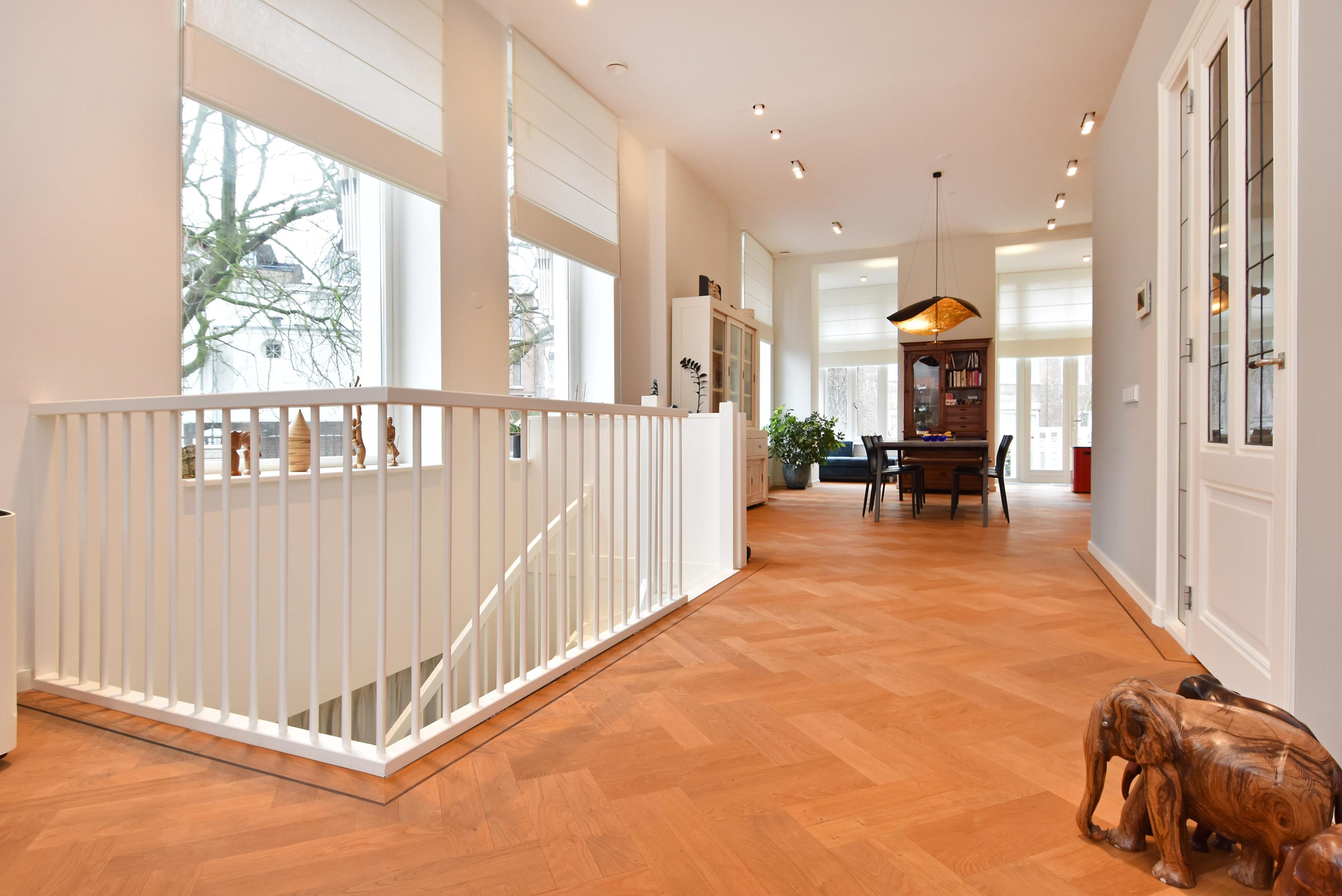 Three bedrooms and two bathrooms are found on the lower level, complemented by custom storage, a dedicated laundry area, and casting floors with underfloor heating. The property includes two reserved parking places with an EV charging point, full smart technology for heating and lighting, and is move-in ready. All within walking distance to fine dining, cultural venues, and the Peace Palace, this duplex apartment The Hague invites an elegant and contemporary quality of life.