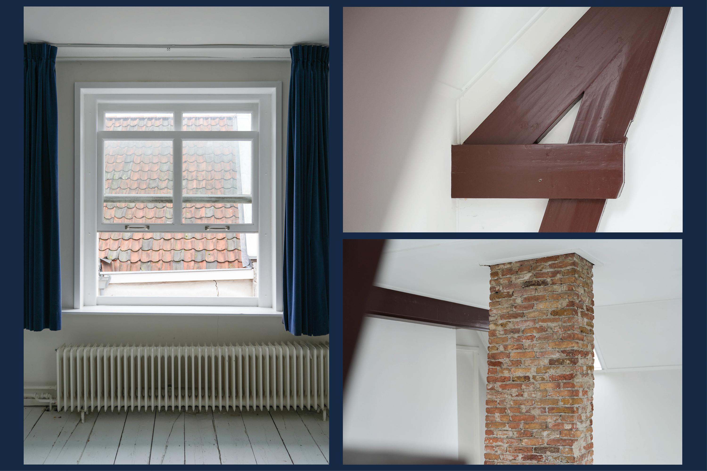 Upstairs, you'll find three bedrooms, including a particularly spacious master bedroom of exceptional size. The bathroom is practically laid out and equipped with a bathtub, shower, second toilet, and double sink. The sheltered roof terrace has recently been renovated and offers plenty of afternoon and evening sun. Additional storage space is available in the spacious attic. A characterful city apartment in a prime location between the train station and the 's-Hertogenbosch Market.