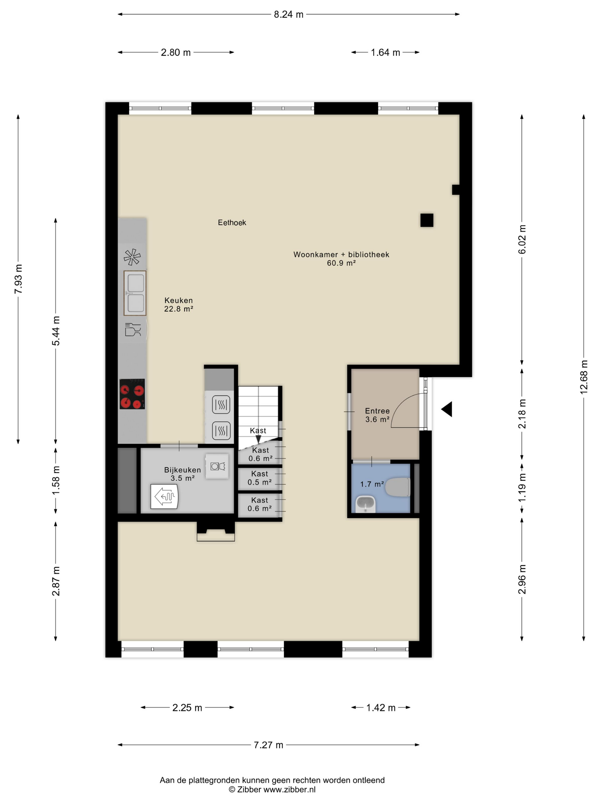 It's quite special to find this modern home behind the historic facade. During the renovation/reconstruction, only the front facade remained. With the tall windows, that history still permeates your luxury apartment. And thankfully so. The ceiling height on the facade is still approximately 580 cm. Beautiful, and it allows light to penetrate deeply into your home. Where a loggia was planned in 2001, there's now a space that can be used year-round. So even on a summer day, it can be used as a loggia by opening the large, tall windows. A cozy seating area and the kitchen are located downstairs.
