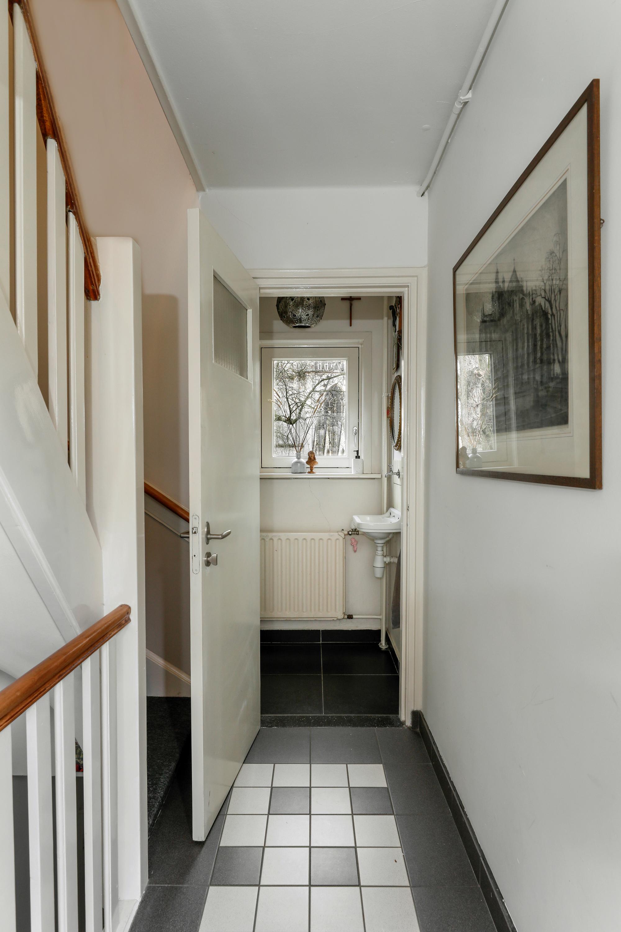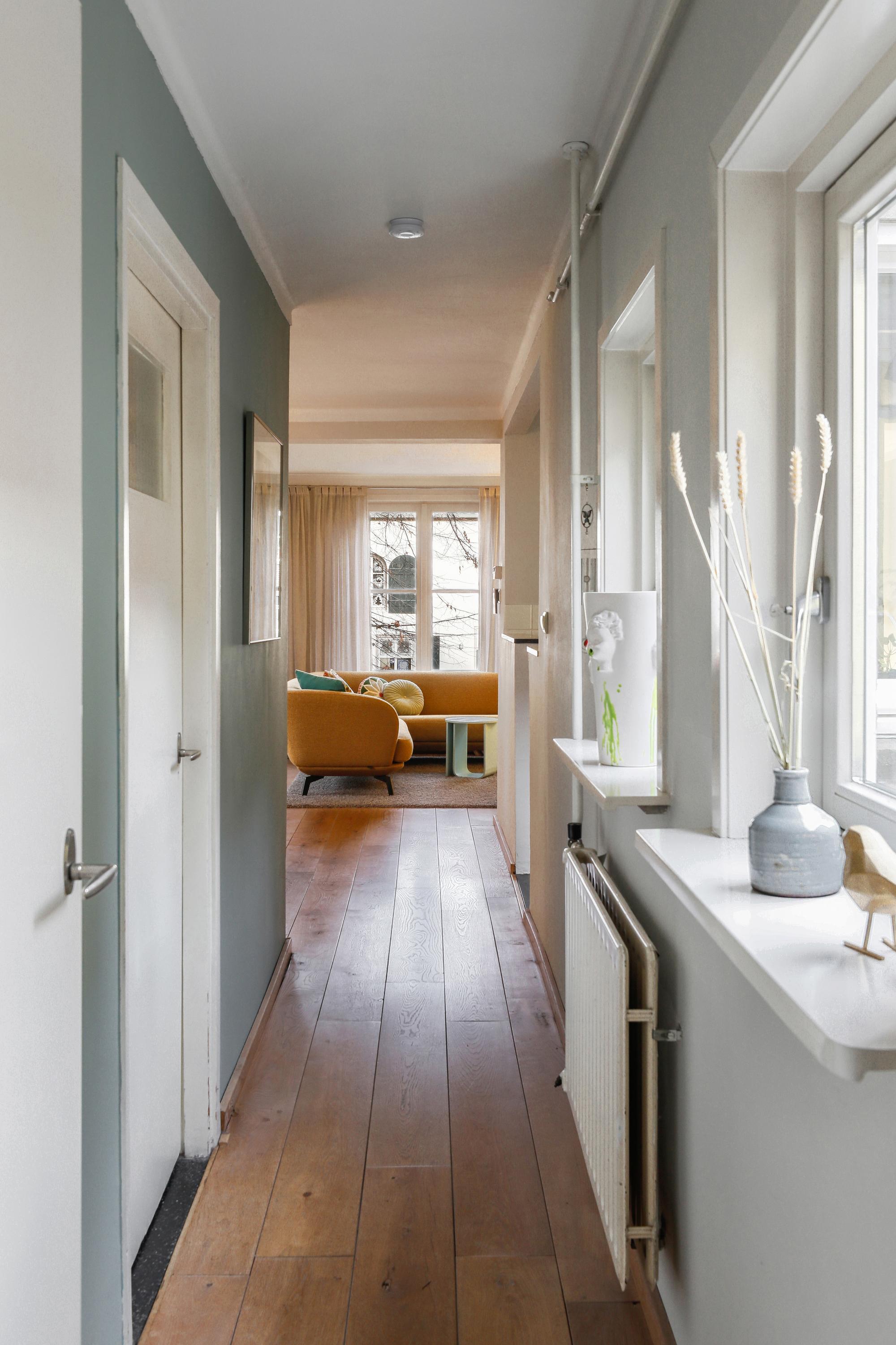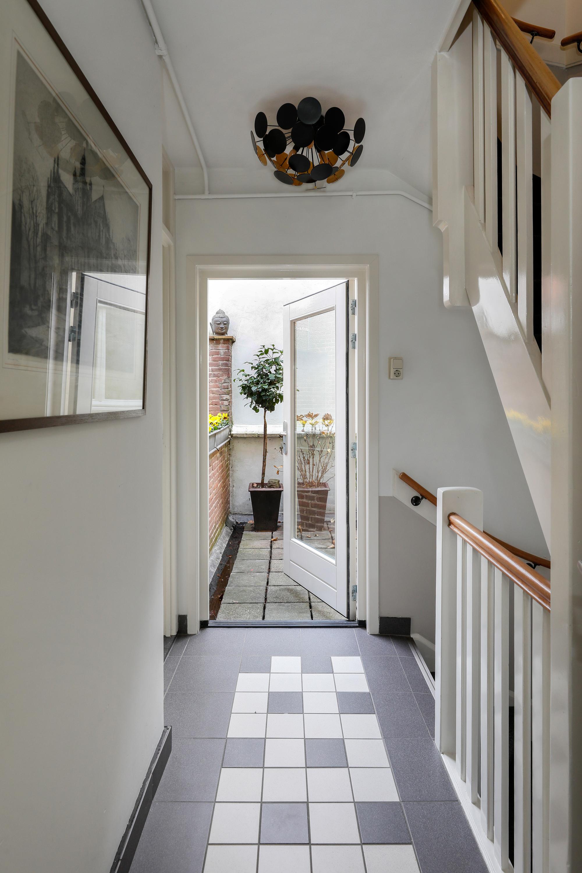 Private entrance with an exclusive hallway, featuring beautiful Winckelmans tiles and space for a coat rack and bicycle.