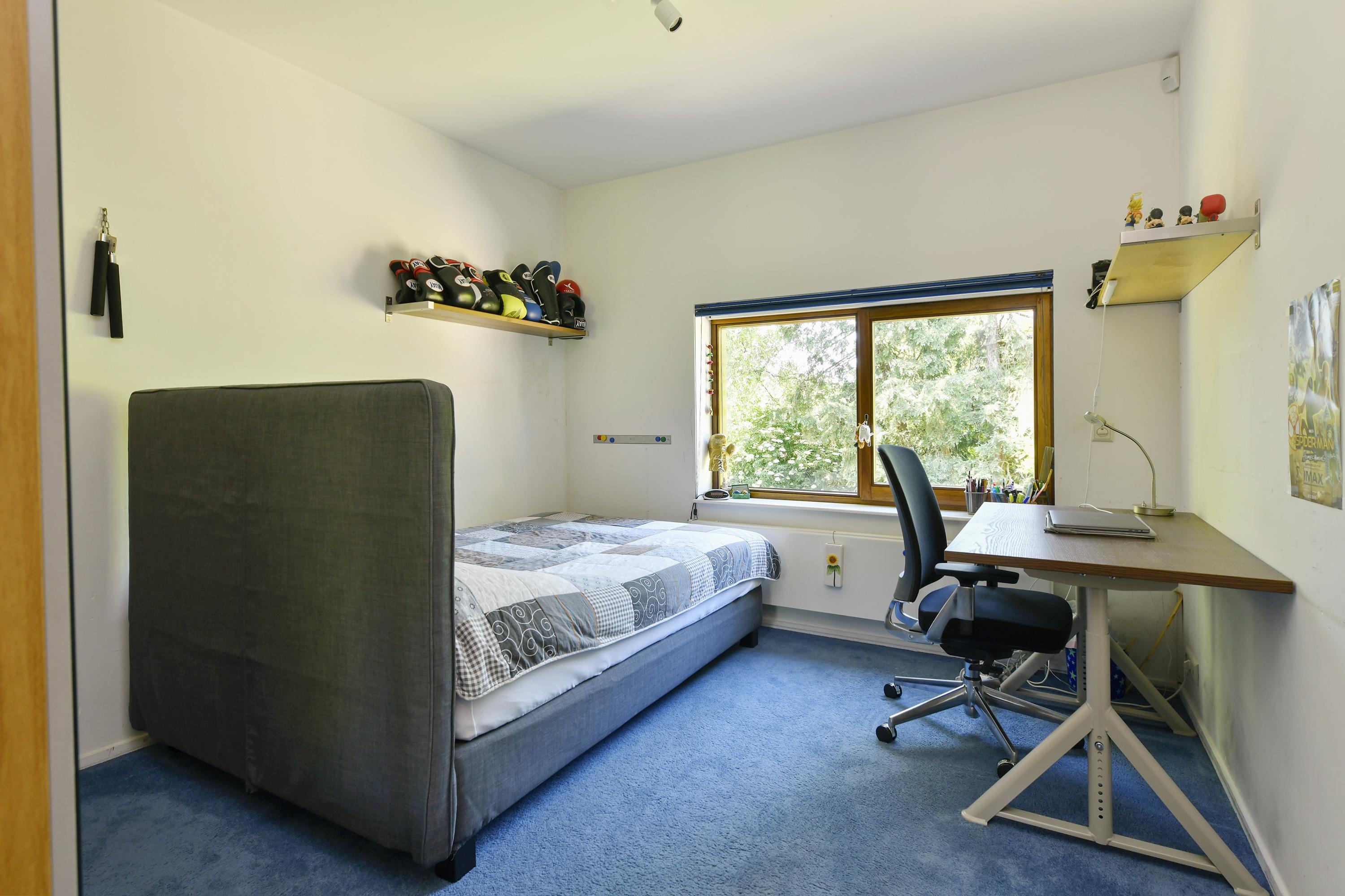 Adjacent to the living room is a practical utility room with extra storage and connections for a washing machine and dryer. On the other side of the house is an intermediate room with access to a bedroom with its own bathroom, fitted with a washbasin unit, shower and separate toilet. This space is ideal for guests, an au pair, or can be used as a work or study room. There is also a separate storage room accessible from the garden.