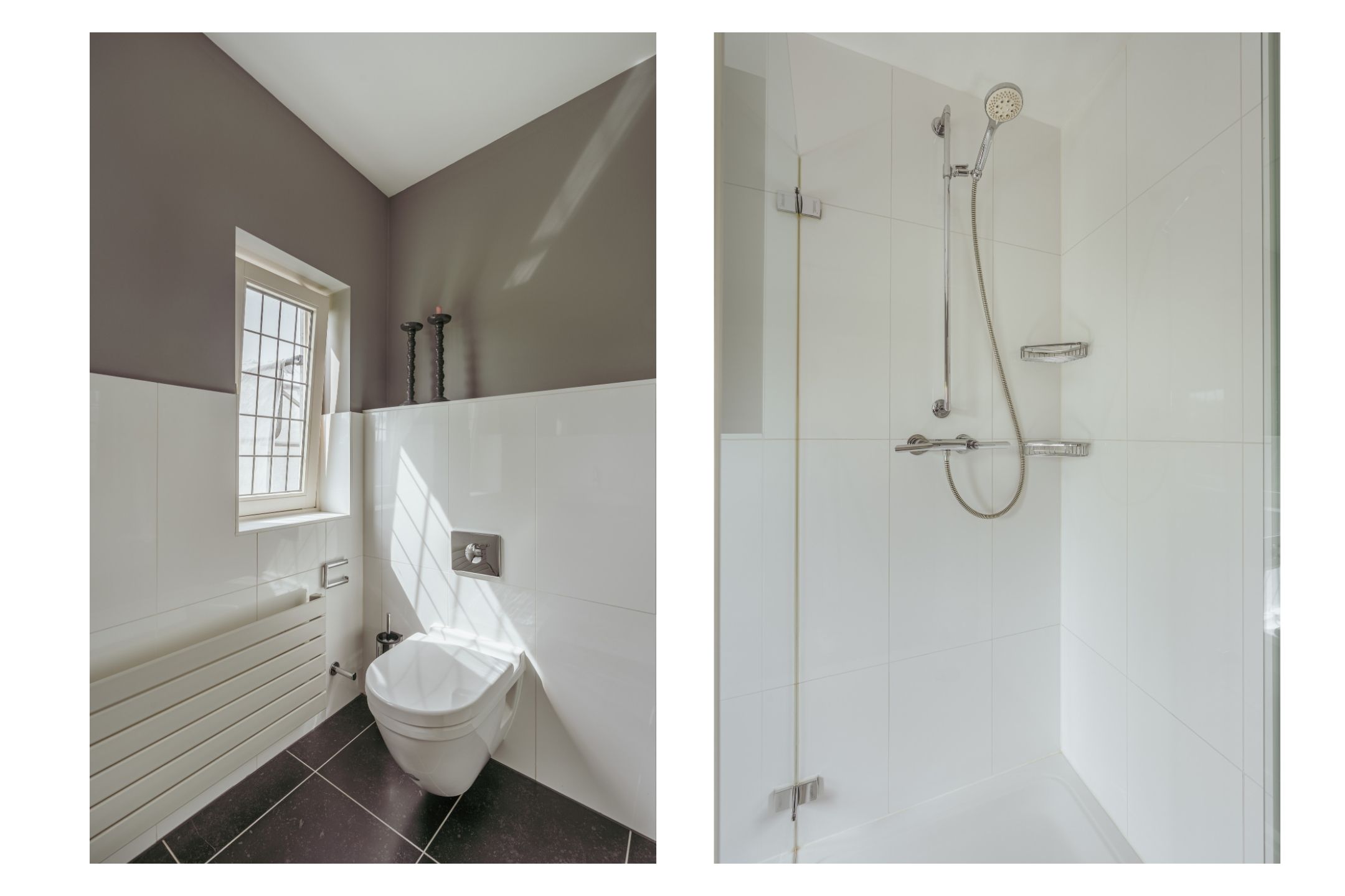A fixed staircase leads to the attic floor, currently used as an additional living room with kitchen, making it ideal in combination with the large roof terrace. This floor also features a cozy gas fireplace and multiple skylights that flood the space with natural light. In addition, there is a practical storage room with plenty of space.