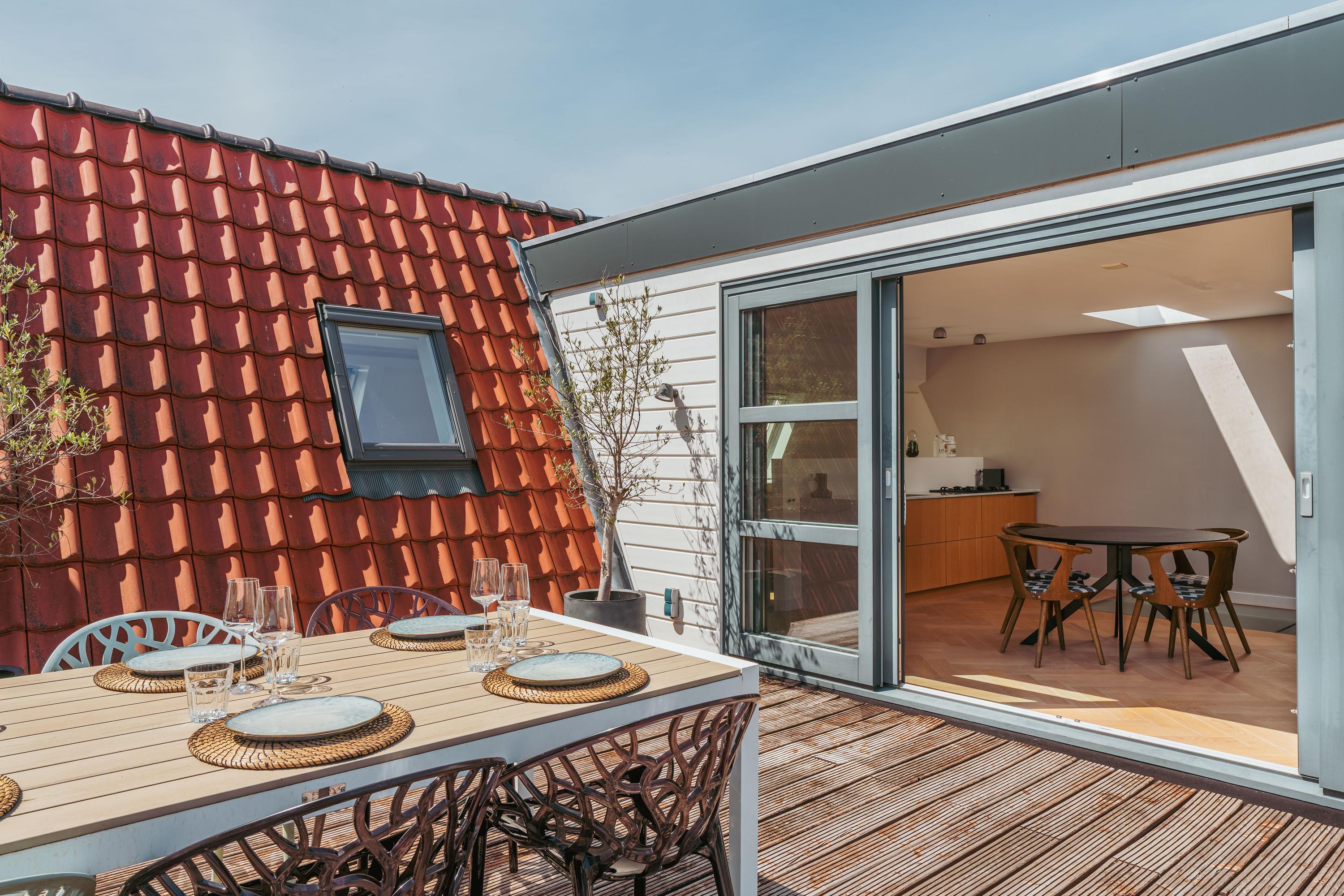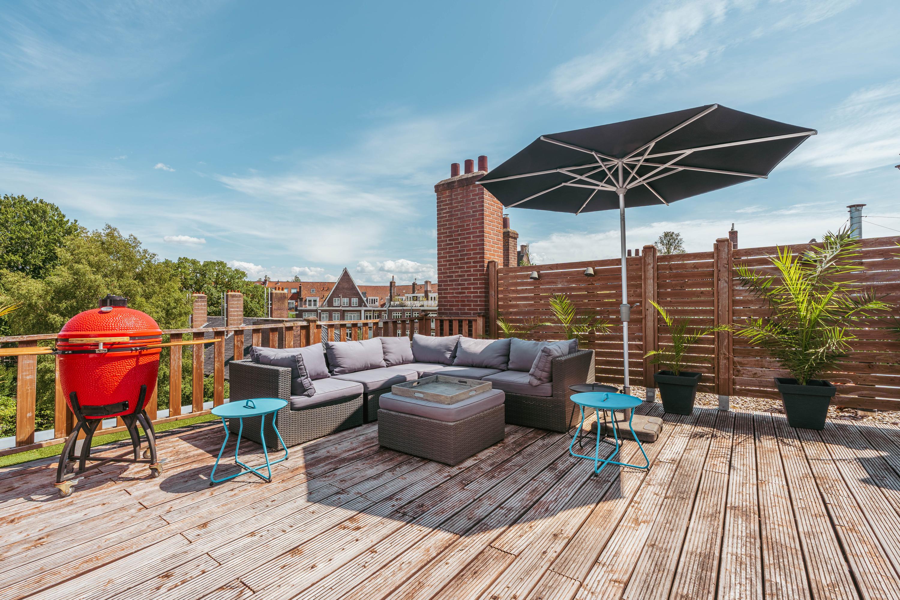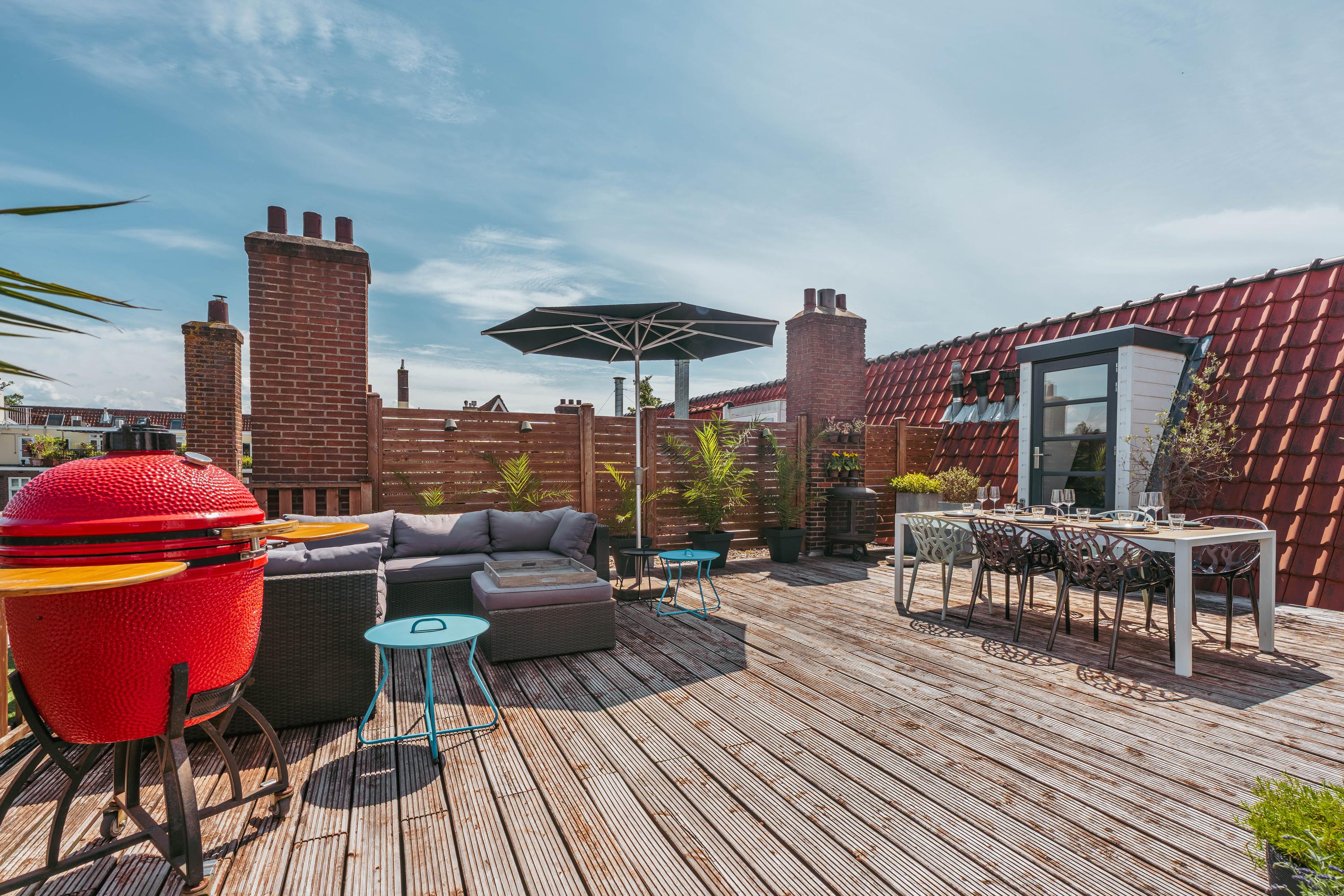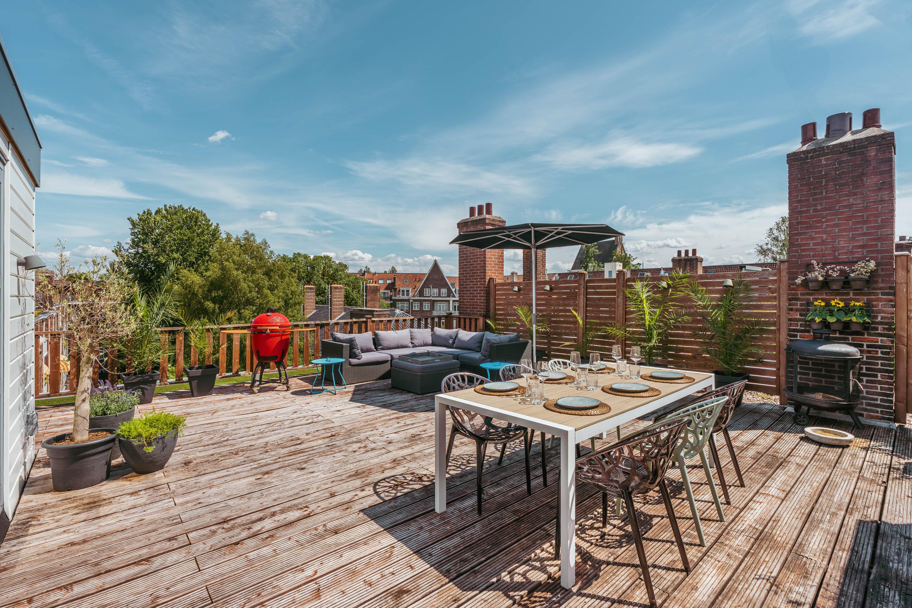 Very spacious and exceptionally bright upper house (approx. 334 m²) with 60 m² roof terrace, three balconies, luxury kitchen-diner and atmospheric living room at a prime location in Amsterdam Zuid!
