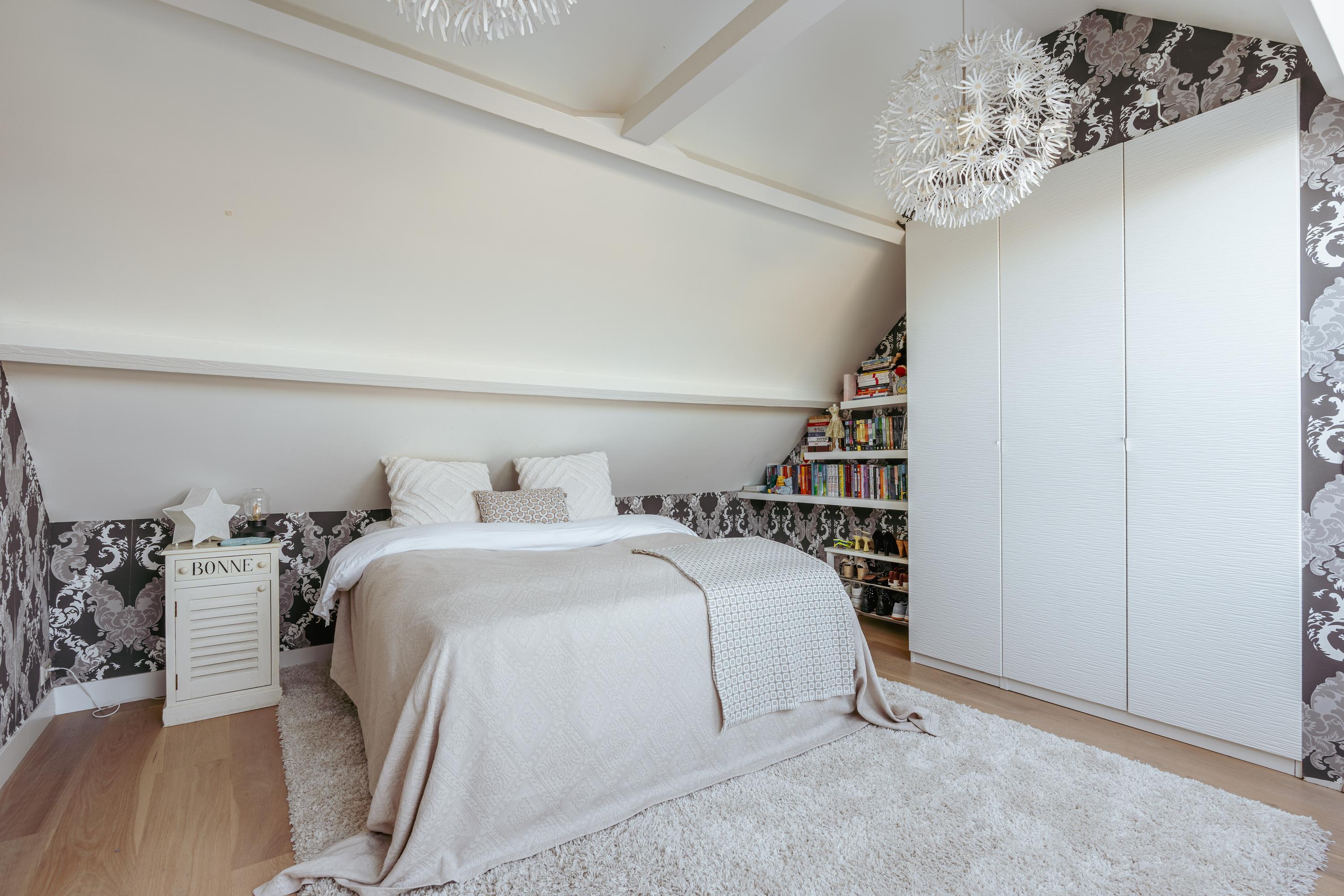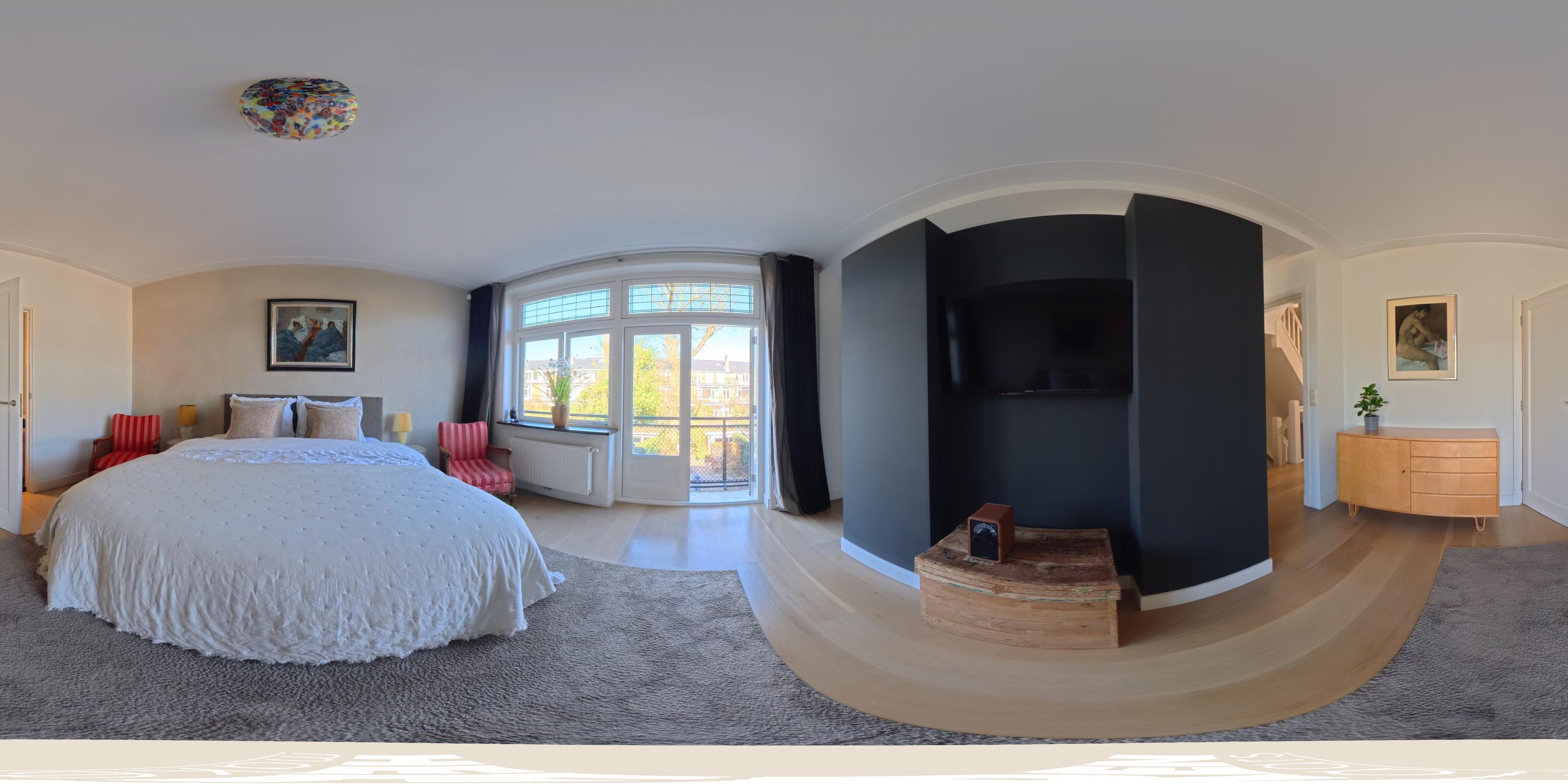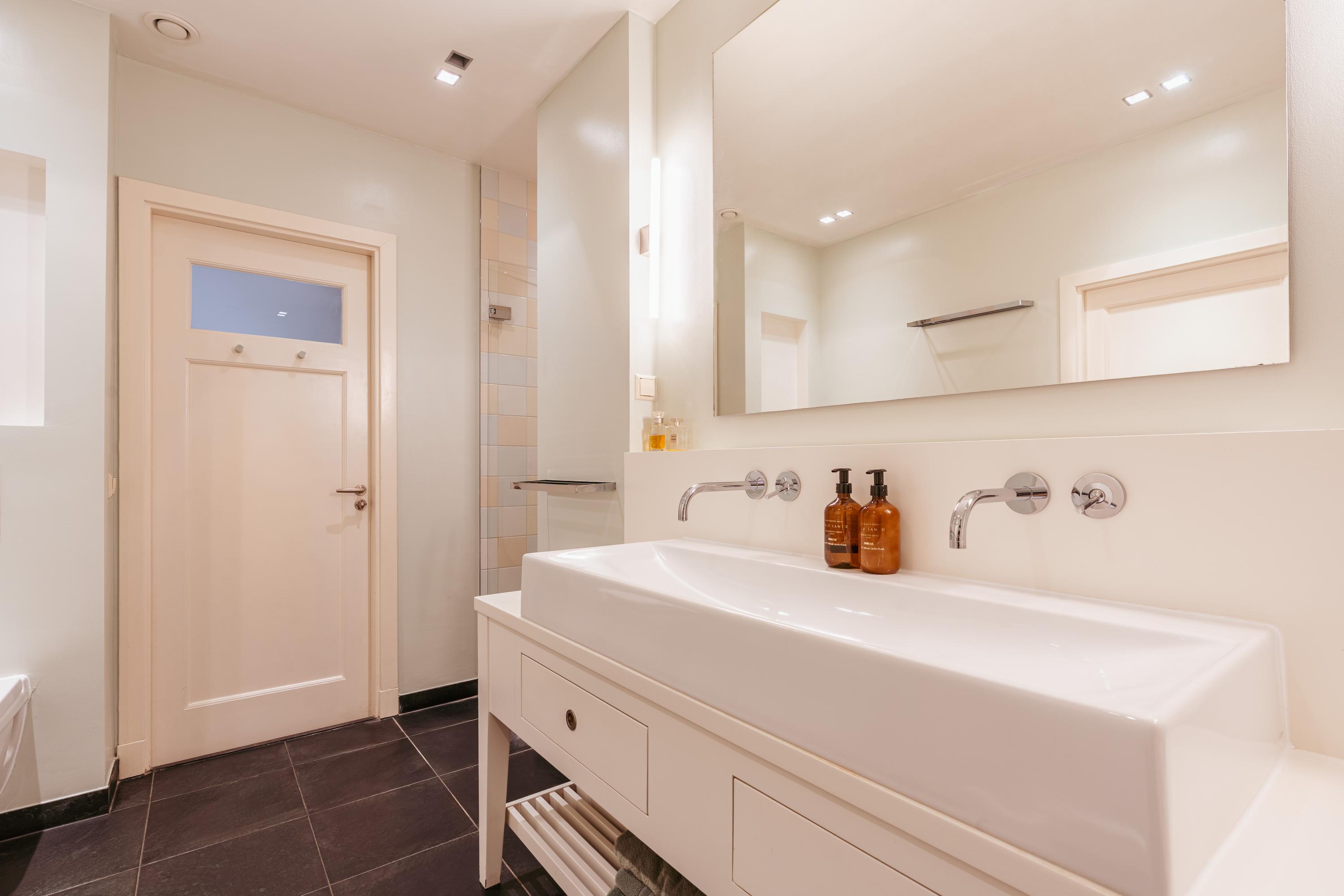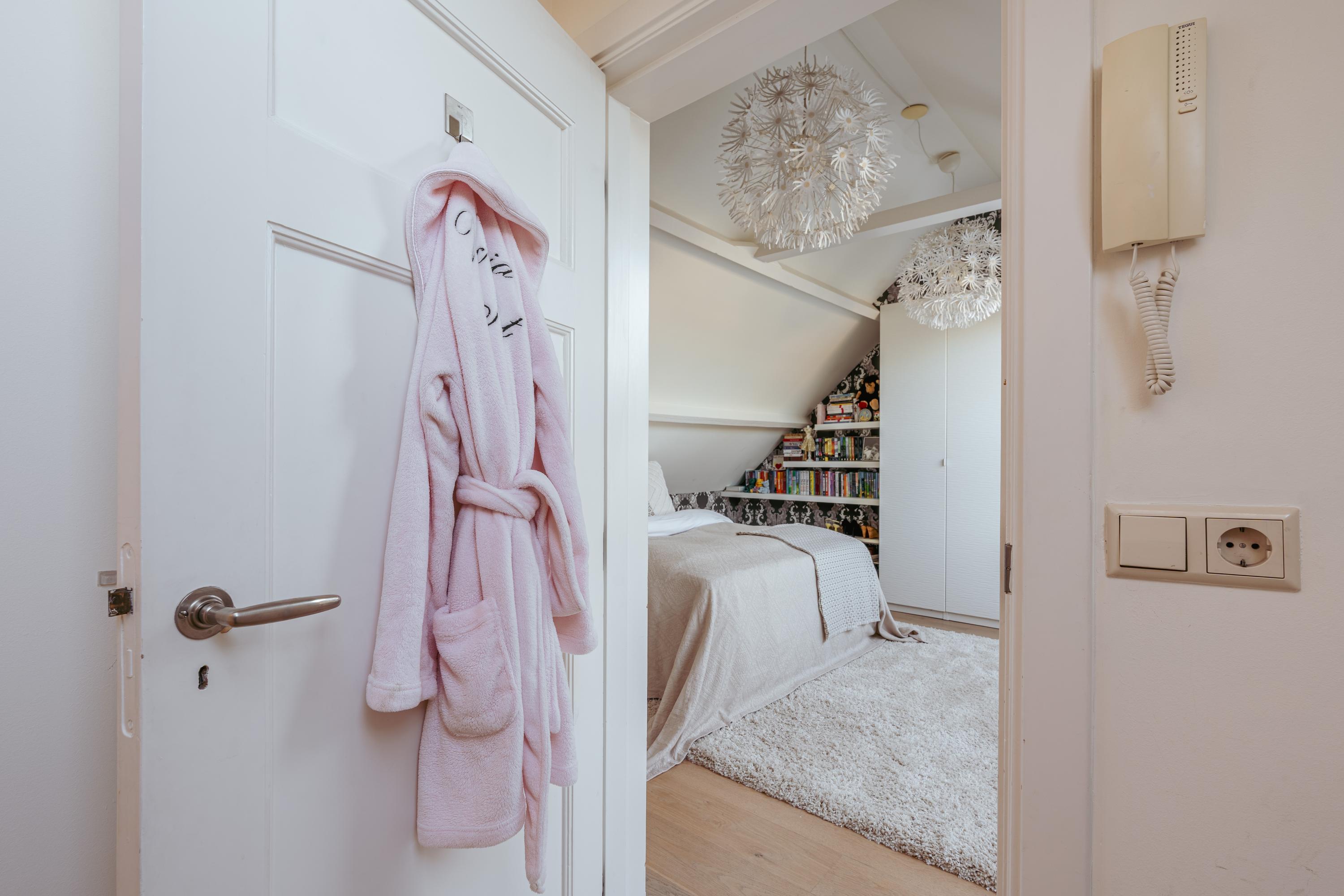 The upper levels host generous bedrooms, including a master suite with custom wardrobes and a secluded balcony. Multiple bathrooms ensure comfort and privacy. The top floor features ample natural light with impressive ceiling height, suitable for working or relaxing. High-quality finishes, dakraam for additional illumination, and insulation measures such as dakisolatie and double glazing contribute to its comfort.
