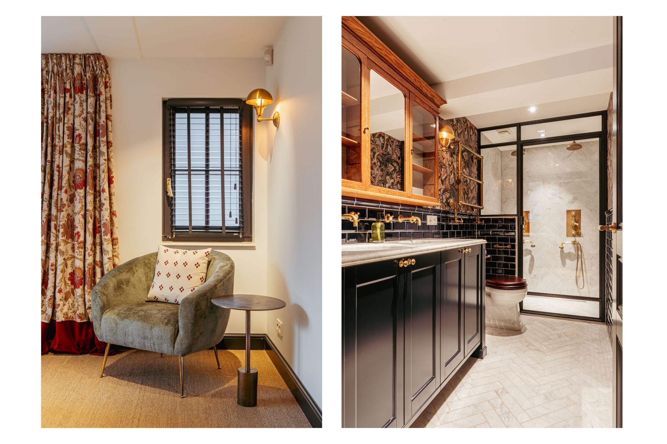 The cohesive style from the ground floor continues upstairs, with a keen eye for detail and high-quality finishes. This level includes three spacious bedrooms, one of which is the master bedroom, as well as two bathrooms featuring amenities such as a bathtub and a rain shower for two. The master bedroom boasts a walk-in closet and built-in audio speakers.