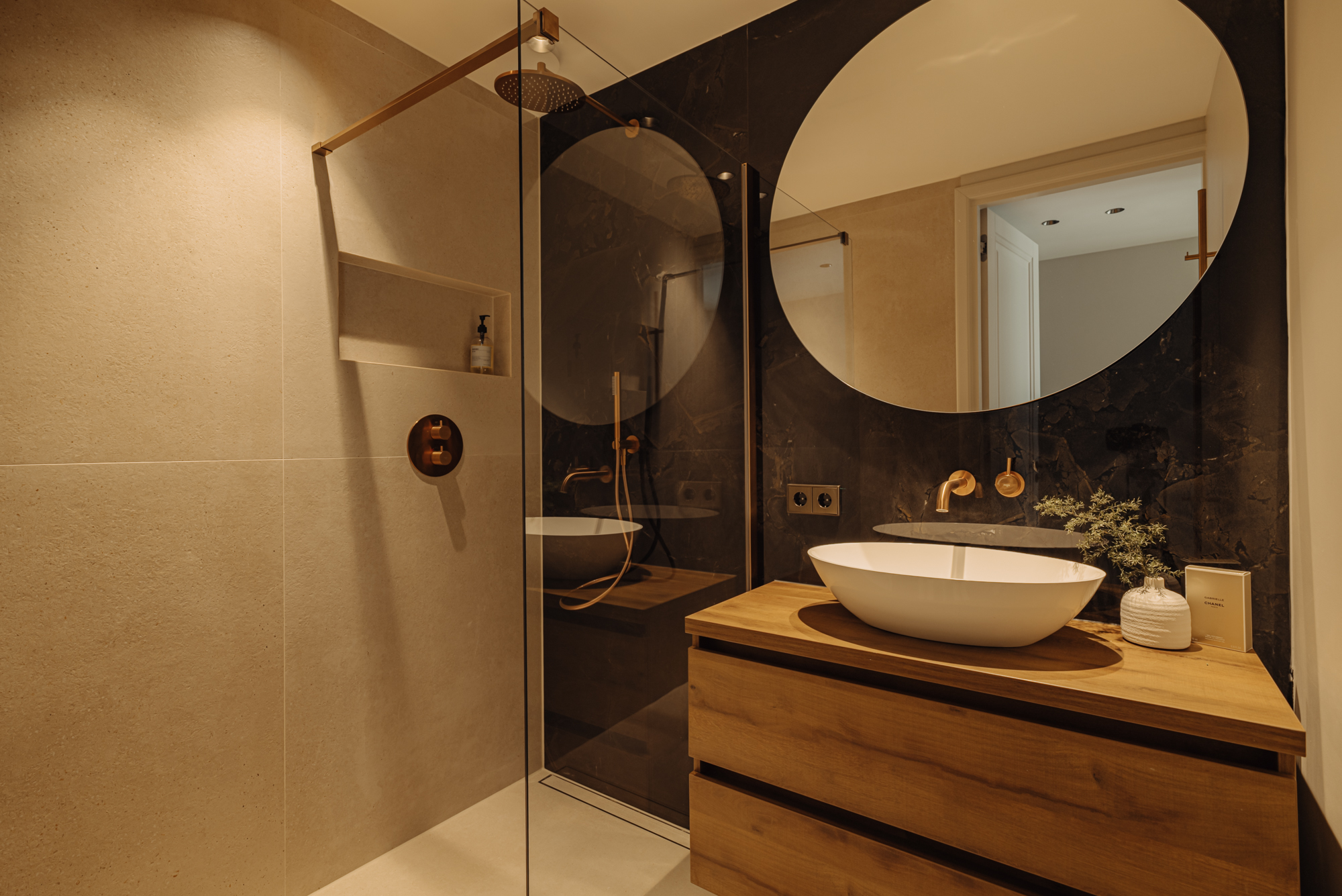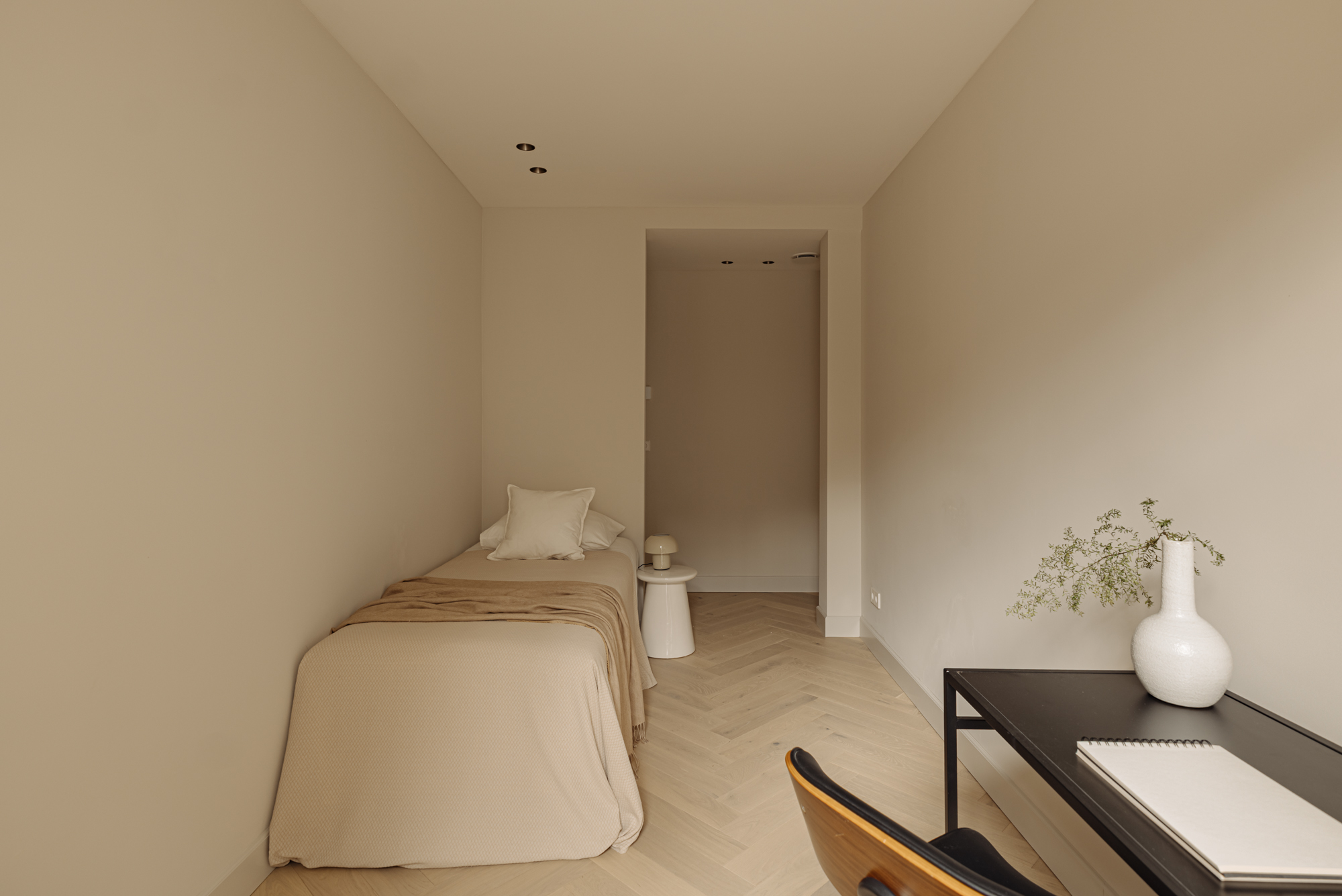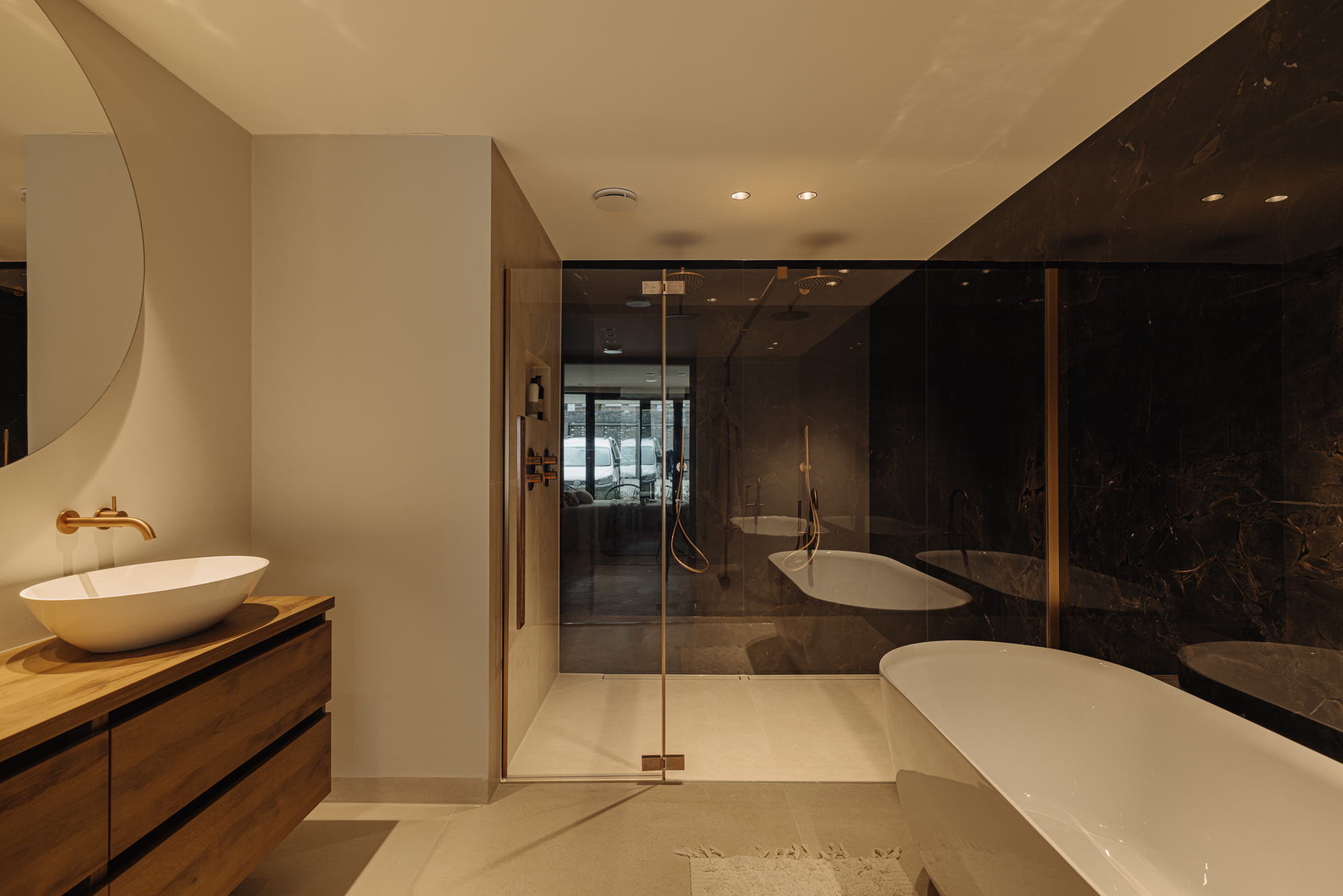 A luxury, 182-m² double ground-floor apartment with four bedrooms, two bathrooms, a balcony, terrace, internal storage space and a front and back entrance. The apartment features carefully selected, high-end materials that create a sense of warmth and comfort. Luxury herringbone floors, high ceilings, subtle tones in the kitchen and bathrooms and a well-thought-out lighting plan create a harmonious and inviting ambiance. The kitchen, with its clean lines and ample storage space, is a perfect combination of style and practical functionality. The building itself is a freehold property.