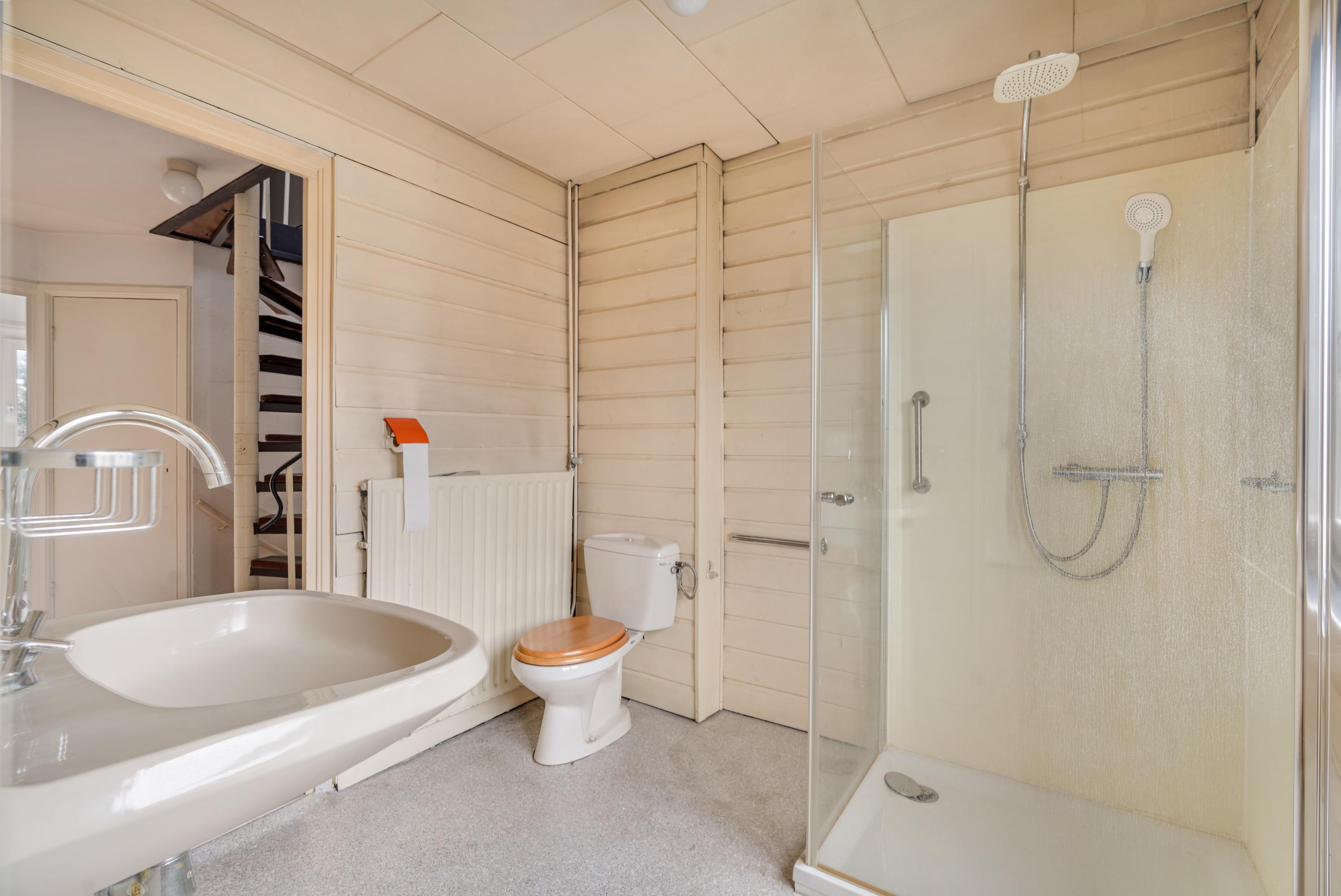 The second floor consists of a landing and an attic room. This floor features exposed wooden beams and a dormer window at the rear, providing ample daylight. On the landing there is a washbasin, washing machine connection and the central heating installation.