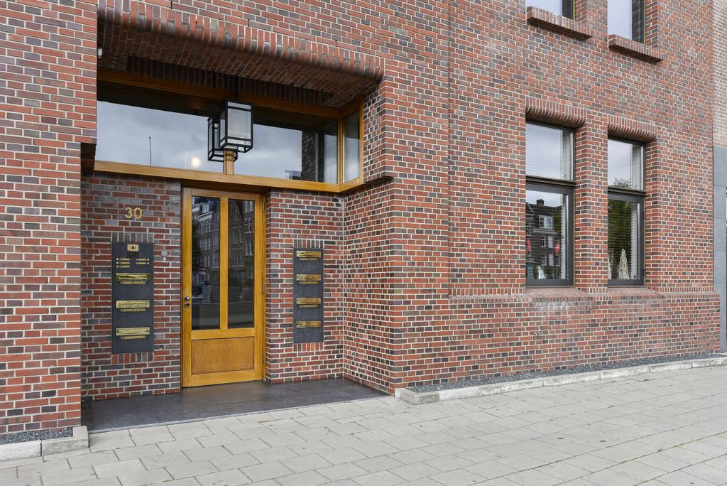 This block was designed and finally completed in 2012, with an eye for detail and quality. The design provided for extra high ceilings and the use of predominantly glass in the façades on the garden side. The apartments are light, airy and spacious. The current owners finished off the apartment’s interior with a great deal of taste and an eye for detail which may be seen in the sturdy materials such as the herringbone pattern floors and the steel surrounds to the internal framing for doors and windows. Lots of details are repeated throughout the apartment. This apartment has a floor area of 135 m² and a garden of 41 m².