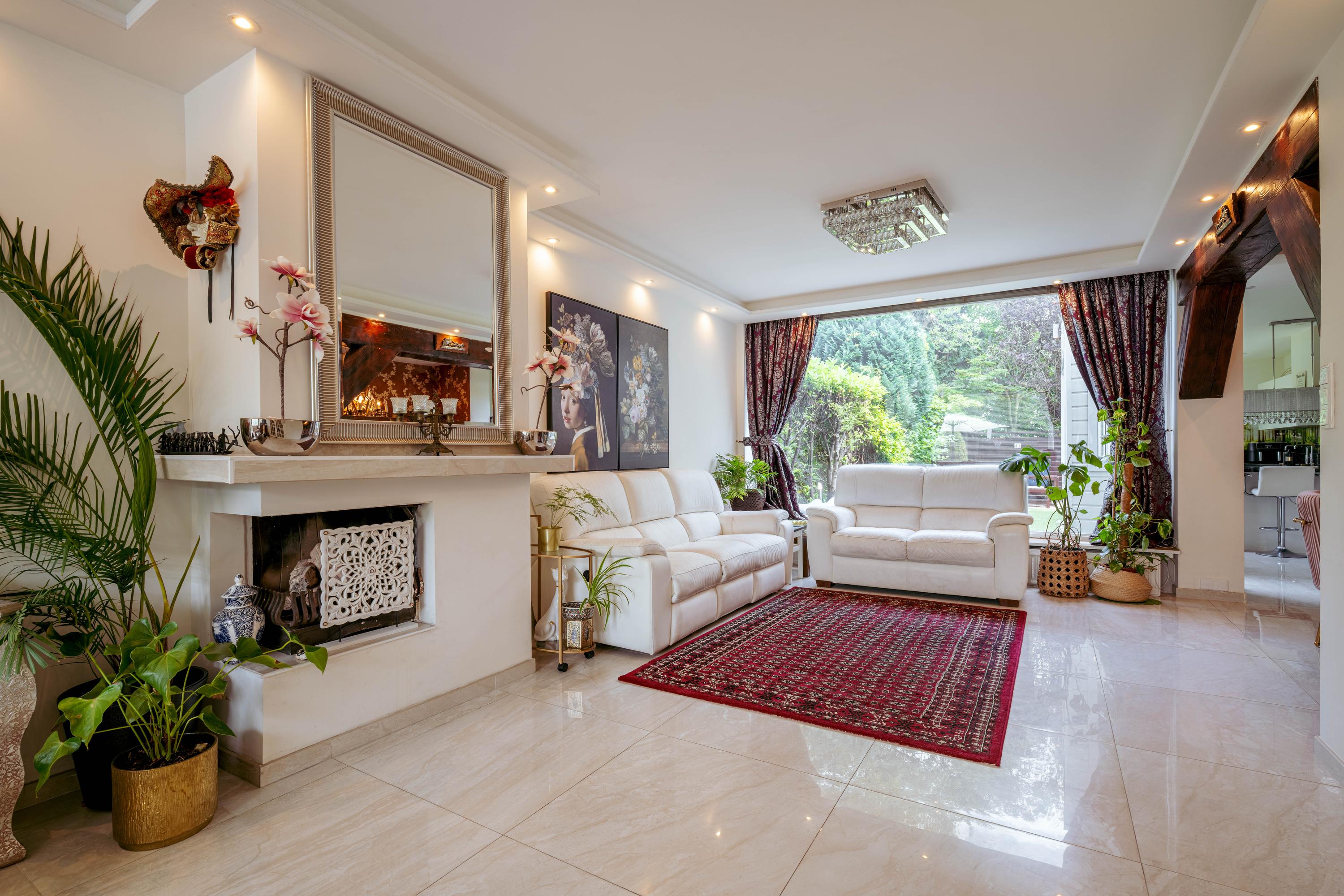 Through the spacious front garden, you reach the entrance to the house. You enter the vestibule with wardrobe space, which leads to the central hall. Here you will find practical storage space and a separate toilet. Double doors give access to the spacious and bright living room. At the front is the sitting area, attractively furnished with a gas fireplace. At the rear you will find the dining room, which is directly connected to the semi-open kitchen. The kitchen is fully equipped with a fridge, oven, microwave, gas cooker, dishwasher, and sink. A cosy bar area and seating area make this a nice place to cook and get together. Adjacent to the kitchen is the utility room, ideal as extra storage space or laundry room. From the kitchen, you have access to the wonderful and spacious back garden (approx. 51m²), facing east and equipped with storage.