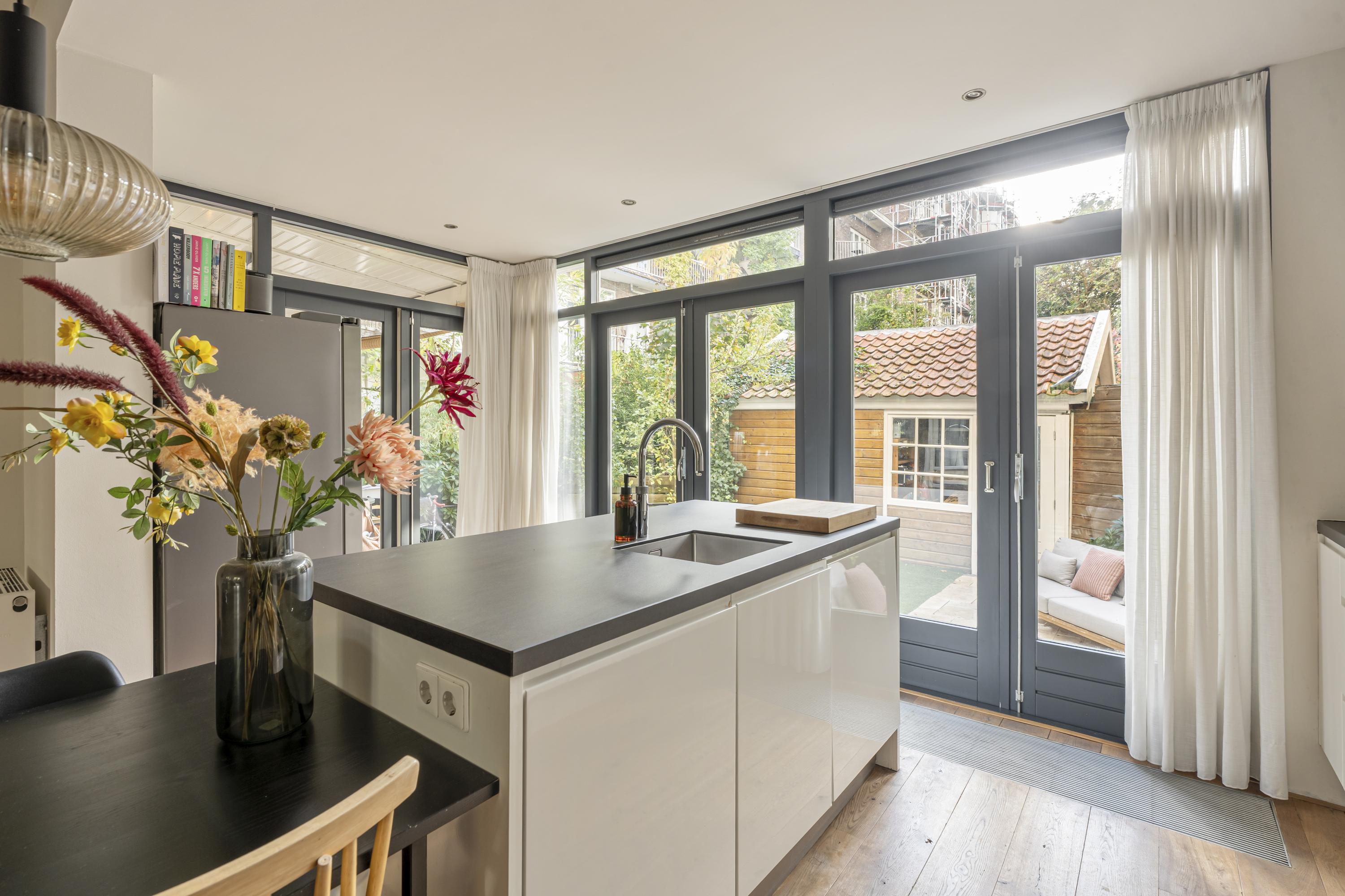 Spacious and charming ground-floor apartment (approx. 117 m²) with a sunny southwest-facing garden, ideally situated on the beautiful Merwedeplein in the highly sought-after Rivierenbuurt. The property features three bedrooms, a generous living room with a gas fireplace, and a large open-plan kitchen with a cooking island and direct access to the garden. Conveniently located within walking distance of shops, restaurants, green spaces, and various public transport connections.