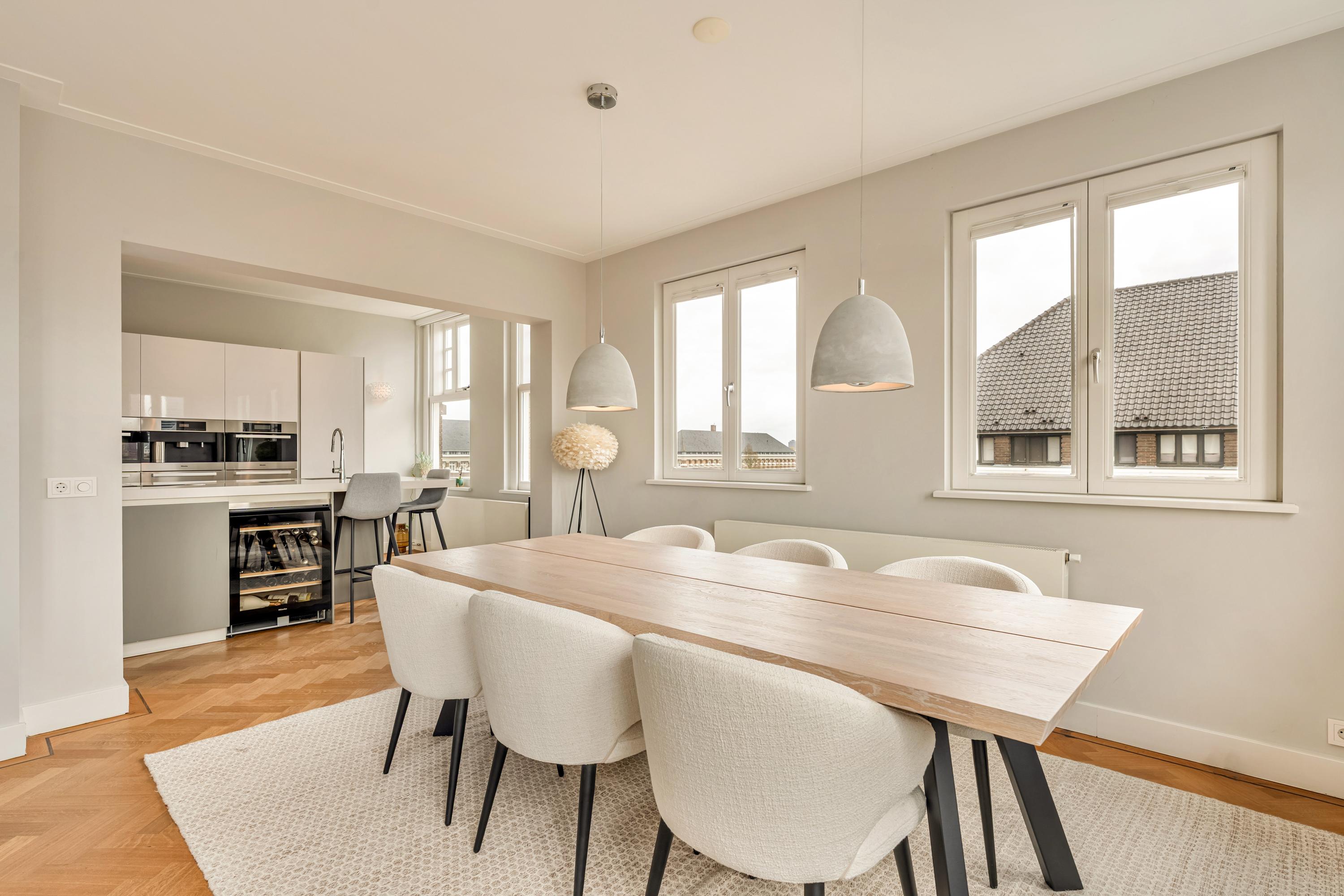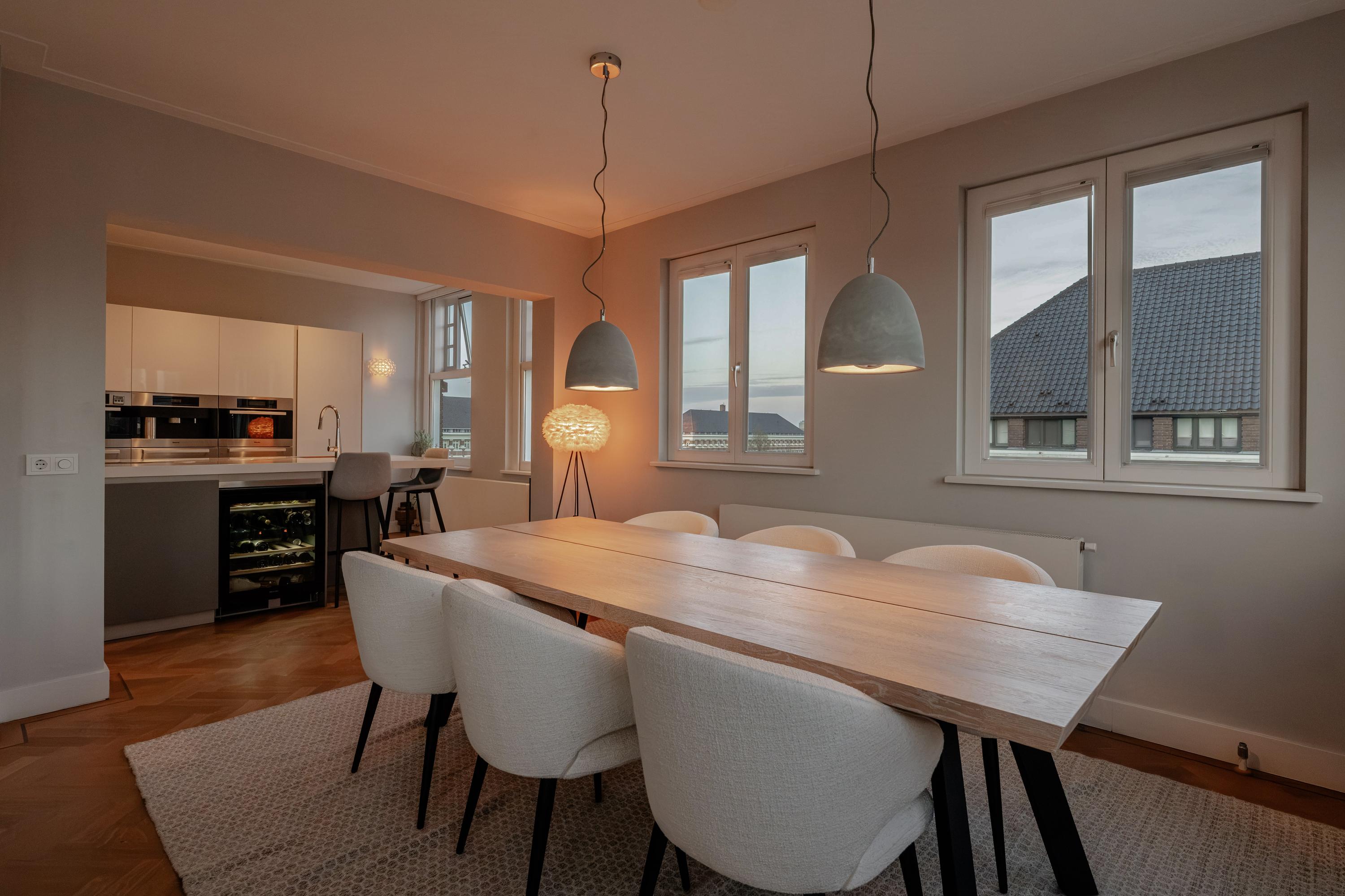 The apartment is finished with a beautiful wooden herringbone floor. All window frames have been renewed in hardwood with HR++ double glazing, while preserving and modernizing the characteristic sliding window system.