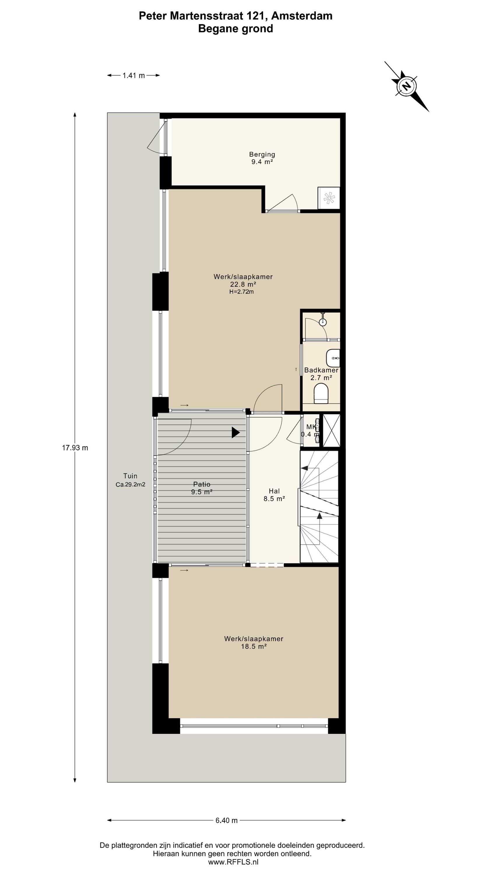 To the right of the hallway is an 18 m² office/bedroom.