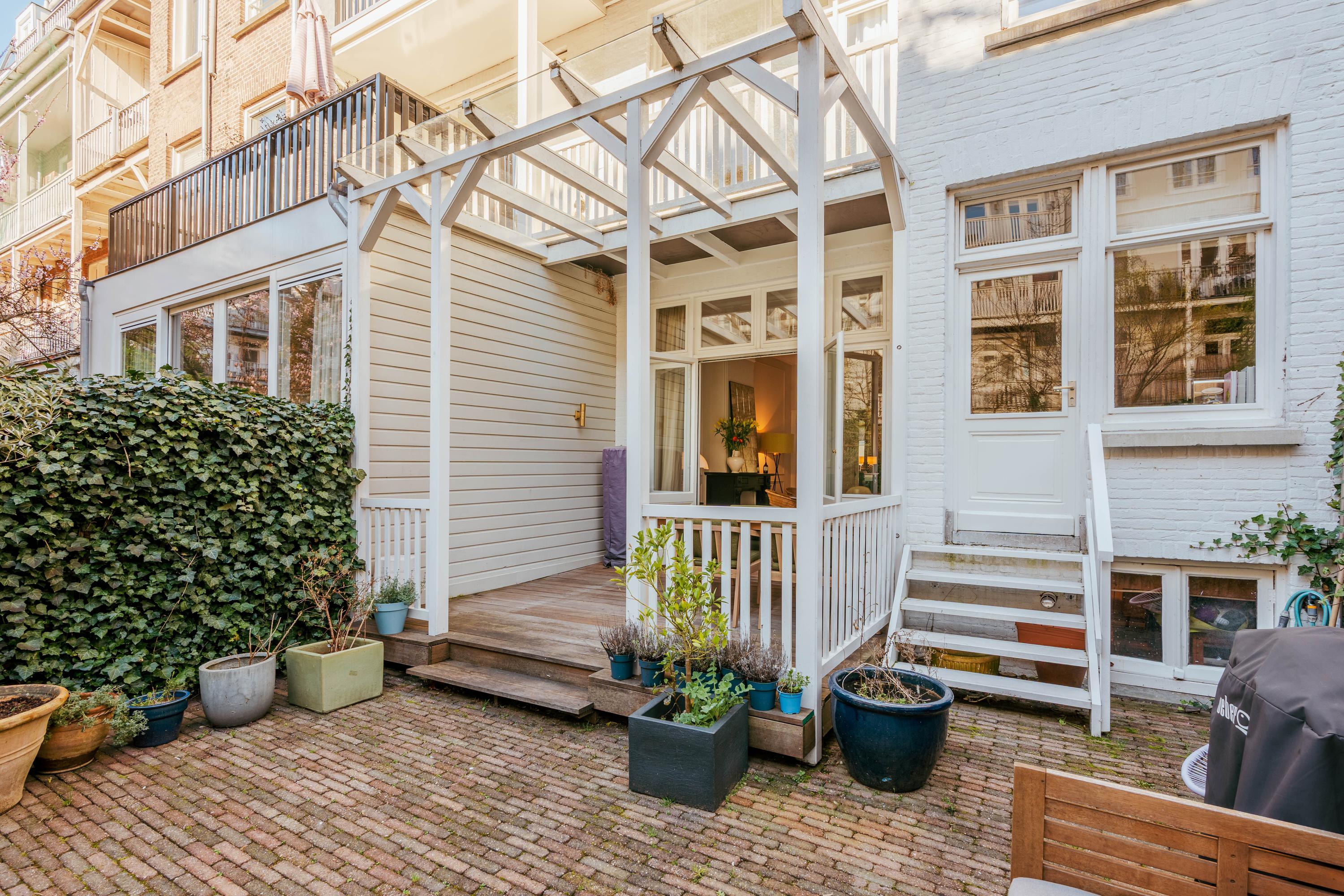 - Spacious sunny garden with covered terrace of 61 m² + two balconies