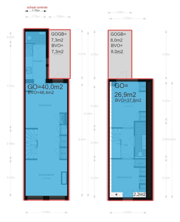 - Dubbel bovenhuis van ca. 67m² (NEN2580)