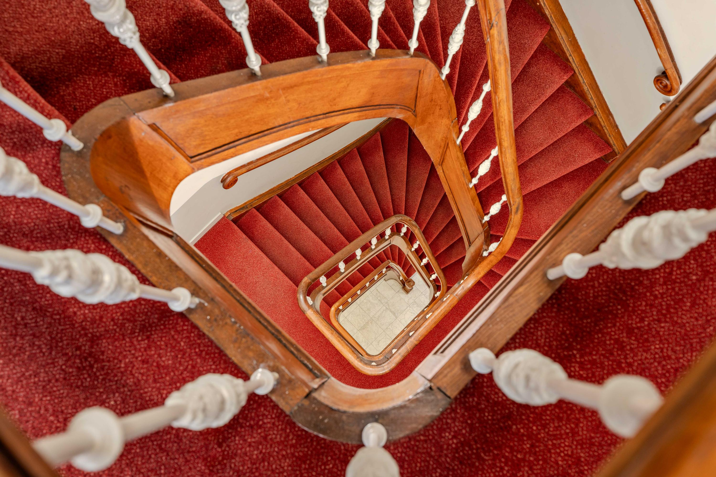 A separate toilet with a sink is accessible from the central hall, as well as the staircase leading to the fourth and top floor of this characteristic apartment.