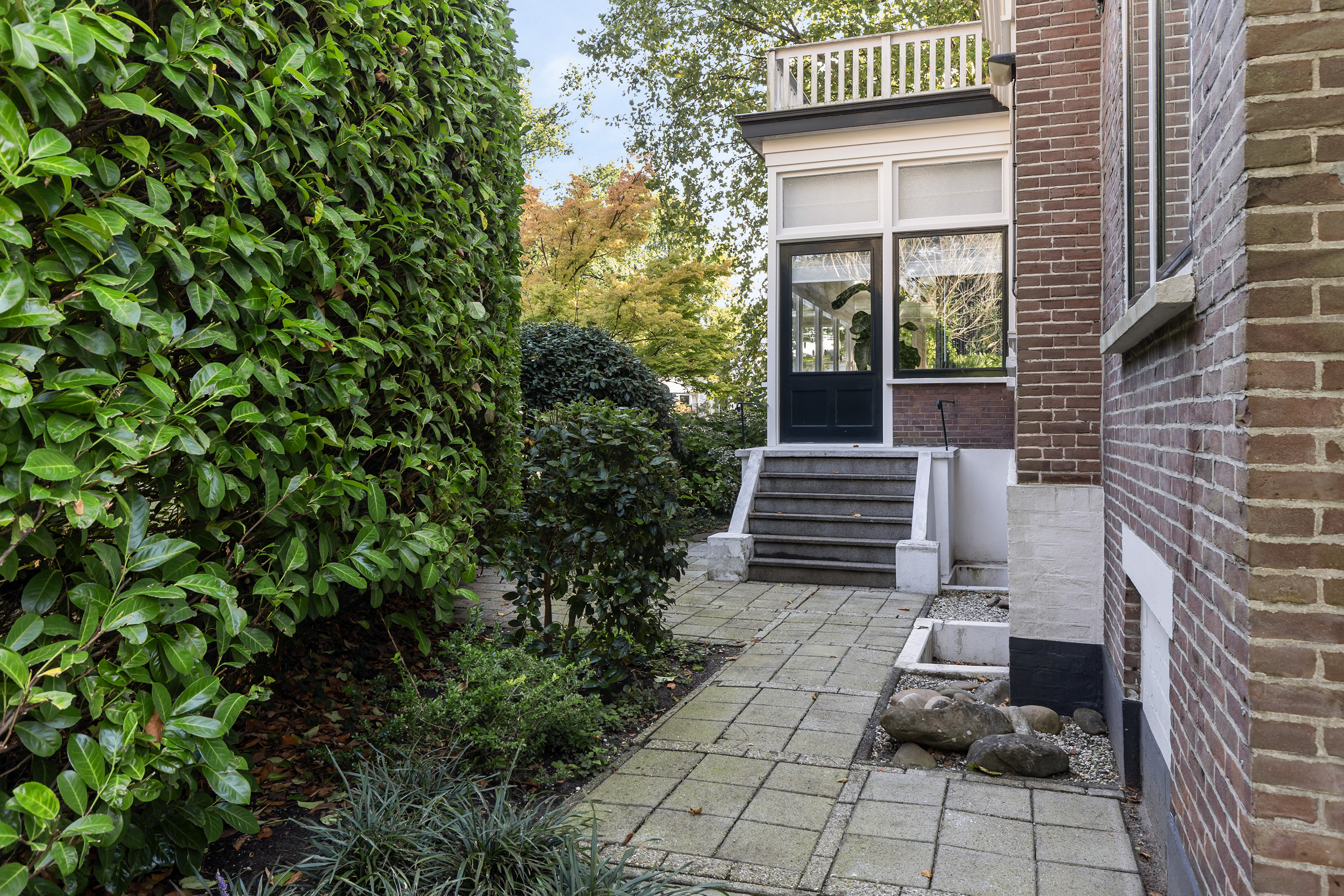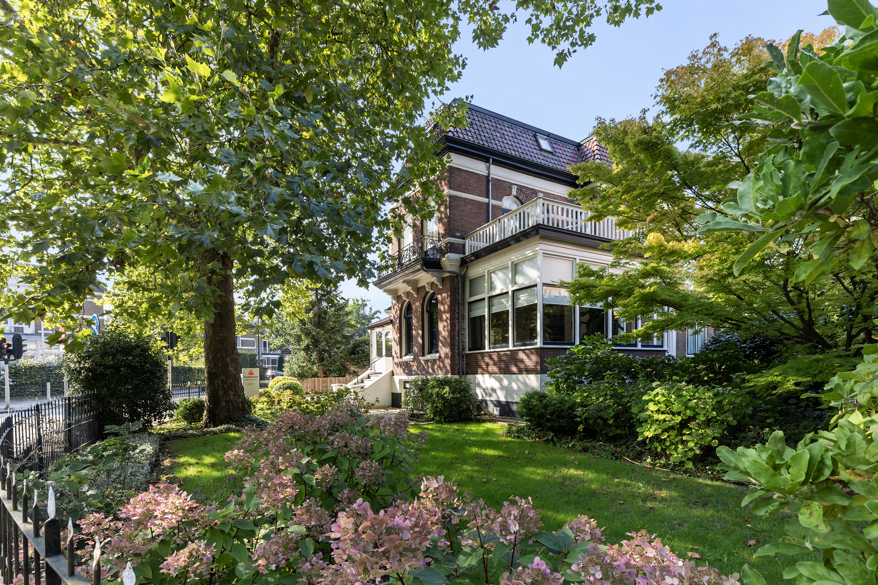 Standing on the corner of the one-way streets Kerklaan and Mr. van Rhemenslaan, this impressive villa was designed in 1878 by architect A.A.M. Beretta. Built in the eclectic style, it is a fine example of 19th-century urban architecture, blending influences from Neo-Renaissance and Neoclassical design. The curved pediments above the arched windows, ornate stonework, decorative cornices and distinctive corner tower lend the property its unmistakable presence. Its architectural quality led to its designation as a listed municipal monument.