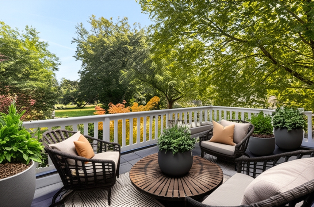 Set on a 617 m² plot, the gardens are attractively landscaped and easy to maintain, with mature planting and tall hedges providing excellent privacy. Mature trees at the front reinforce the villa’s stately appearance.