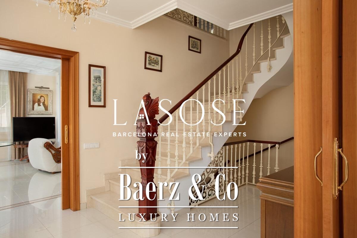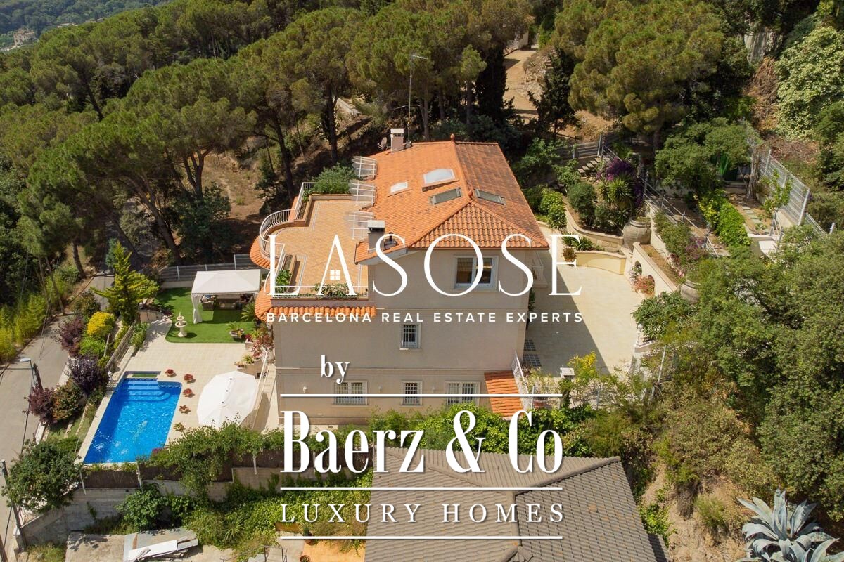 Spread across four elevator-connected levels, the villa’s architecture is measured, light-filled, and designed for effortless indoor-outdoor flow. The living areas are anchored by elegant marble floors and a fireplace, opening to generous terraces and a level garden, all framing exceptional views that reach the Barcelona skyline on clear days. Five bedrooms and five bathrooms allow for private retreat, while two fully equipped kitchens enhance flexibility. The private library, large pantry, and dedicated storage spaces add utility without sacrificing poise.