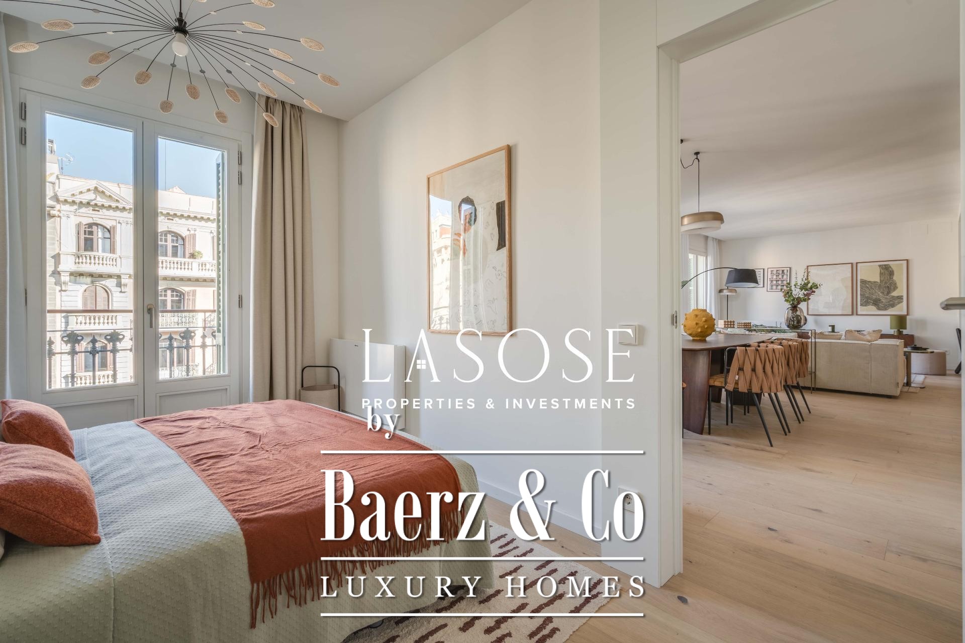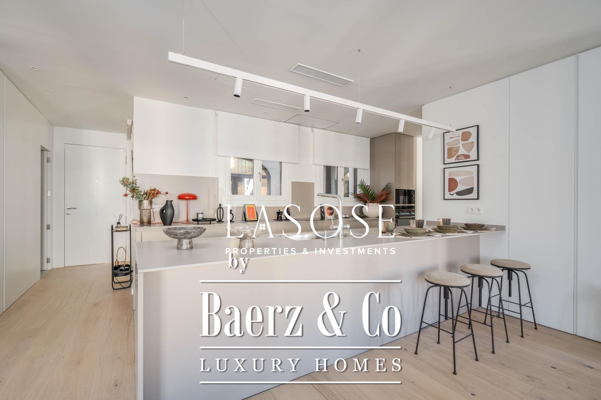 Within these walls, light moves fluidly between spaces, accentuating clean lines and generous proportions. The building integrates seamlessly with the distinctive rhythm of Eixample, whose octagonal blocks, broad avenues, and peerless connectivity set the pace of contemporary Barcelona living. Amenities include elevator access, built-in wardrobes, and a dedicated washing room, all composed without compromise.
