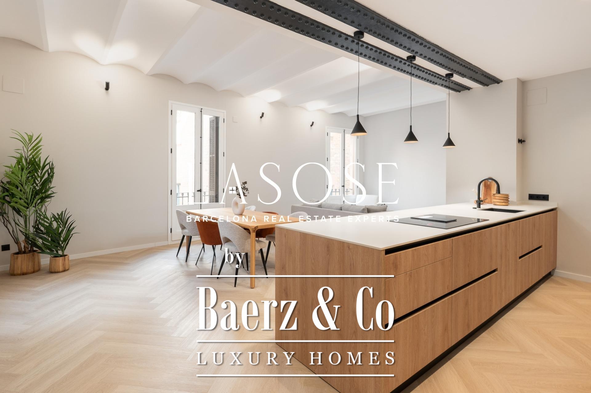 offering a perfect combination of style and functionality. The large central island not only organizes the space, but also makes it the social heart of the house.. . In the sleeping area, there are three spacious bedrooms, including an elegant master suite with private bathroom and separate dressing room. The other two bedrooms also have excellent dimensions and fitted closets.. . The whole house has air conditioning by aerothermal and wooden carpentry with double glazing.. . . *Location*. . The property is situated in a privileged location in Barcelona, where culture, architecture, art and gastronomy intertwine to offer a unique experience. A few steps away are the Palau de la Música, an architectural jewel, and the Cathedral of Barcelona, in an enclave that connects the Eixample, the Born and the Gothic Quarter. . . It is an ideal area for day-to-day living, with easy access to public transportation, a wide variety of supermarkets and the Santa Caterina market, known for its fresh produce. Living in the center of the city eliminates the need for a private car, as everything is close at hand: schools, kindergartens, the Ciutadella Park is a 10-minute walk away and the beaches and the new port are just two bus stops away. . . It is difficult to find a better location to enjoy all that Barcelona has to offer. . . Do not hesitate to contact us to arrange a visit and personally discover the magic of this apartment. We are available to answer all your questions and help you every step of the way. . . At LASOSE, we don't just sell properties; we offer exceptional living experiences and look forward to welcoming you soon to your new home! .
