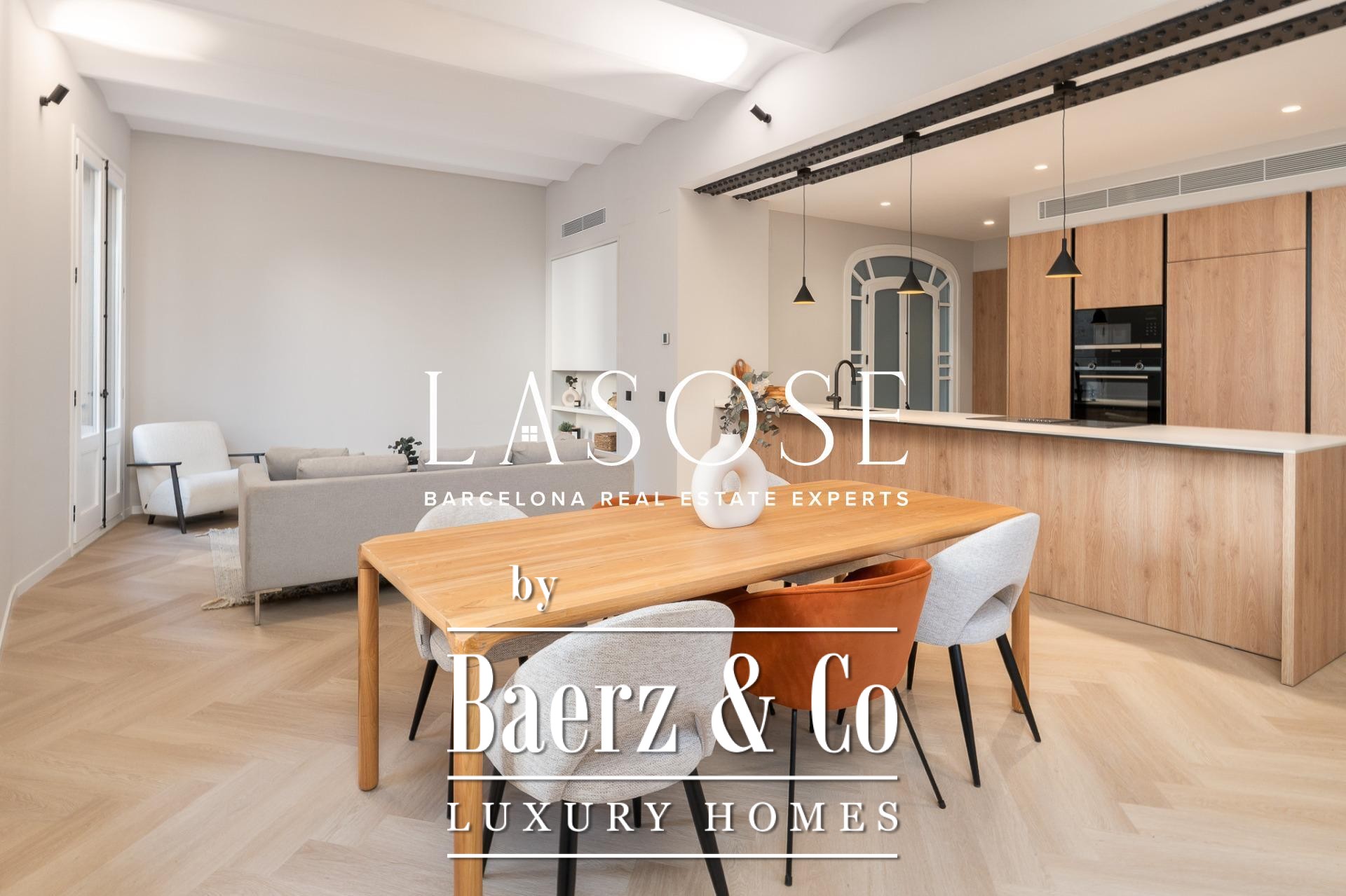 LASOSE presents in one of the best areas of Barcelona, next to the Cathedral and the Palau de la Música, this charming apartment of 140 meters built, completely renovated located in a classic building in the area, with elevator and concierge. . . Exclusive renovated house with original charm and modern design in the historic center of Barcelona, next to the Cathedral and the Palau de la Música.. . Discover this magnificent apartment located in a classic building in the heart of the city, completely renovated with high quality materials and taking care of every detail. With a living area of 119.72 m² and a built area of 140.15 m², this property combines the charm of traditional architecture with comfort and functionality.. . The apartment has three bedrooms, one en suite and two doubles sharing a bathroom. The spaces have been designed to maximize comfort and aesthetics, creating a cozy and modern atmosphere. . . The house has been completely renovated with high quality materials, while respecting original architectural elements, such as wooden shutters and the emblematic Catalan vault. The floor is herringbone vinyl parquet.. . Upon entering the property, a spacious entrance hall opens onto an impressive day area. . . The living-dining room, spacious and cozy, stands out for its warmth, thanks to the high ceilings with Catalan vault and for its extraordinary luminosity, enhanced by a pleasant balcony overlooking a beautiful and quiet square. This space is ideal to enjoy both day-to-day life and gatherings with friends or family.. . The open-plan kitchen, integrated into the living room, has been equipped with Siemens furniture and appliances,