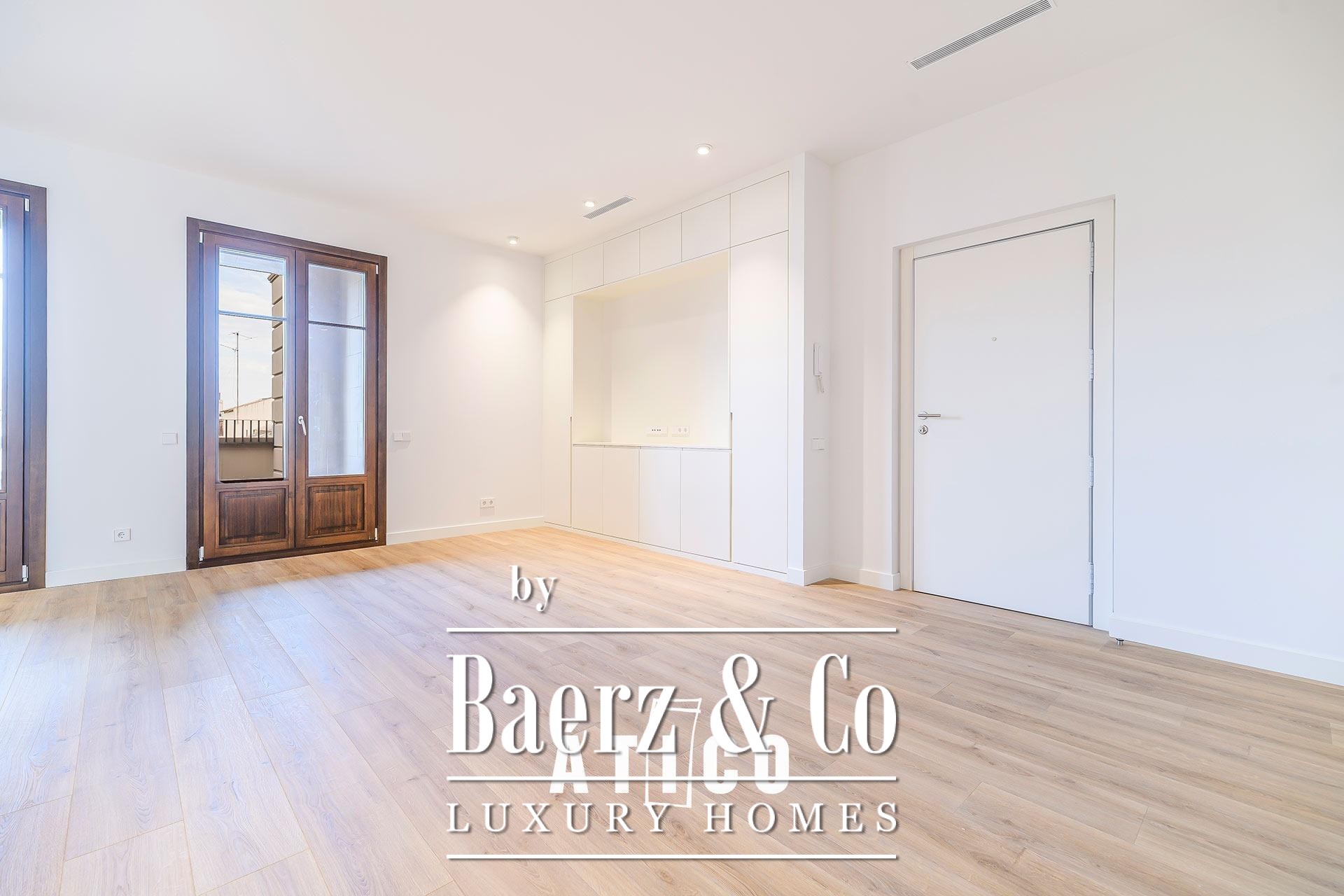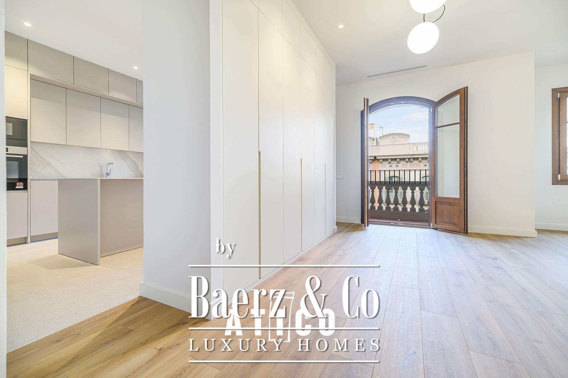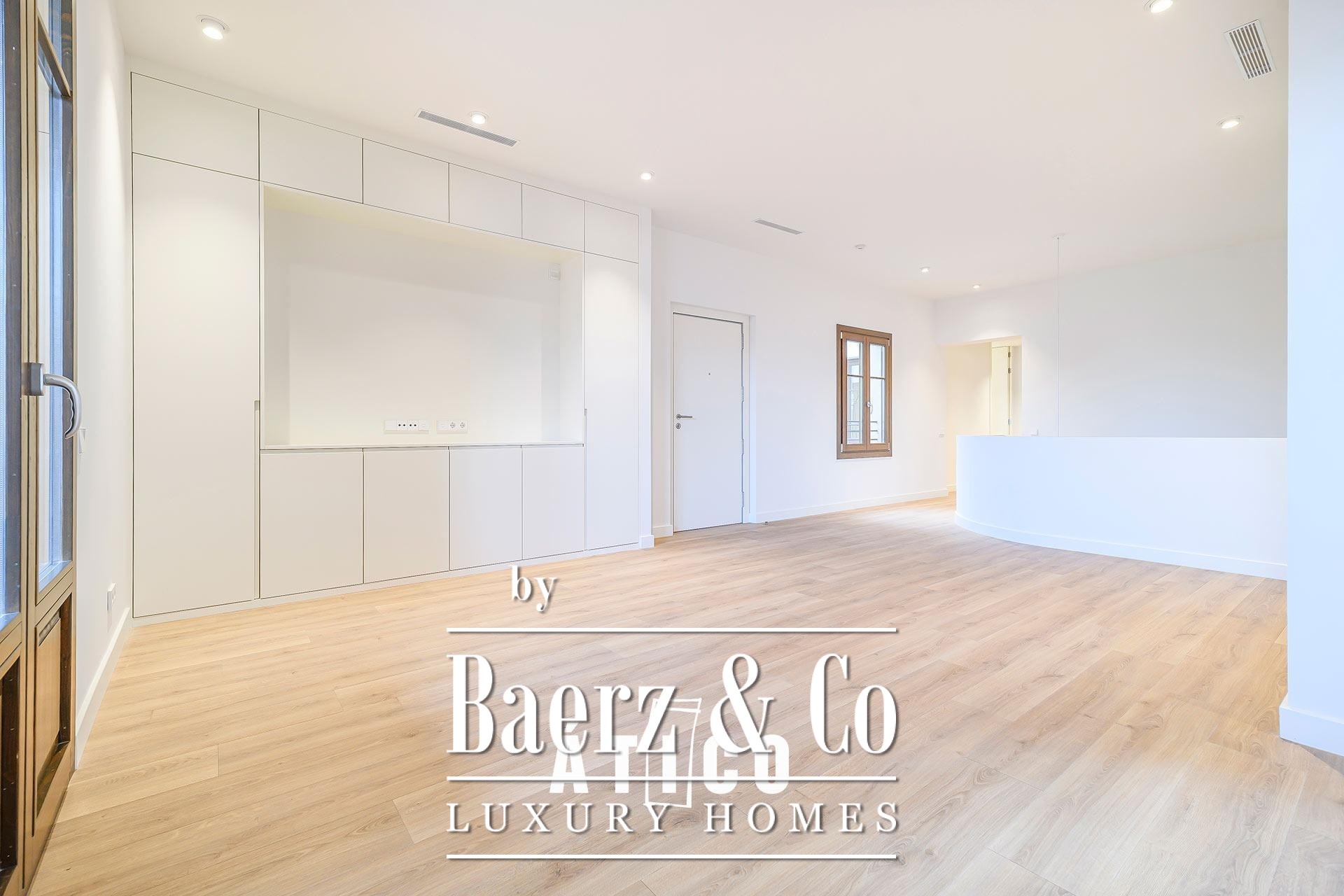 This duplex apartment Barcelona stands as a testament to refined urban living, offering 212.51 m² of newly renovated space across two distinct floors. Designed with flexibility in mind, its independent entrances provide options for privacy, work, or hospitality, allowing seamless transitions between day and night zones or dual-purpose living. Upon entry, a modern staircase defines the interior, lending the home a confident architectural rhythm and connecting both levels.