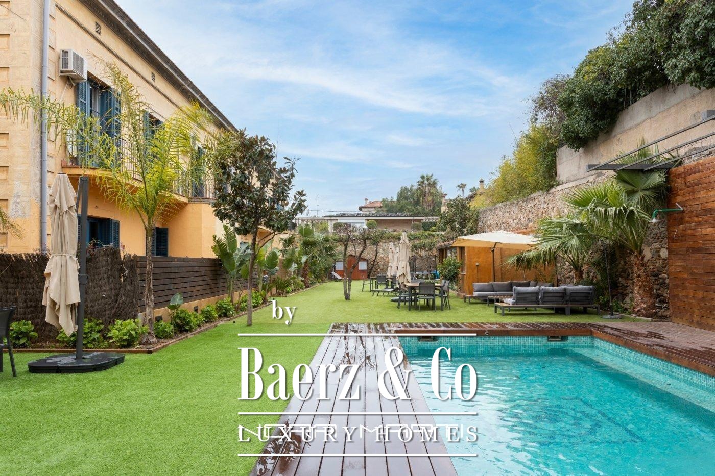 Ground floor apartment Barcelona offers a distinguished blend of modern comfort and historic elegance. Nestled within a 1930s modernist villa, this 200 m² residence is defined by light, tranquility, and a privileged residential setting. The interior welcomes with a spacious living room opening to a 75 m² private garden and a 20 m² sea-facing terrace, setting the stage for quiet mornings and relaxed gatherings.