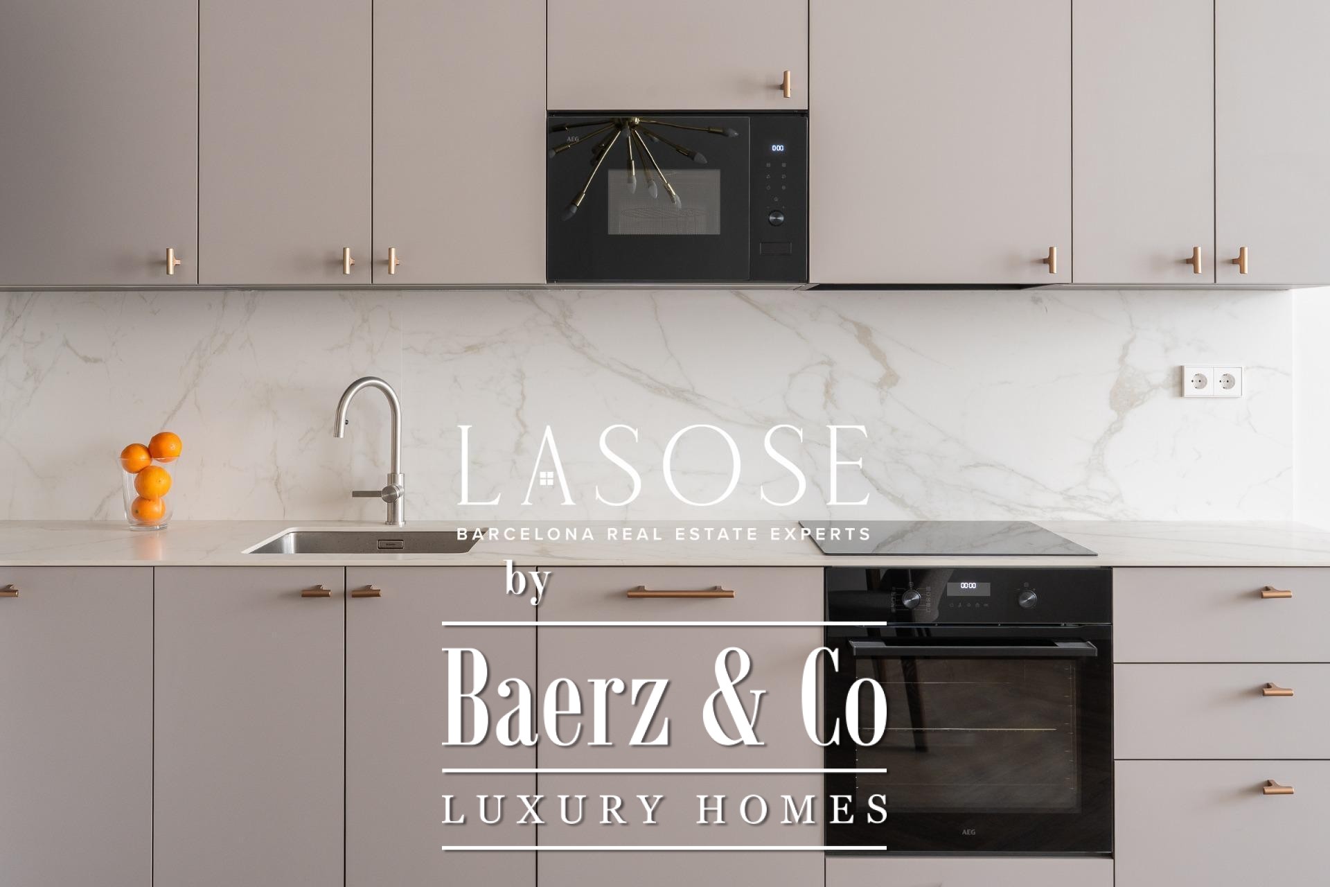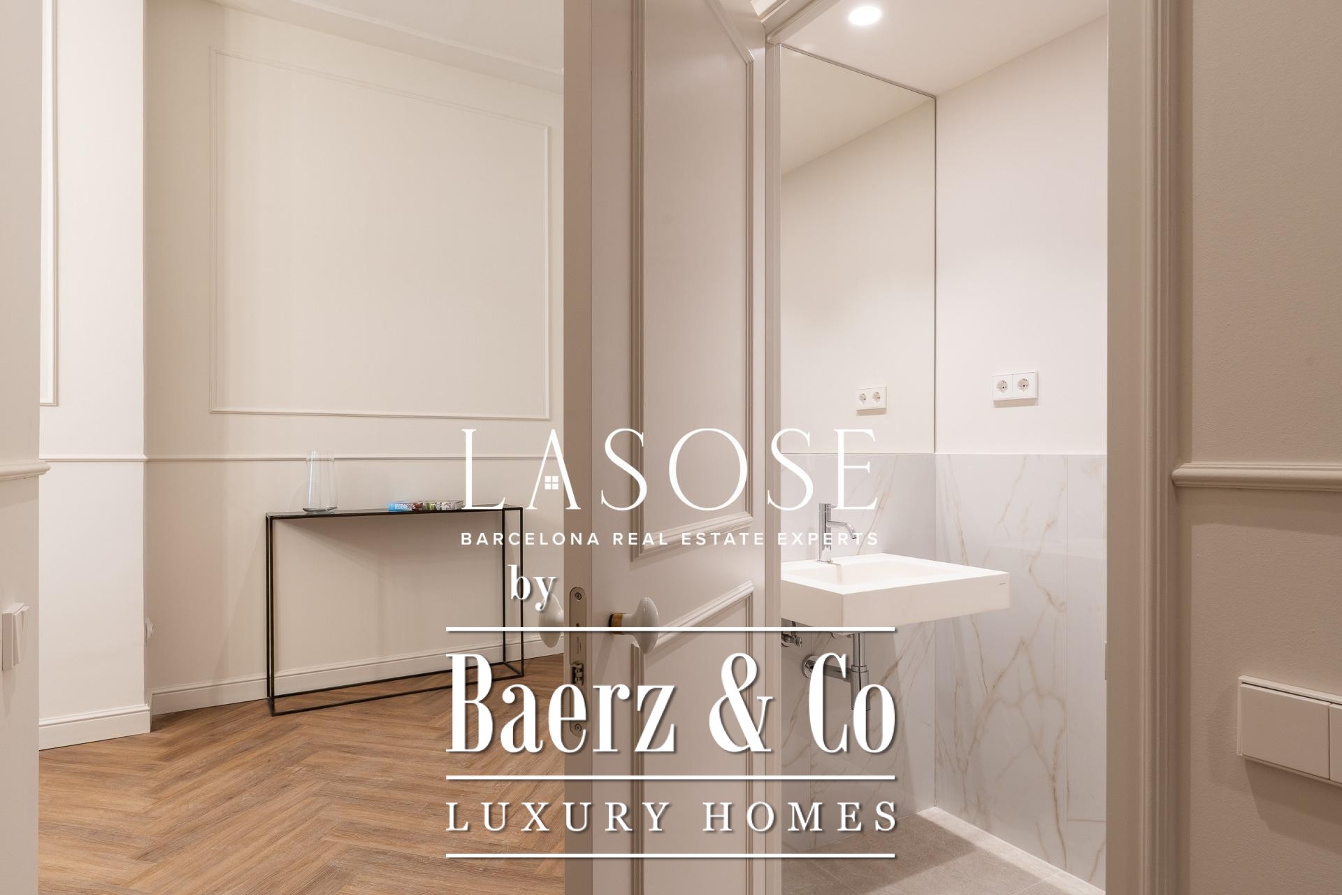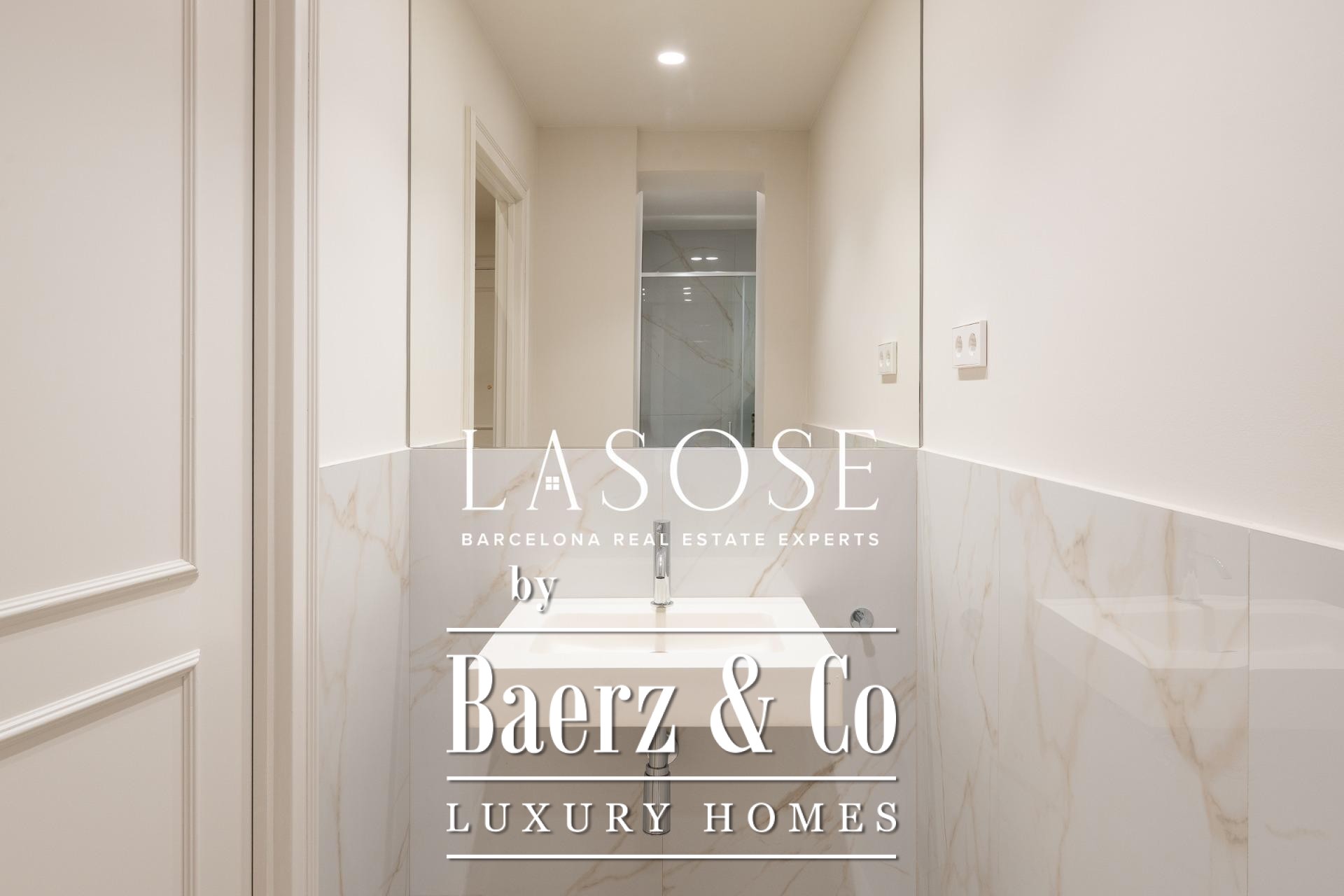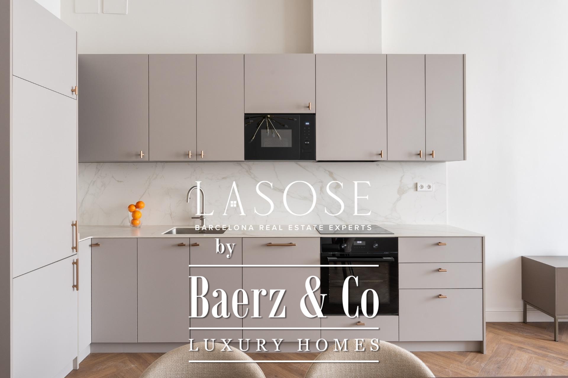 Apartment Barcelona is redefined in this exceptional 118 m² residence, showcasing a meticulous renovation within a historic 1850 building, now a Local Heritage Site. The property achieves the rare harmony between preserved architectural character and the expectations of contemporary luxury. Entering, you are welcomed by an immediate sense of space and refinement, with an open-plan living and dining area bathed in natural light through generous windows facing Paseo Isabel II. Designer furnishings and premium finishes elevate every moment spent here.