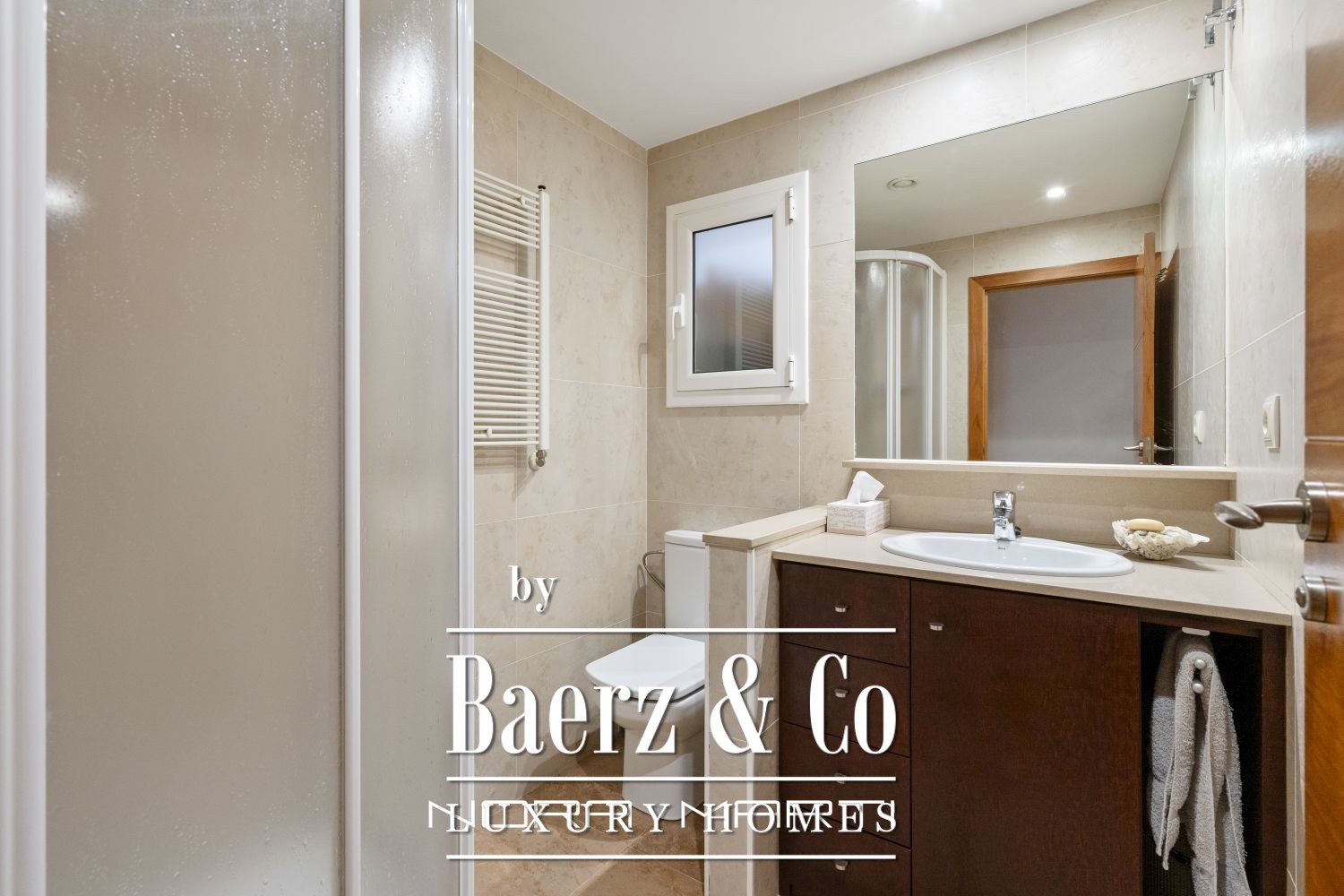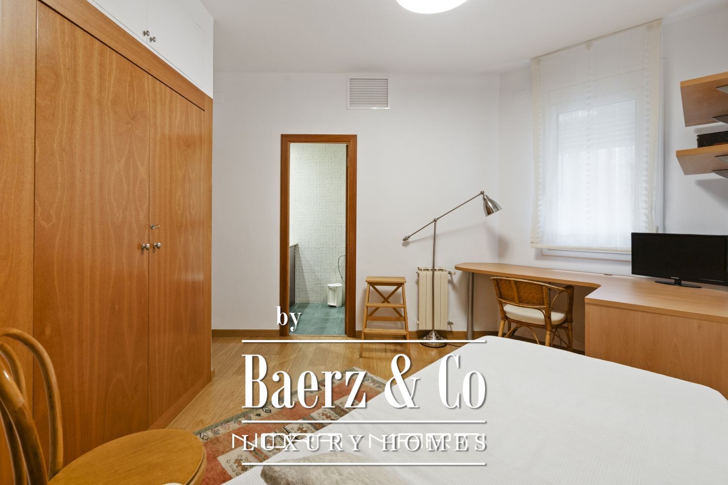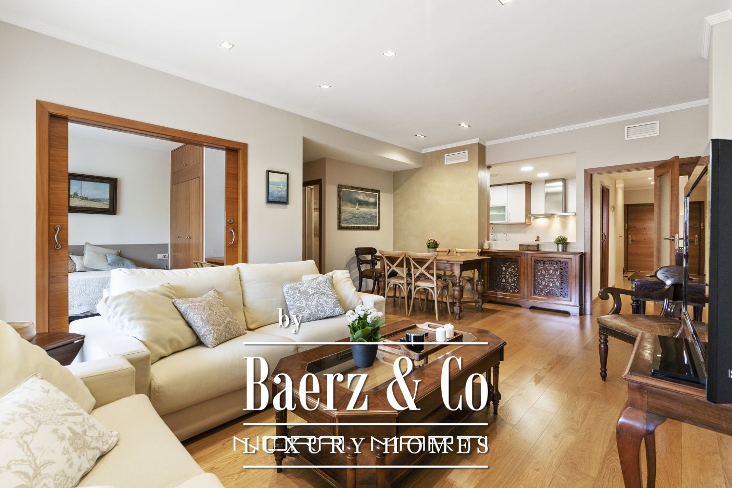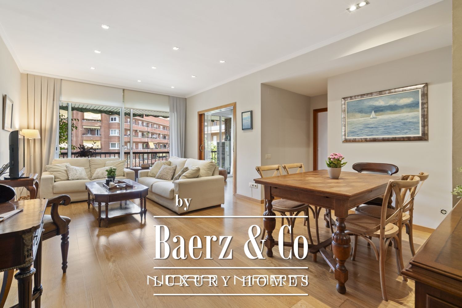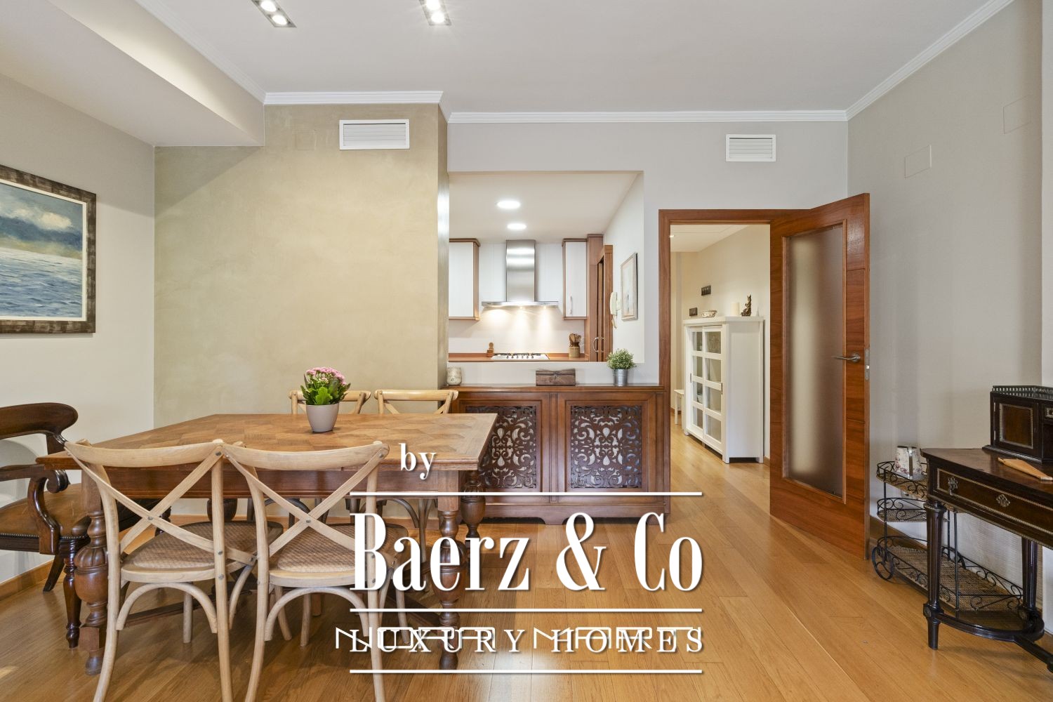 Apartment Barcelona is offered in the heart of l’Eixample Dreta, standing out for its coveted corner position and exceptional natural light. Recently renovated, this 127 m² residence balances comfort and understated style, creating a warmly inviting atmosphere. The layout is carefully considered, featuring three bedrooms and three bathrooms, allowing both space and privacy.