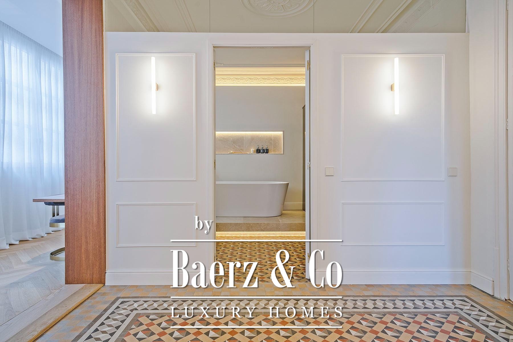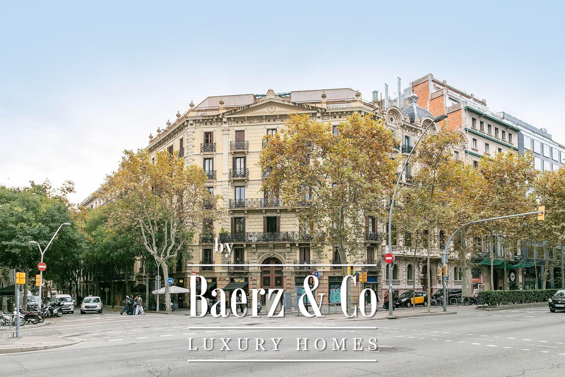 Luxury apartment Barcelona offers an exclusive living experience, defined by its location on a corner with a chamfered façade. This architectural hallmark brings in maximum natural light, a rare attribute ensuring brightness, spatial clarity, and lasting comfort. Every room of the 183 m² apartment is exterior-facing, cultivating a sense of well-being and a unique connection with the city.