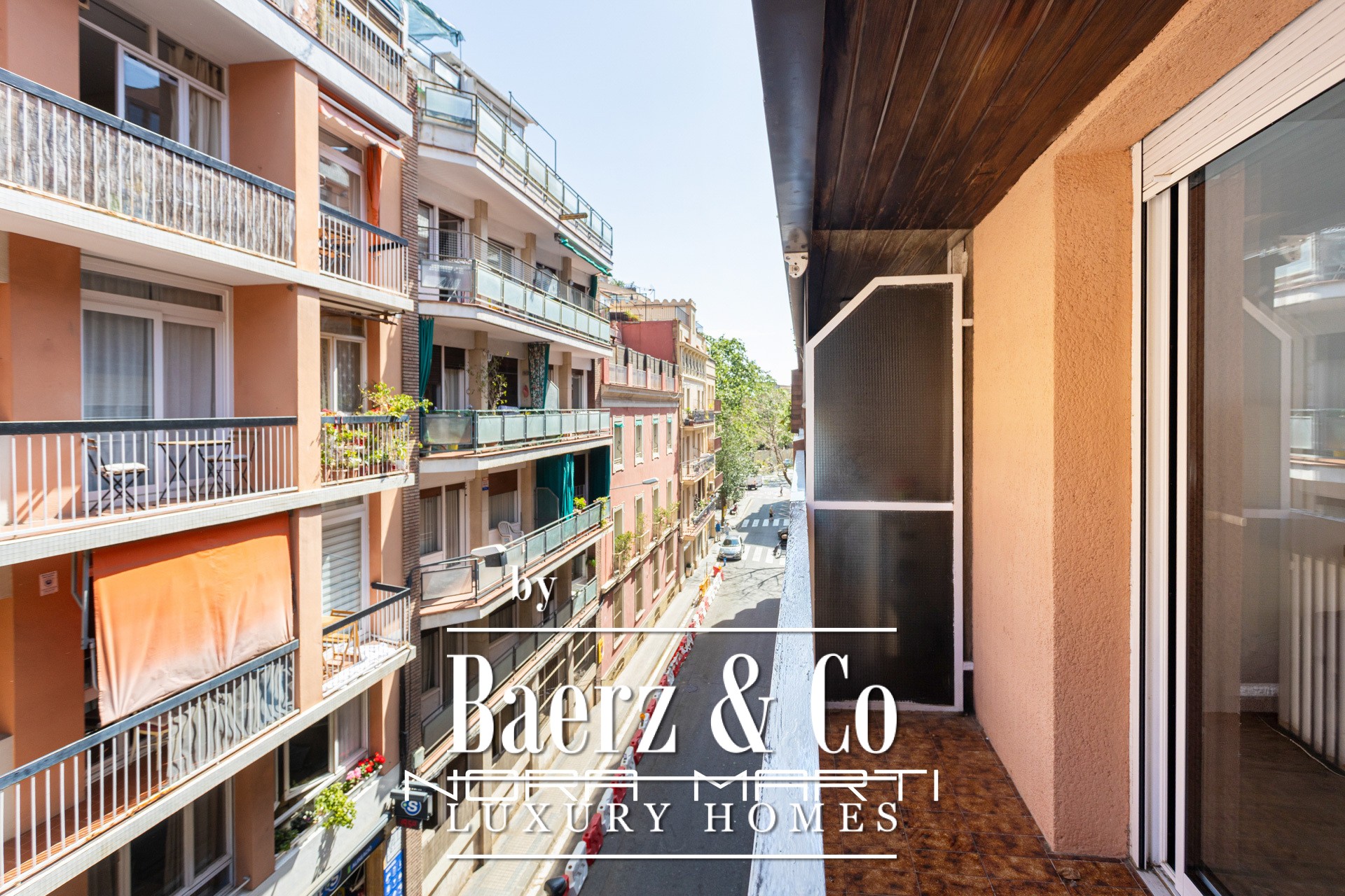 Apartment Barcelona is revealed along a tranquil street near Plaça Artós, offering a considered living experience within Sarrià. Spanning 146 m², this residence balances generous scale with a thoughtfully executed layout. Upon entering, one is met by a spacious foyer unfolding into a luminous, elegant living room, unified by natural light and an understated flow towards a bright dining space that opens directly to a private balcony.