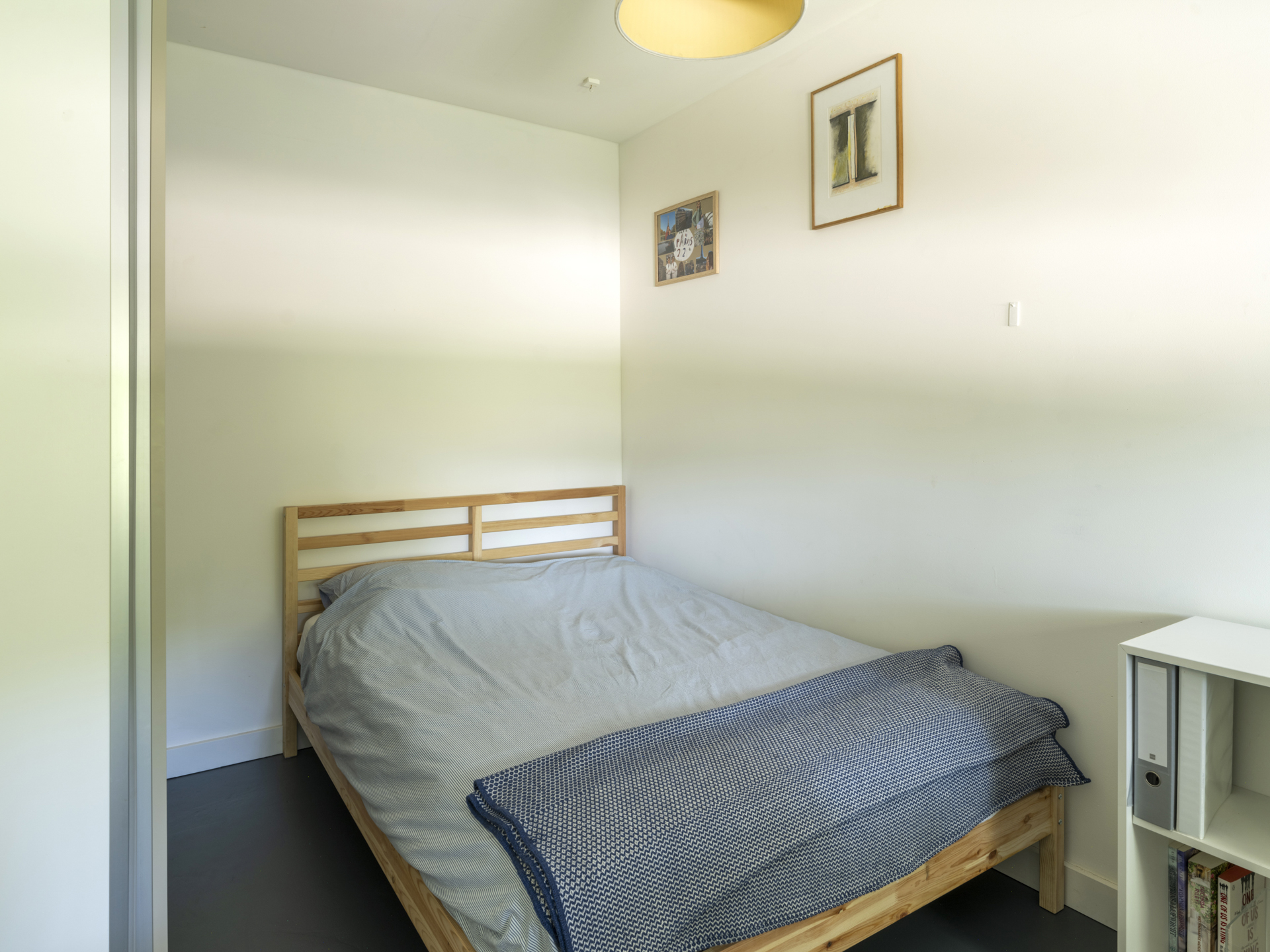 The multifunctional wooden outbuilding, built in Scandinavian style and well insulated (including triple glazing), currently serves as a workshop, hobby space, and guest accommodation, but can easily be converted into a care residence (e.g. for elderly parents).