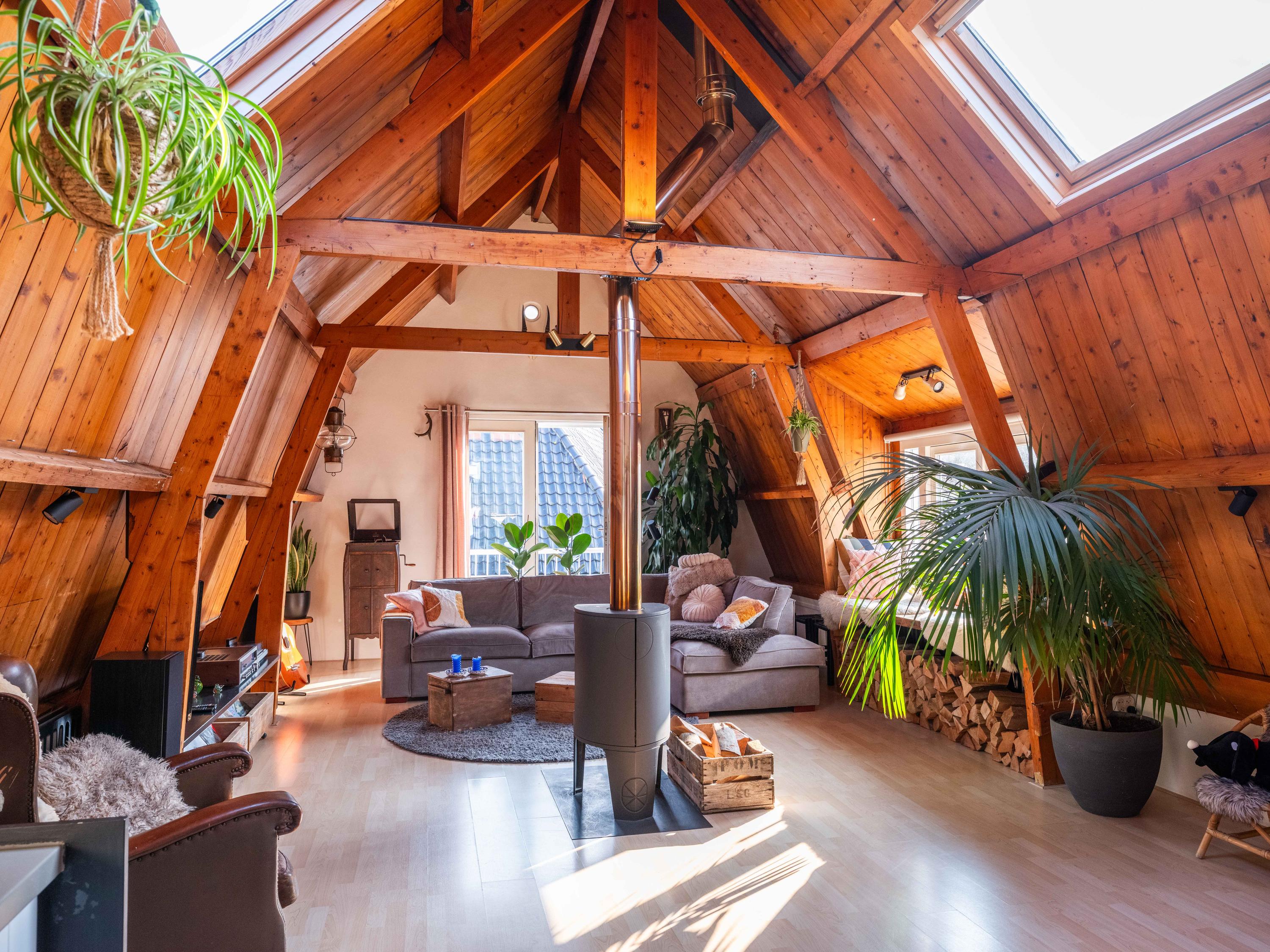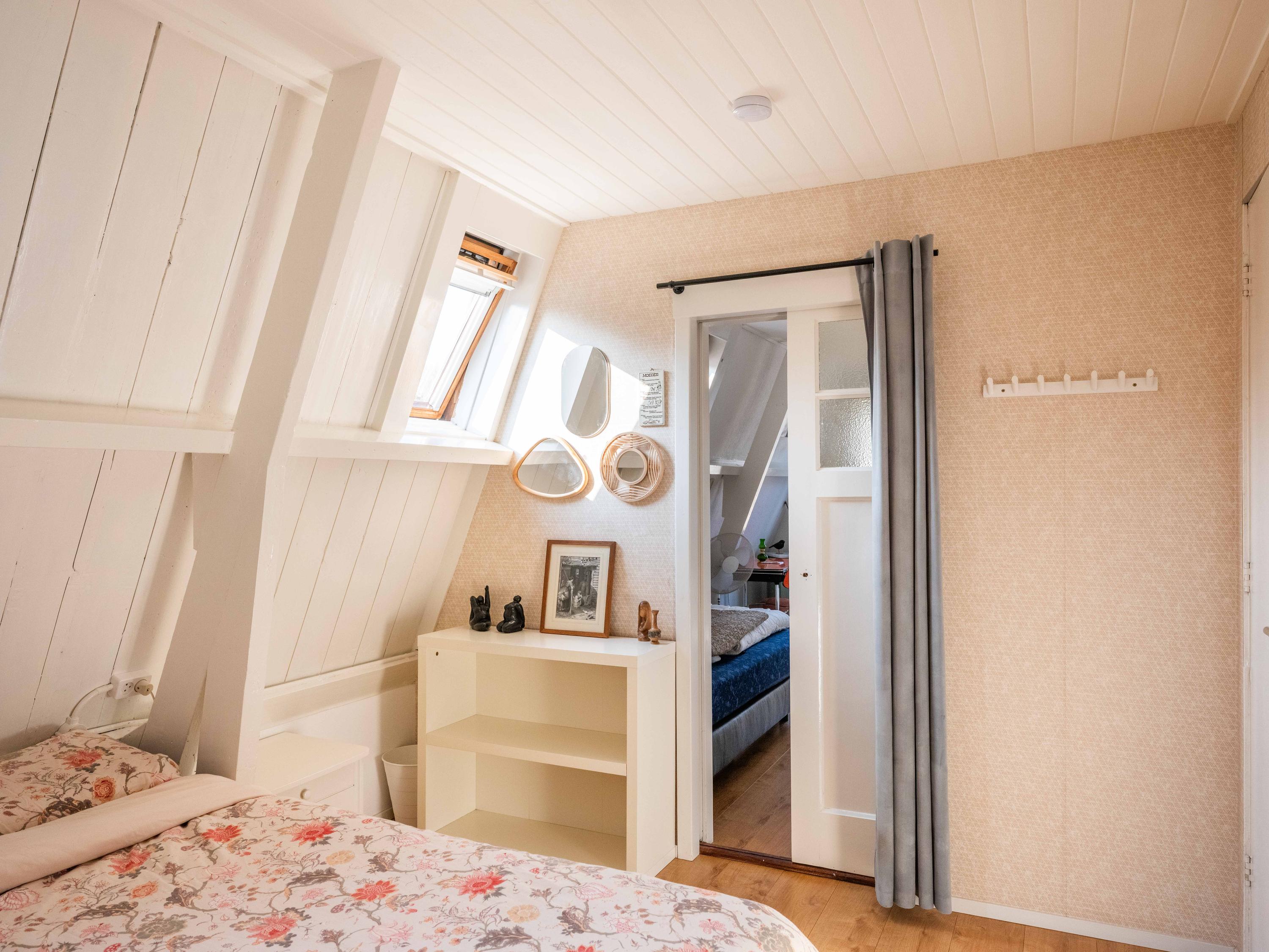 The upstairs apartment (approx. 76 m²) features a very spacious living room with a French balcony and views of Bergen’s two churches. The charming dormer window was fitted with a new frame and insulated glass in 2023 and is currently used as a cozy sitting area. The centrally located wood-burning stove not only creates atmosphere but also provides a pleasant and comfortable indoor climate.