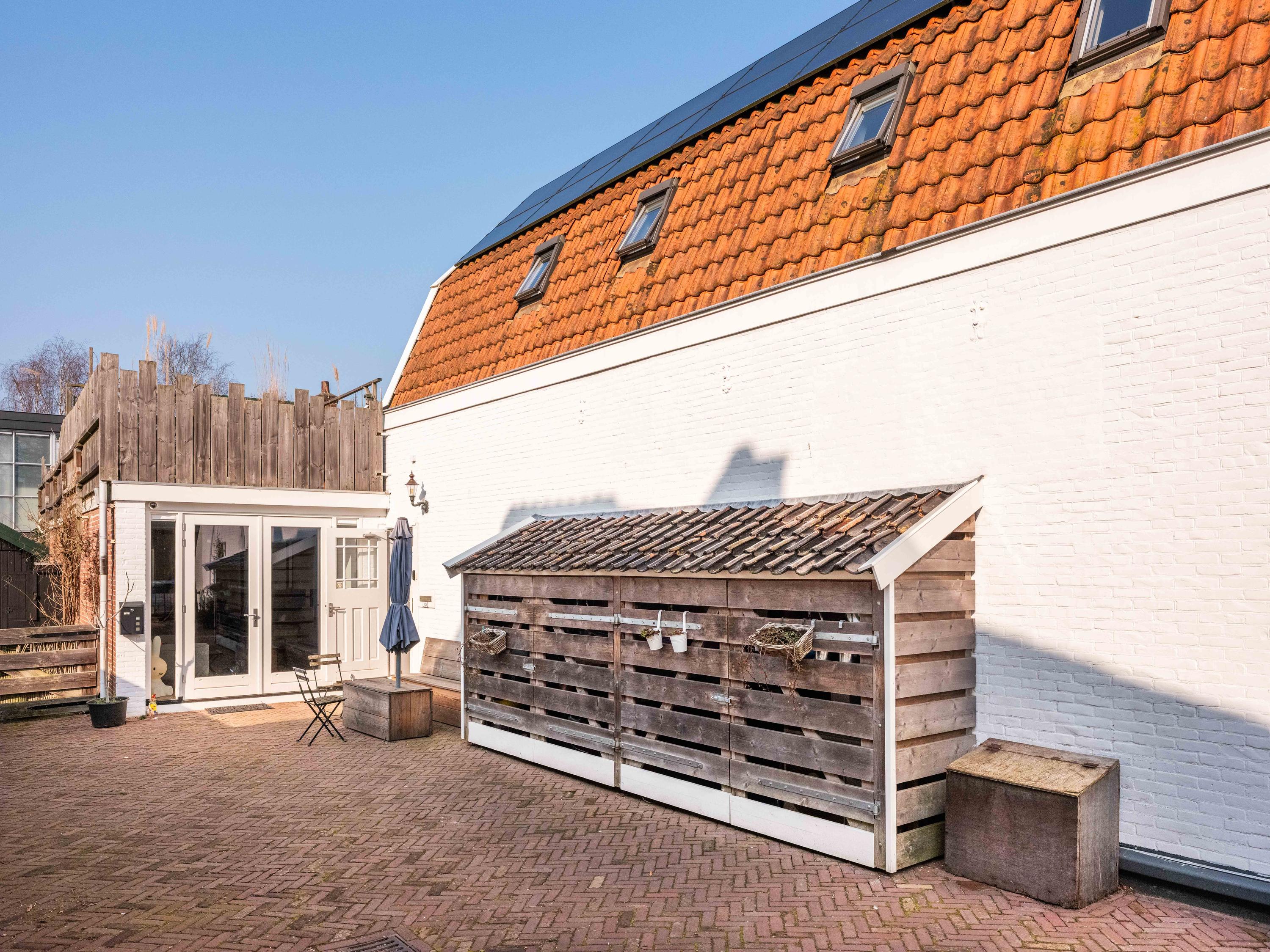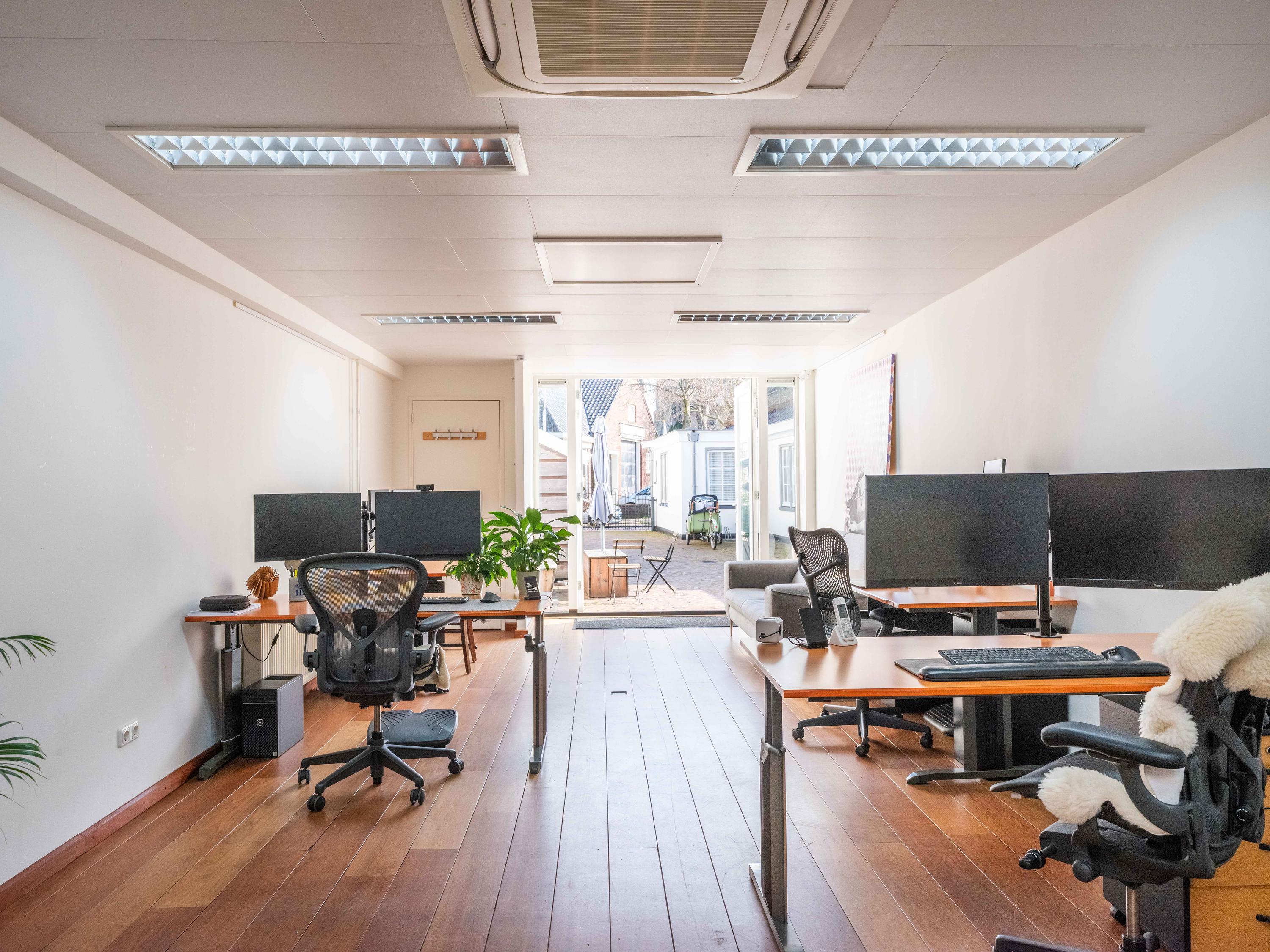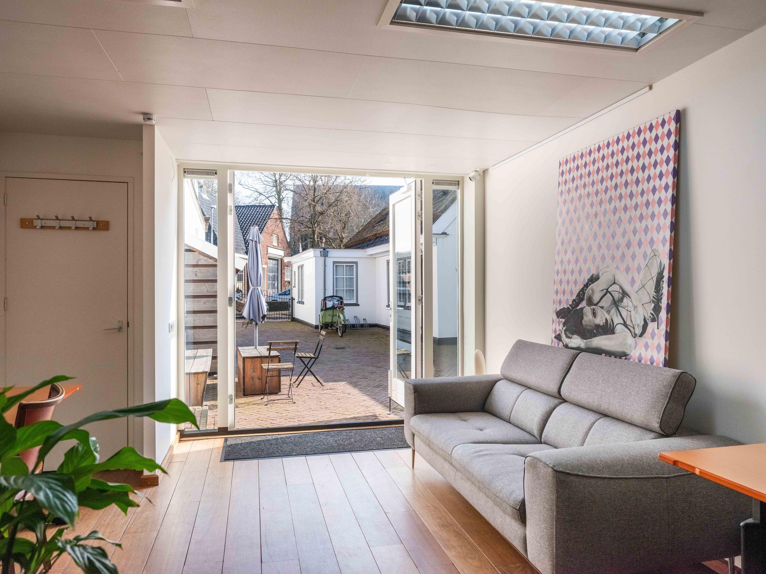 Behind the shop is a separate office space, ideal for a home-based practice, workspace, or expansion of the shop or residence. This space of approximately 43 m² was fitted with a new façade with French doors in 2023.