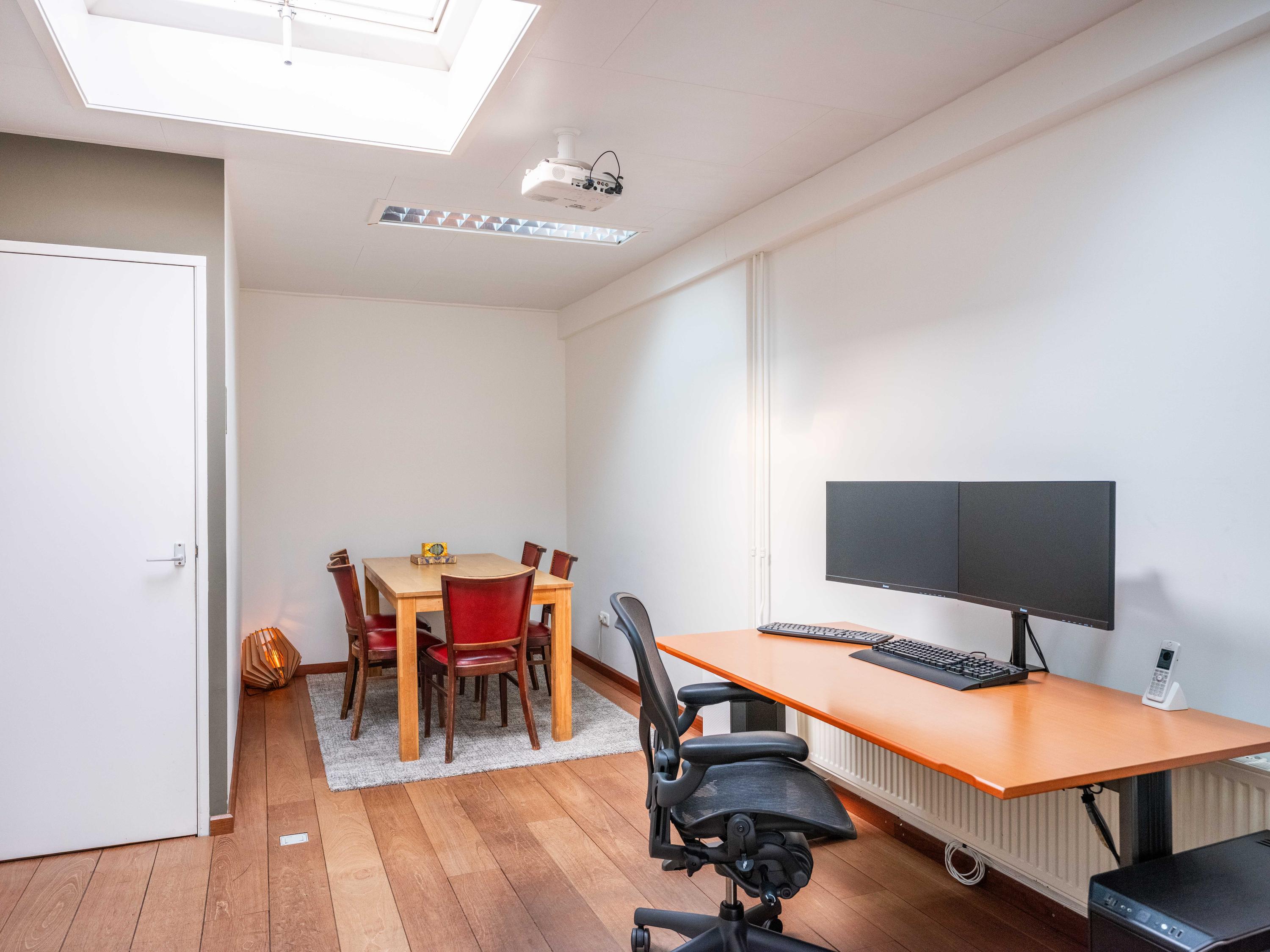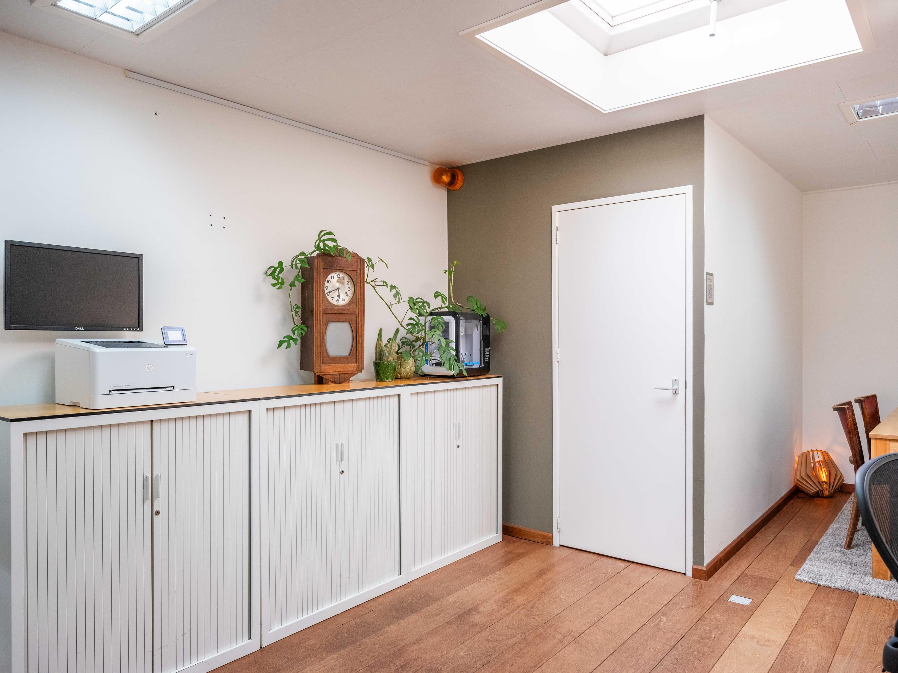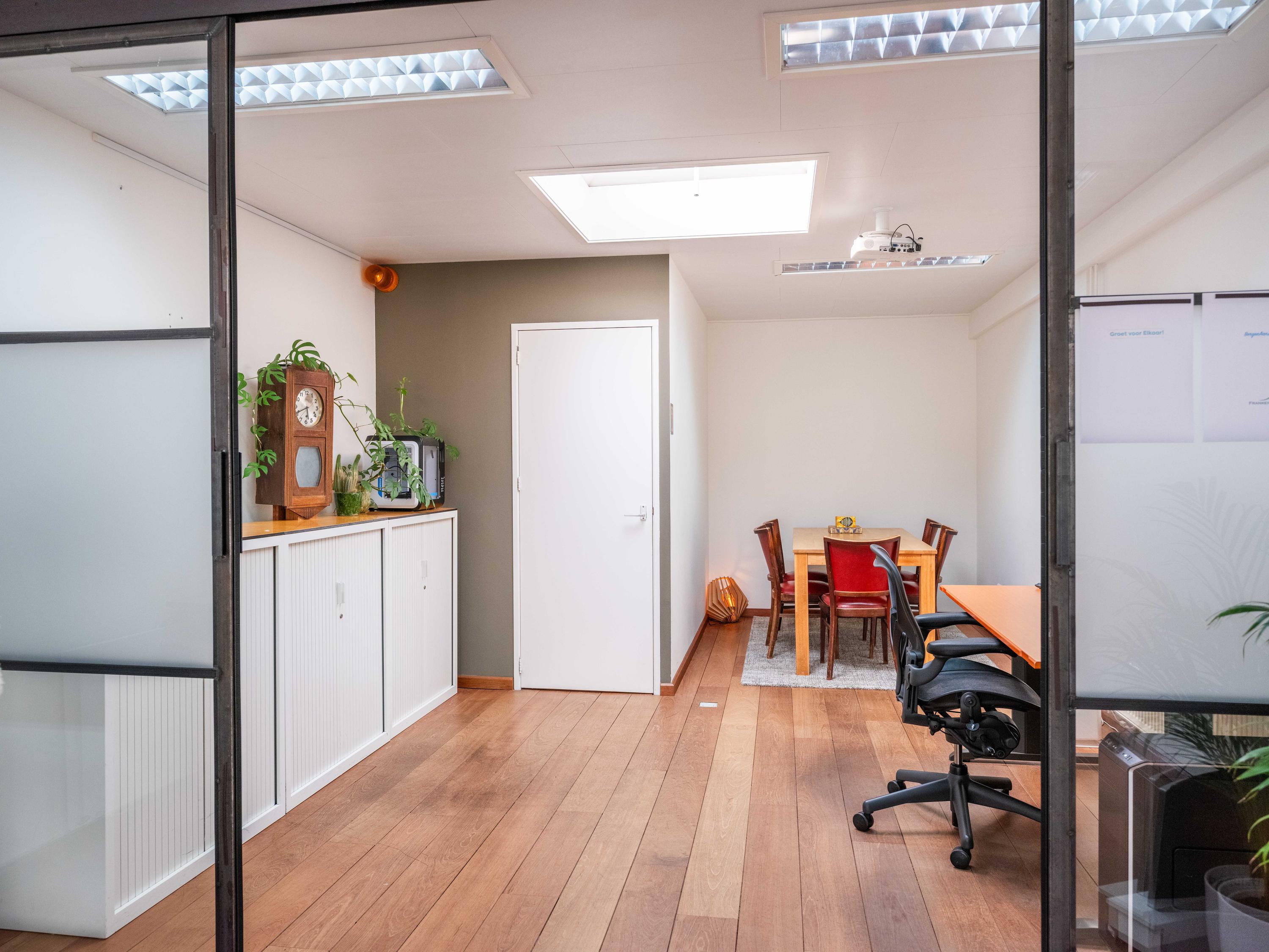 Behind the shop is a separate office space, ideal for a home-based practice, workspace, or expansion of the shop or residence. This space of approximately 43 m² was fitted with a new façade with French doors in 2023.