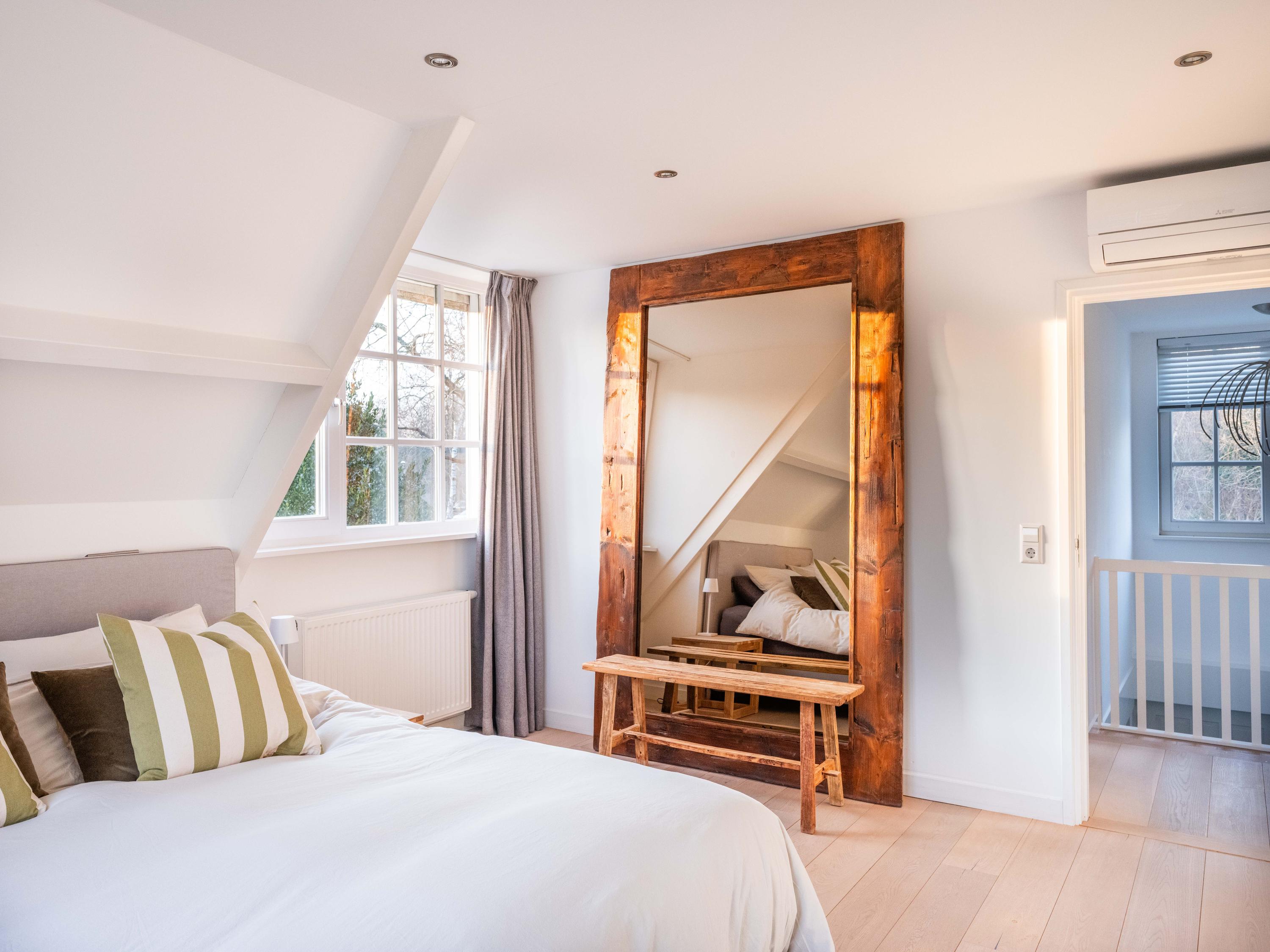 Upon entering, you immediately notice the pleasant atmosphere. The spacious hall with staircase and modern toilet provides access to the practical utility room and leads further to the dining room with fireplace. From here, double garden doors open onto the beautifully landscaped garden, allowing the indoors and outdoors to flow effortlessly into one another. The living room connects seamlessly to the designer kitchen by Piet Jan van den Kommer—a real eye-catcher that perfectly matches the country style of the house. The wooden floors and beamed ceilings enhance the feeling of warmth and character.