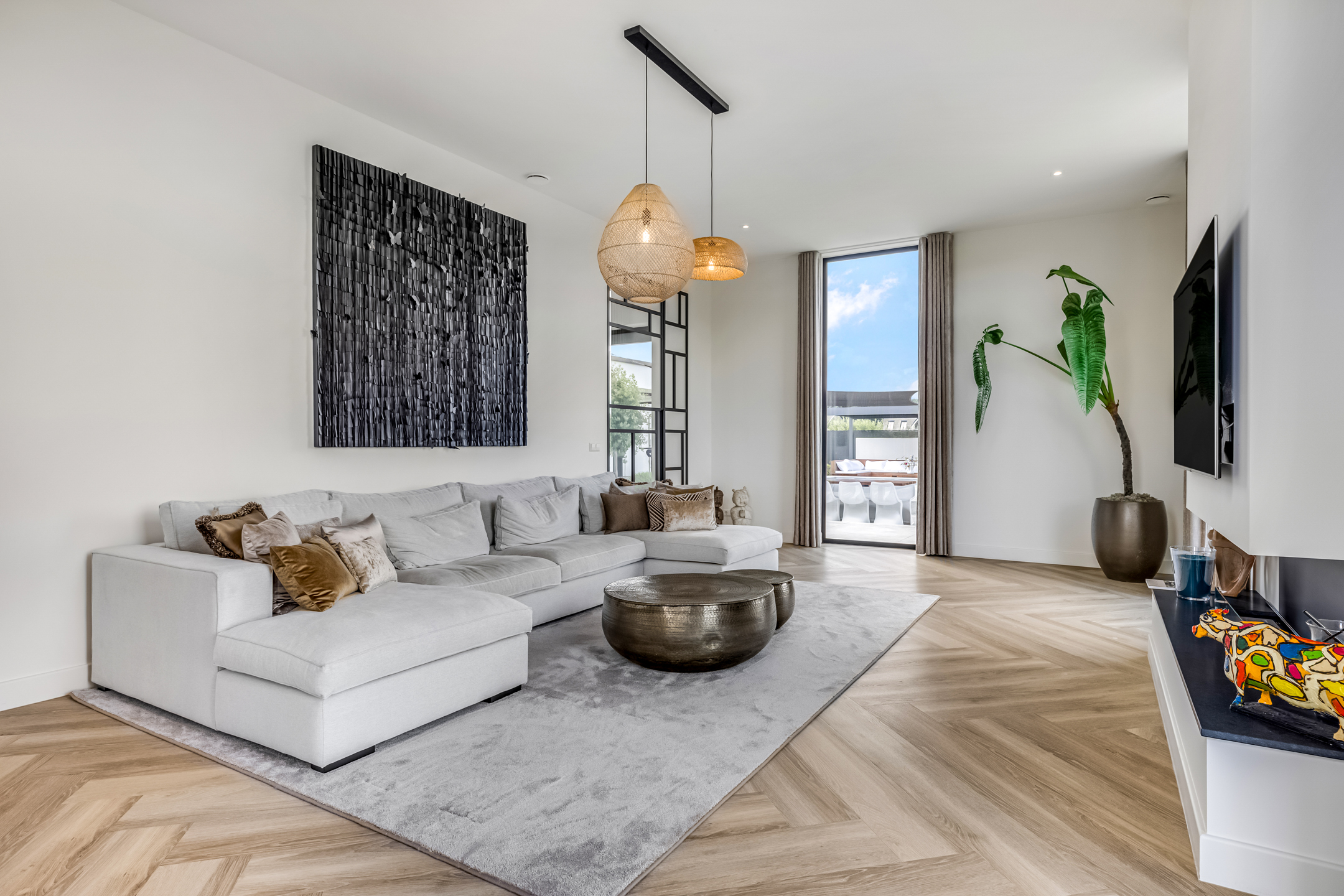 Built entirely new in 2022, this villa boasts a living area of 305 m² and exudes quality, luxury, and future readiness. With an energy label of A++++, a full Philips Hue lighting plan, security system with cameras, and 72 solar panels, this house is fully equipped for the future. Extra-high ceilings, floor-to-ceiling steel doors, and underfloor heating and cooling throughout ensure a modern and comfortable living environment.