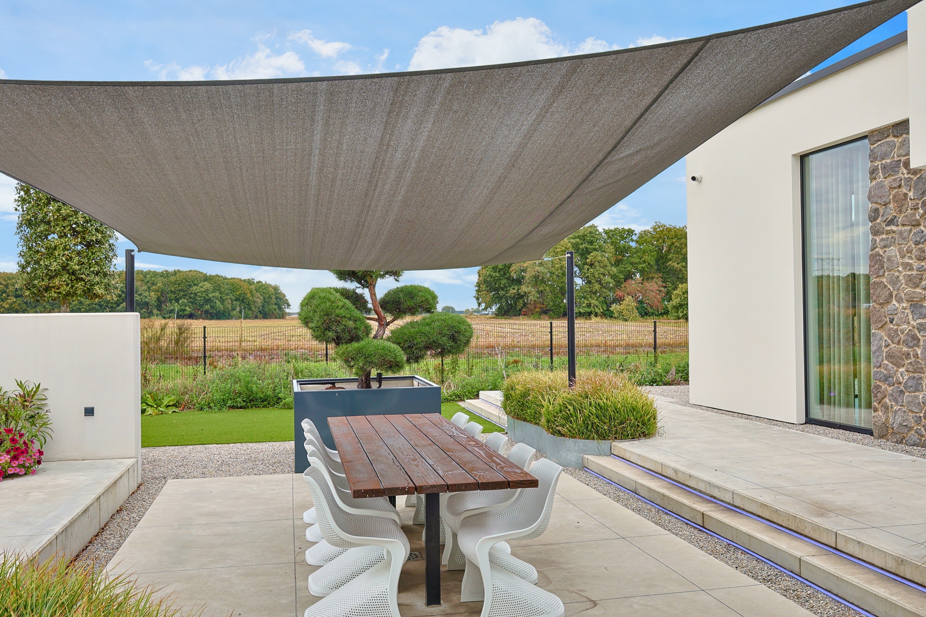 Outside, enjoyment reaches its peak: a heated swimming pool, multiple covered terraces, and a luxury veranda turn outdoor living into a true experience. Everything breathes peace, comfort, and exclusivity. You’ll enjoy maximum privacy, with open views over expansive agricultural fields to the side and the green paddocks behind. This unique combination of space and nature enhances the feeling of freedom.