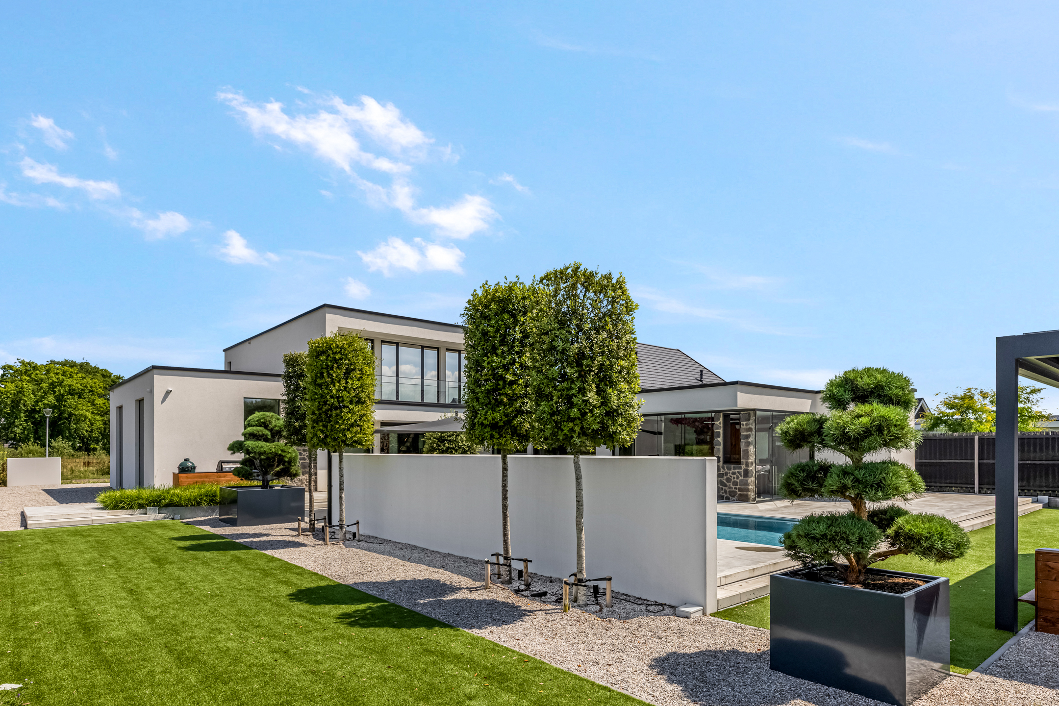 Secured with an electric double designer gate. The design elements of the gate are reflected throughout the property.