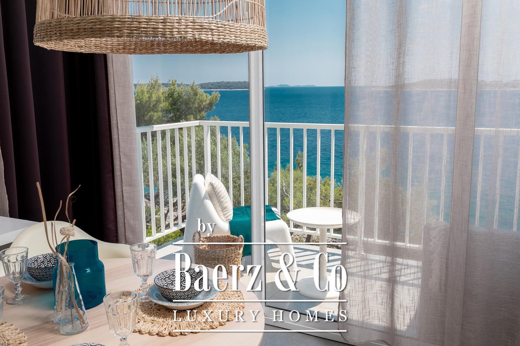 Villa Korčula Island presents a rare seafront opportunity with a living area of 120 m², positioned in a discreet southern village just 5 km from Vela Luka. This villa’s regular 400 m² plot faces south, anchored by pines and lush gardens that meet a natural pebble beach along the rocky coast. An asphalt road provides direct access, while trusted water and electricity connections offer ease and security.