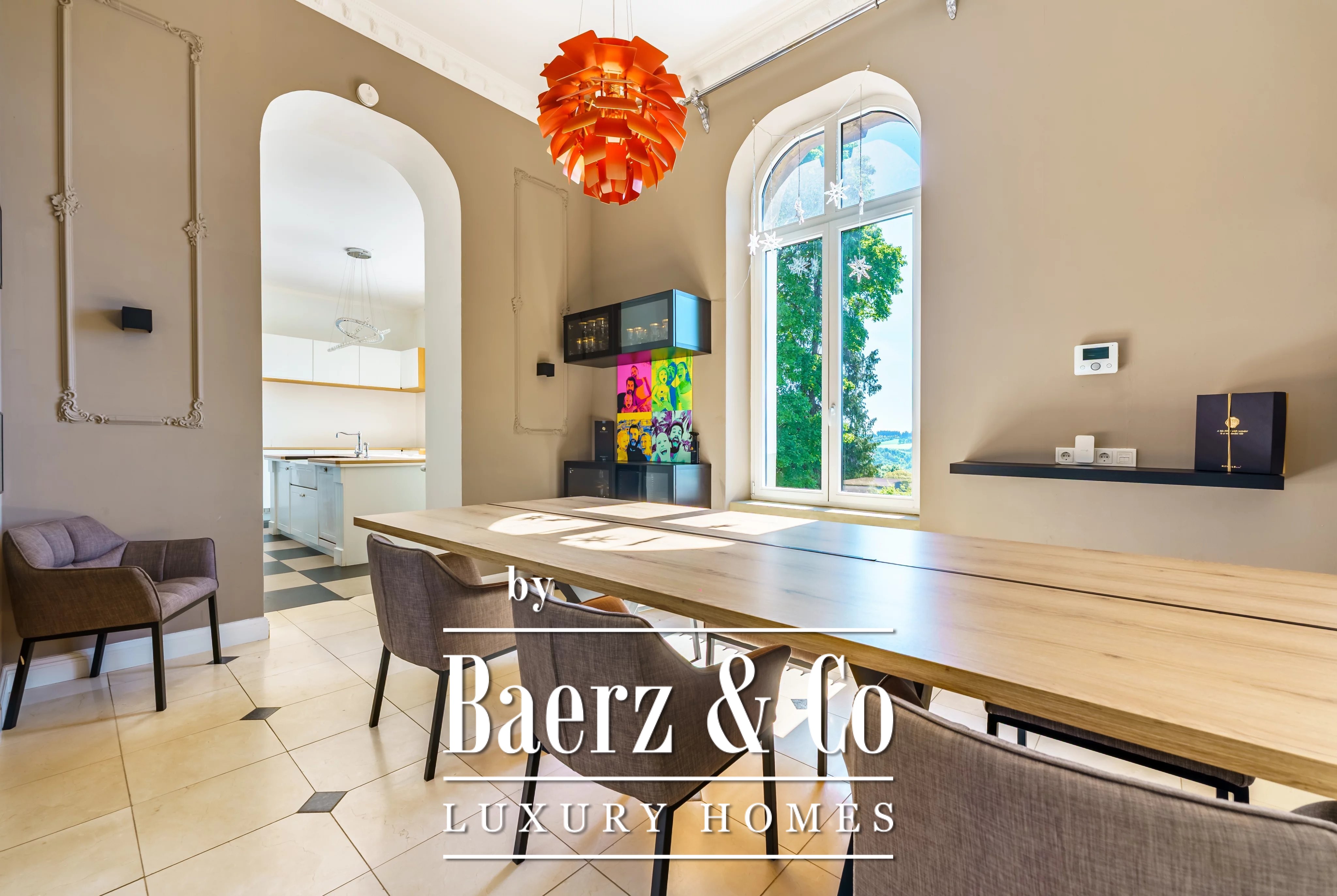 This manor house Boevange offers a distinguished setting where heritage and modernity are held in quiet balance. Originally constructed in 1909 and thoughtfully renovated in 2022, the property resides within 12,180 m² of landscaped grounds, presenting 375 m² of living space and ceilings that rise four meters above subtle parquet floors.