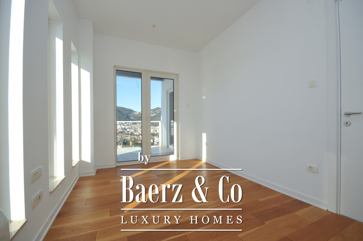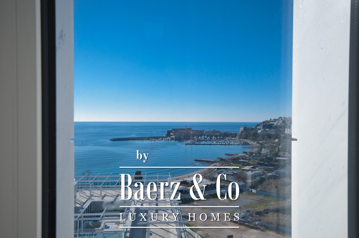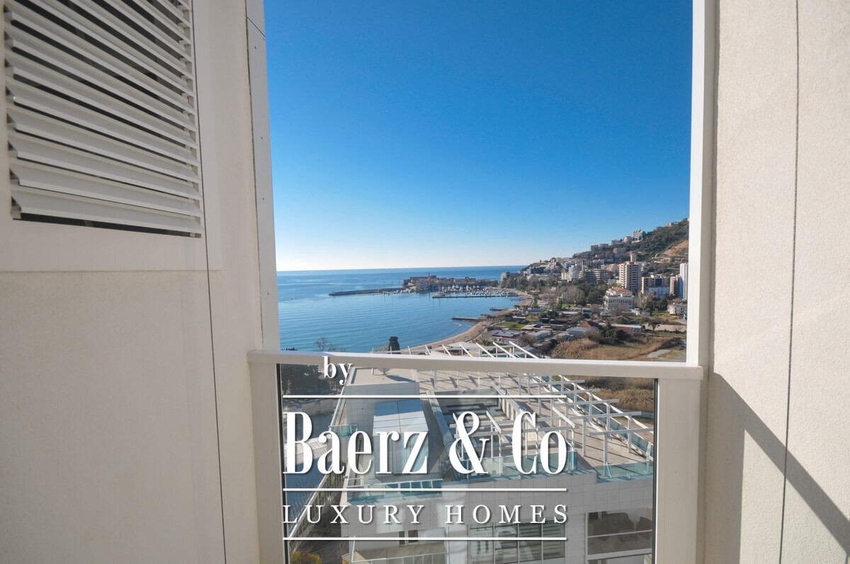 Apartment Budva offers 104m² of living space on the thirteenth floor of a modern building, with unobstructed views over Budva Old Town and the Adriatic Sea. This two-bedroom, two-bathroom apartment is unfurnished, offering a blank canvas for refined personal touches. Each bedroom opens onto a terrace, inviting natural light and the spectacle of the coastline into daily life.