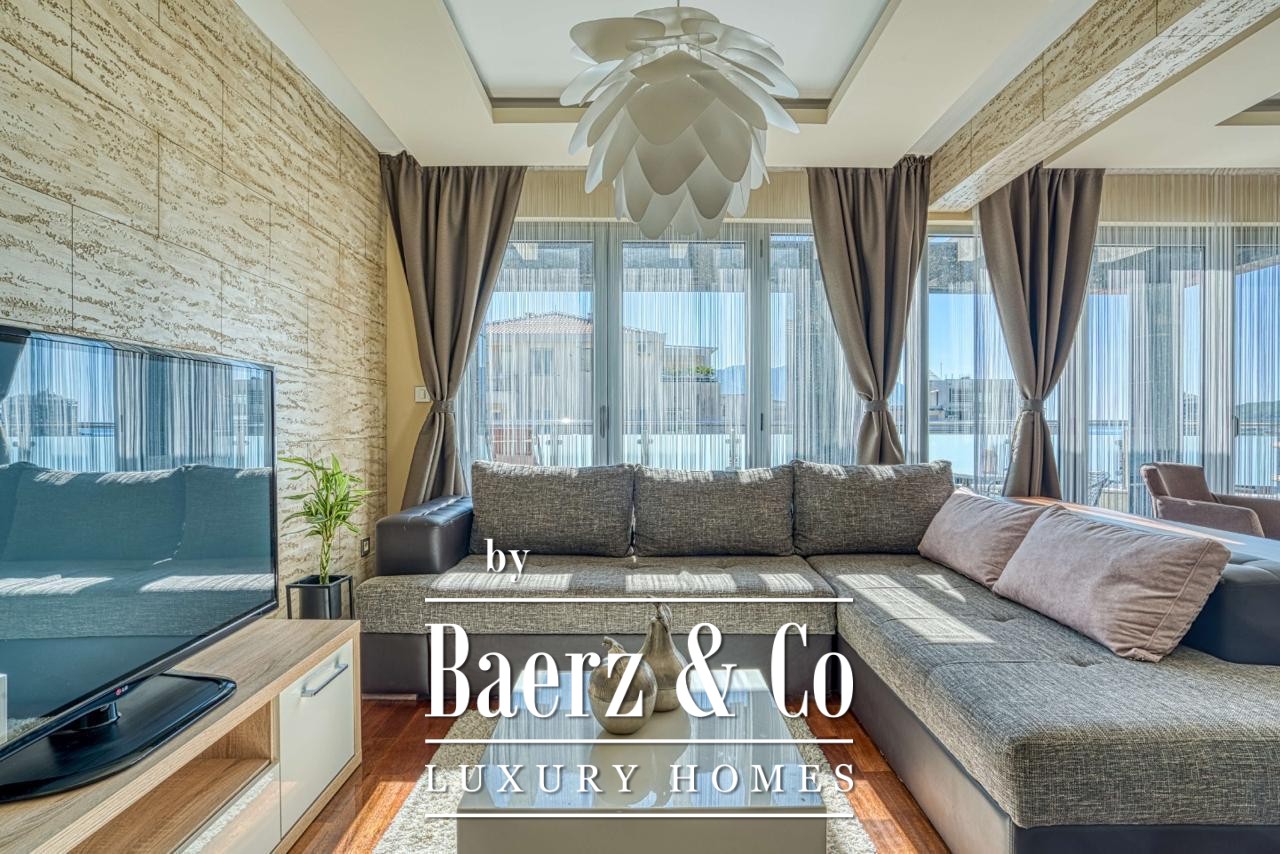 Occupying the top two floors of a contemporary seven-story building, the 188 m² penthouse offers privacy and unobstructed sea and mountain views. A designated garage space in the building’s basement connects directly by elevator, delivering security and discretion in daily arrivals.