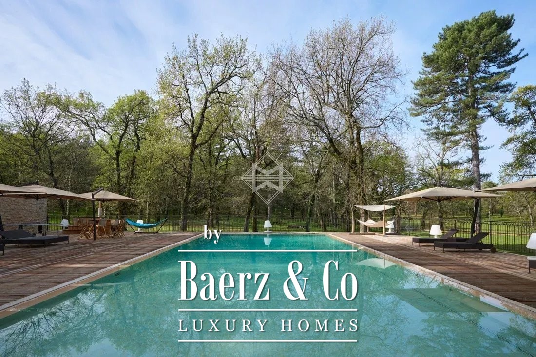 Mansion Callian sits quietly within more than 145,000 m² of secluded parkland, less than one hour from Nice Airport and just five minutes from the village. This early 20th-century residence, defined by 737 m² of living space, offers both serenity and connection to its lush, forested surroundings. Designed for gracious entertaining, the mansion features ten en-suite bedrooms, a generous living room with fireplace, and an elegant dining area. The fully equipped kitchen opens onto a sunlit terrace, fostering warm gatherings and a continuous dialogue between interior and exterior space.