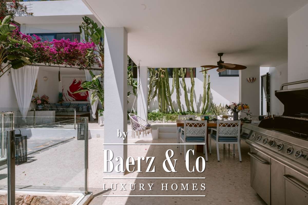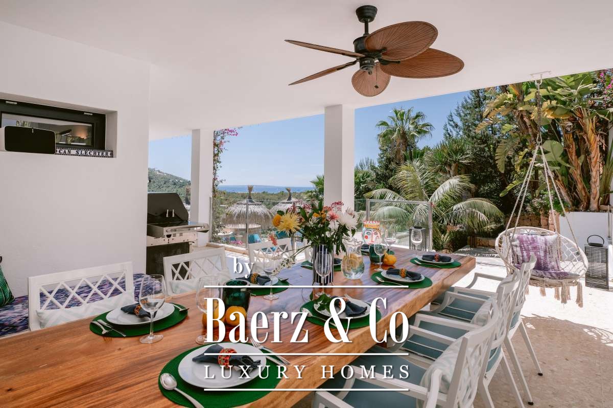 includes a private gym, a game room, and a separate laundry area.With its exceptional finishes and contemporary architecture, this villa is not only the perfect holiday home but also an outstanding investment opportunity in Ibiza.Outdoor Living at Its Finest: Pool, Jacuzzi, and Breathtaking ViewsThe outdoor areas of this villa are just as spectacular as the interiors. The large infinity pool offers unparalleled panoramic views of the lush hills and the sea, while the spacious sun terraces invite you to relax and soak up the Ibiza sunshine. Start your day with a coffee on your private terrace, spend the afternoon lounging by the pool, and end the evening with a barbecue in the outdoor kitchen, dining under the stars.The jacuzzi adds an extra layer of relaxation, while the Bali-style pergola with massage beds offers a unique wellness experience with mesmerizing island views. Families will appreciate the dedicated play area and trampoline, making this villa an excellent choice for both families and investors seeking a high-end property in Ibiza.Are you looking for a dream villa that combines privacy, luxury, and a prime location? Then this is your opportunity. This exclusive villa in Can Furnet offers everything you need in a high-end Ibiza home. Contact us today to schedule a viewing and experience this extraordinary property firsthand!Additional OpportunitiesSince this is a big buildable plot within an urbanization, there is even the option to completely demolish the existing villa and develop something entirely new and contemporary on this location. Whether you dream of building your own home, considering a full renovation, or making specific modifications to change the layout, the possibilities are endless. At Ibiza Estates, we are more than happy to think along with you!