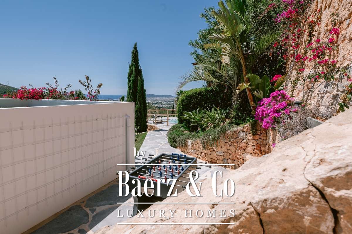 A Dream Location: Privacy and Tranquility Close to Ibiza TownThis stunning modern villa in Can Furnet offers the perfect balance between peace, privacy, and proximity to Ibiza Town. Located in one of Ibiza’s most exclusive and secure residential areas, this property provides a luxurious and serene retreat, while still being just 10 minutes from the vibrant Ibiza Town and Marina Botafoch. Perched on an elevated position, the villa boasts breathtaking panoramic views of the Mediterranean Sea, rolling hills, and the iconic skyline of Dalt Vila.Can Furnet is a gated community with 24-hour security, ideal for those seeking an exclusive and tranquil living environment. The location is perfect for golf enthusiasts, with Ibiza’s only golf course just 5 minutes away. Some of the island’s most stunning beaches, including Talamanca, Cala Olivera, and Cala d’Espart, are within a 10-minute drive. Plus, with the airport only 15 minutes away, this villa offers unparalleled convenience for effortless arrivals and departures.A Villa That Exudes Style, Space, and ComfortWith six luxurious bedrooms and six en-suite bathrooms, this villa offers maximum privacy and comfort. The open and bright living spaces are designed with style and functionality in mind, with large floor-to-ceiling windows creating a seamless connection between indoor and outdoor living. The high-end open-plan kitchen is fully equipped with modern appliances and provides ample space for both intimate dinners and grand entertaining.The master suite is a standout feature, boasting a private terrace, a walk-in closet, and a lavish en-suite bathroom with a walk-in shower and freestanding bathtub. Each bedroom is spacious and elegantly designed, with some offering direct access to terraces or balconies. Additionally, the villa