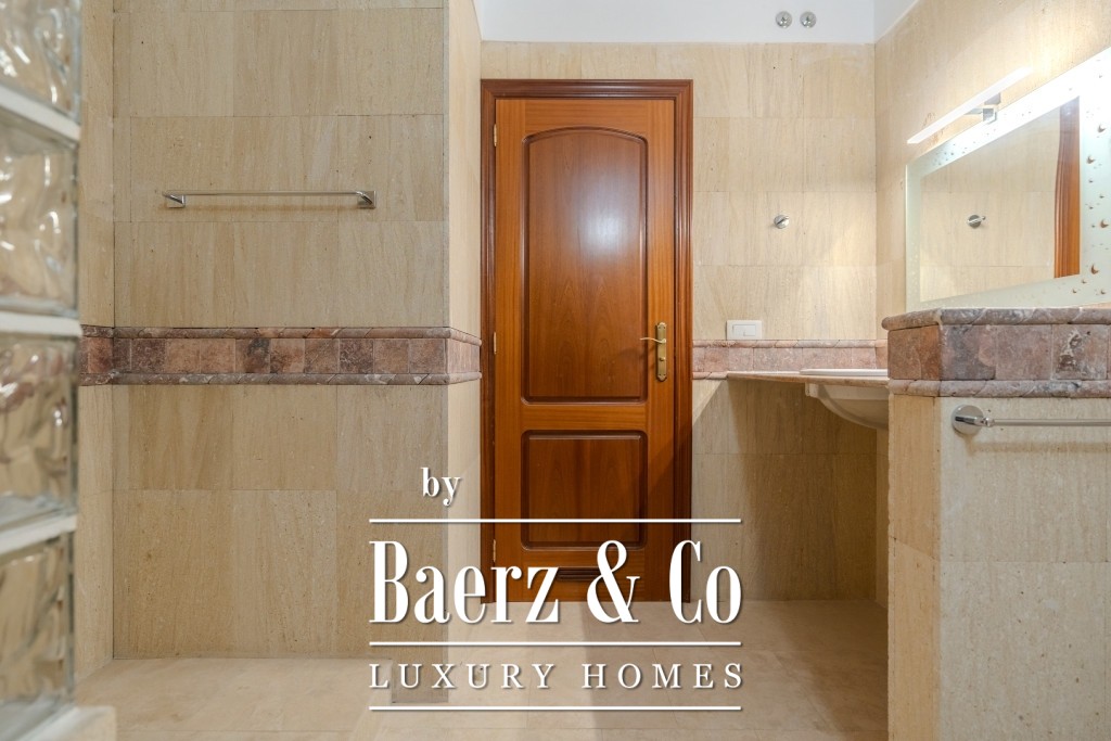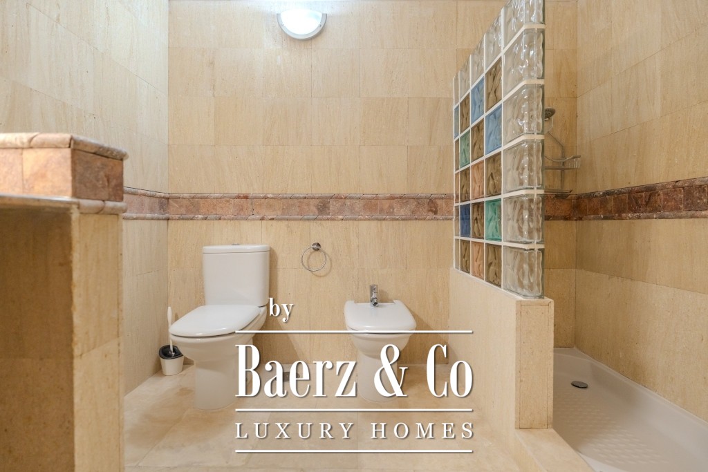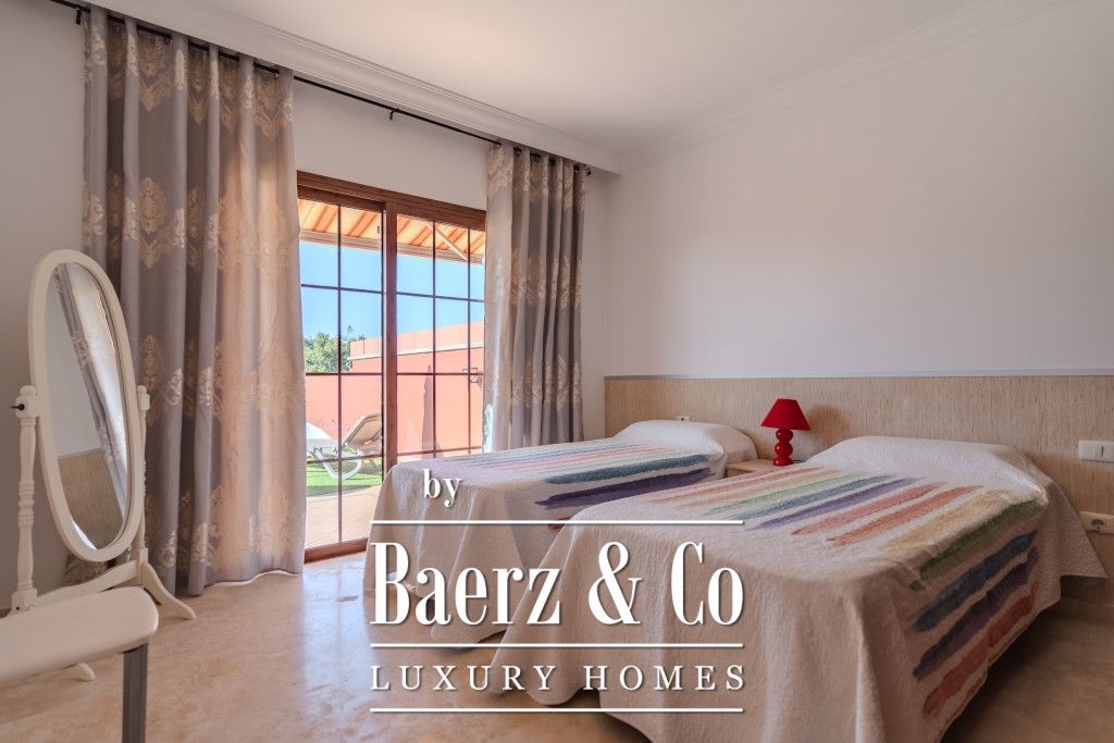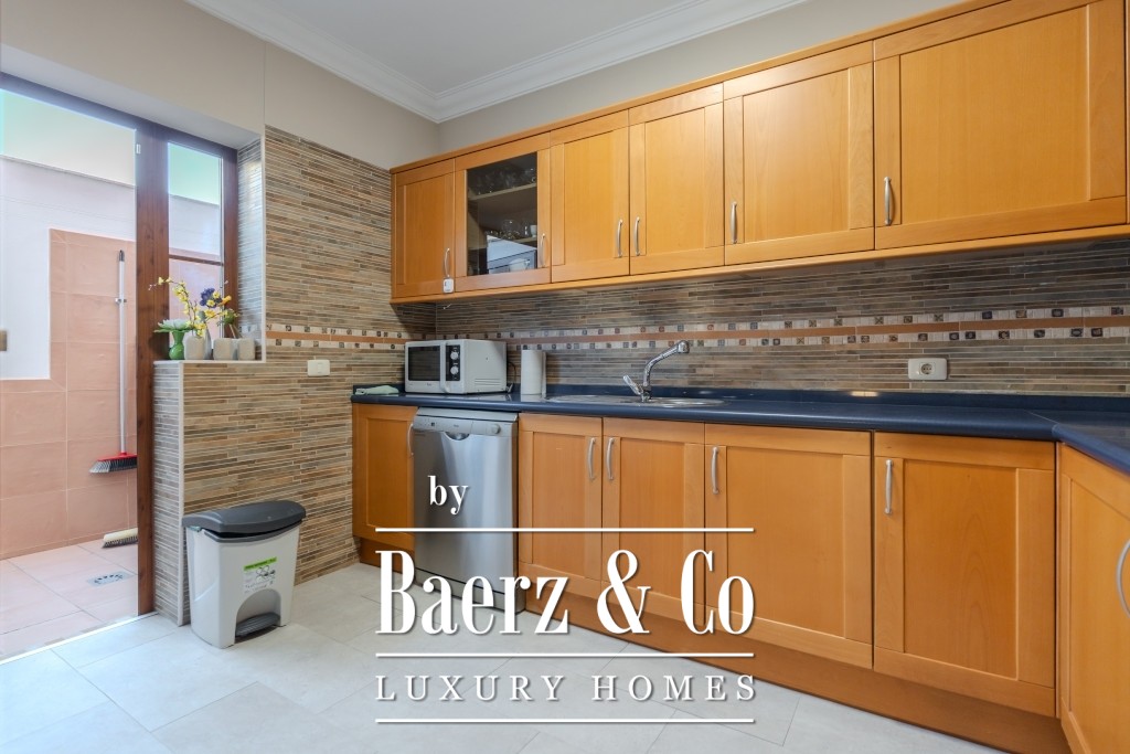 Below, a 77 m² basement accommodates a private garage for two to three cars, a storage room, and further storage under the stairs. Residents benefit from two communal swimming pools, one heated, enveloped by calm and well-kept green zones. Community fees are set at €265 per month, with IBI tax at €925 per year, affirming the villa’s rare combination of access, discretion, and ease.