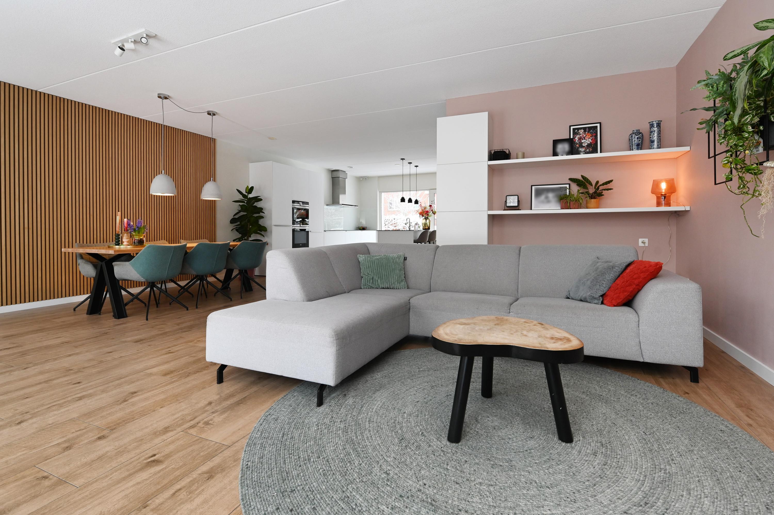 Bij binnenkomst in de woonkamer bevindt zich aan de voorzijde van het huis de ruime open keuken. De keuken is voorzien van een spoeleiland, veel kastruimte en diverse inbouwapparatuur. Via de schuifpui heb je direct toegang tot het terras in de voortuin – een heerlijke plek voor een kop koffie of een drankje in de zon.