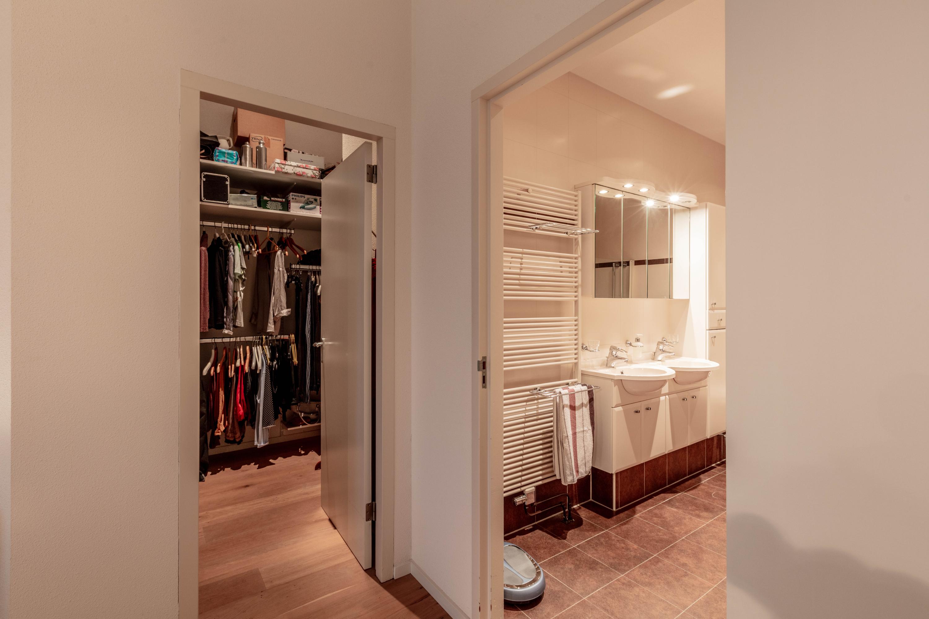De grootste slaapkamer is in gebruik als masterbedroom en beschikt over een royale inloopkast en een aangrenzende ruime badkamer met inloopdouche, tweede toilet, bidet, ligbad en een badkamermeubel met dubbele wastafel.